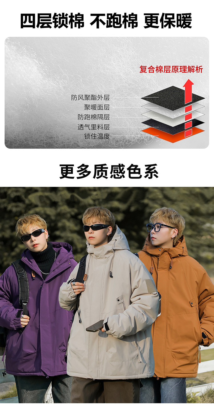 Графеновая куртка Хлопковая куртка для мужчин зимой новый сплошной цвет повседневная куртка ветрозащитная водонепроницаемая хлопчатобумажная куртка