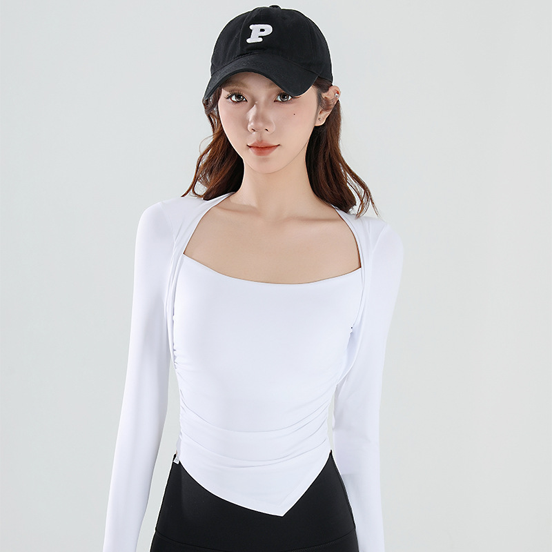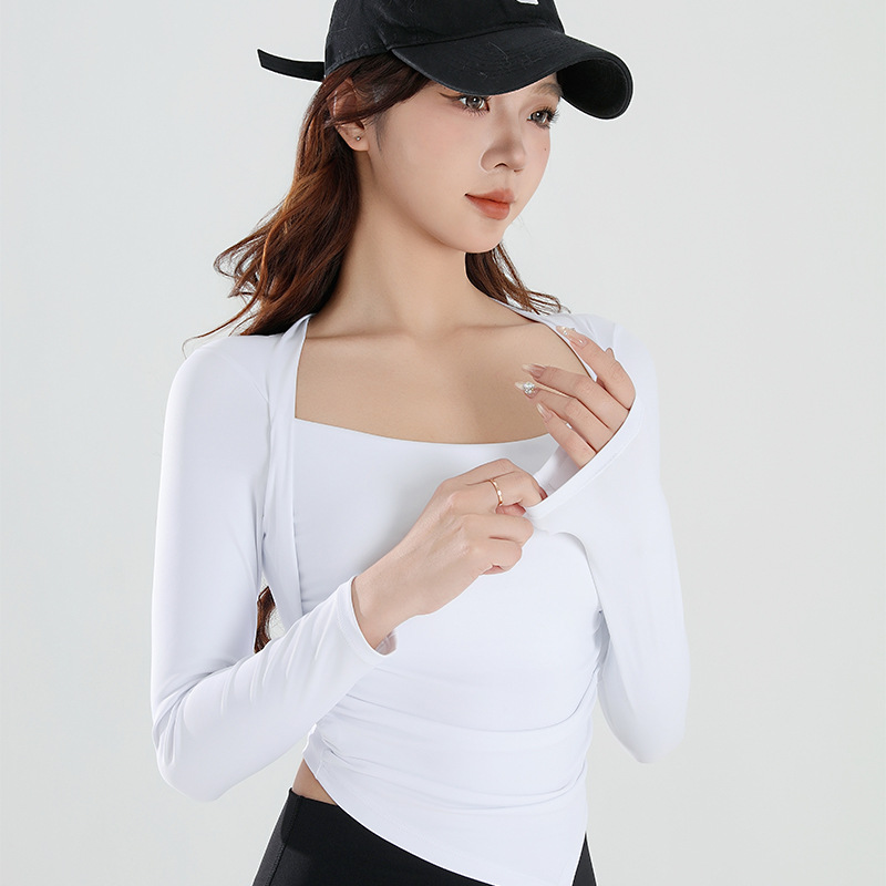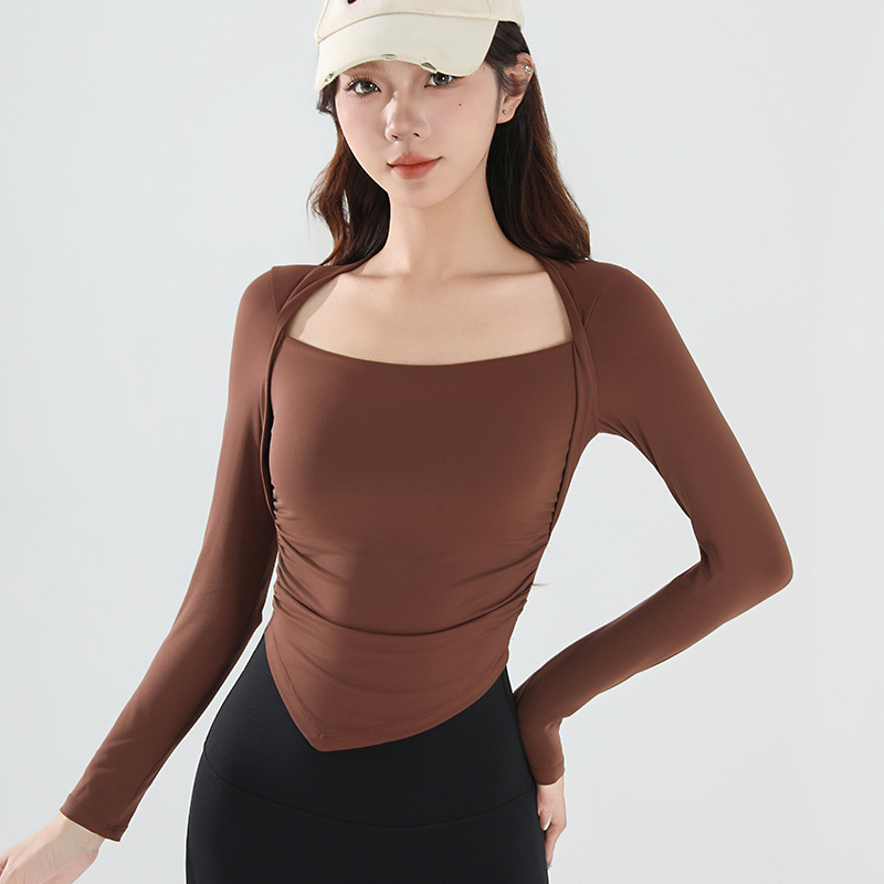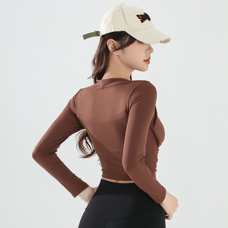 Костюм для йоги Осенний спортивный йога топ женская спортивная рубашка с нагрудным ковриком с длинными рукавами для быстрого высыхания на улице Футболка для бега