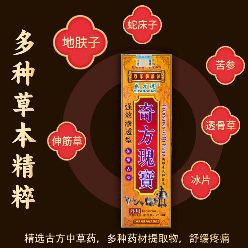 Медицинский рецепт Оригинальный Гуанчжоу Аоде Кифан Сокровища пяти ядовитых активных масел для массажа 250 мл