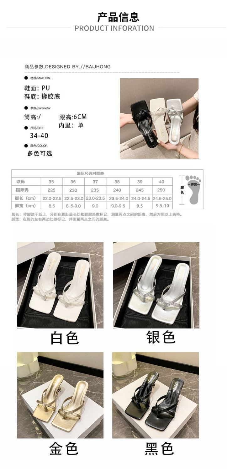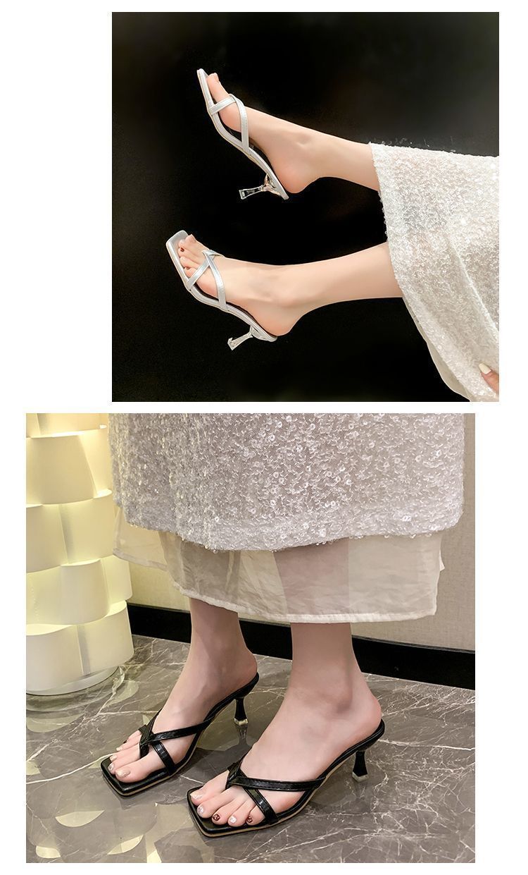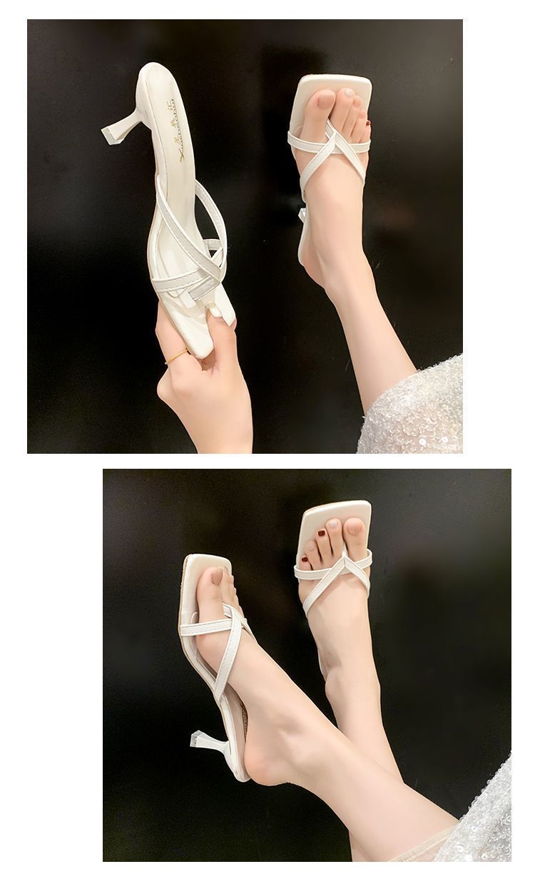 Квадратные каблуки и взрывные буксирные 2024 летние новые сандалии с высокой красотой, нишевые износостойкие носки на высоких каблуках