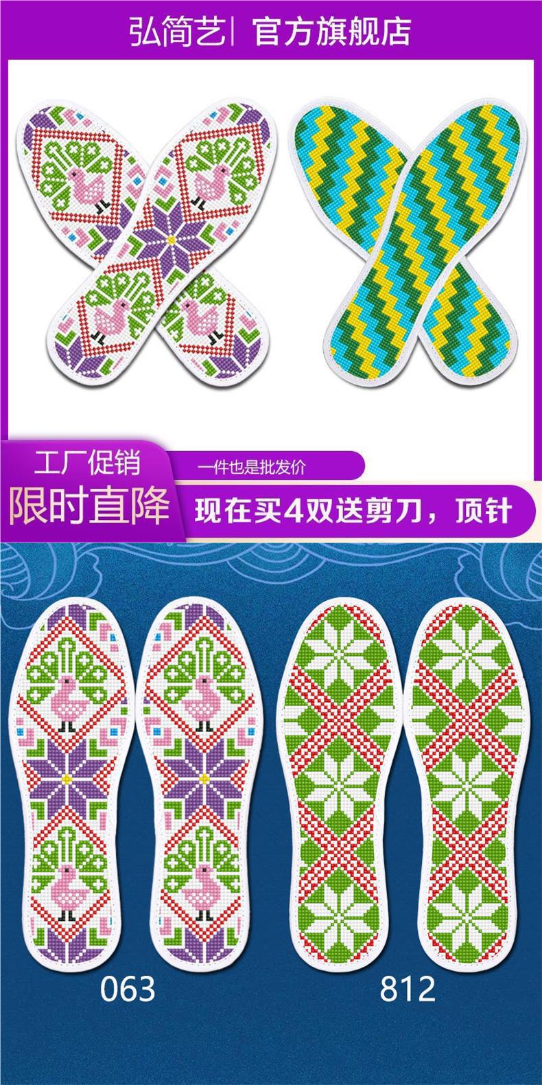 Стельки для вышивки крестом 2 двойные новые утолщенные и не выцветшие хлопчатобумажные полуфабрикаты с игольной ниткой оптом