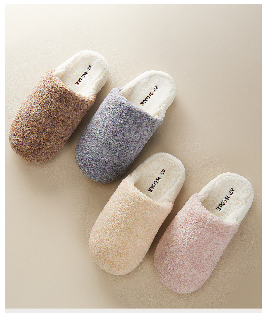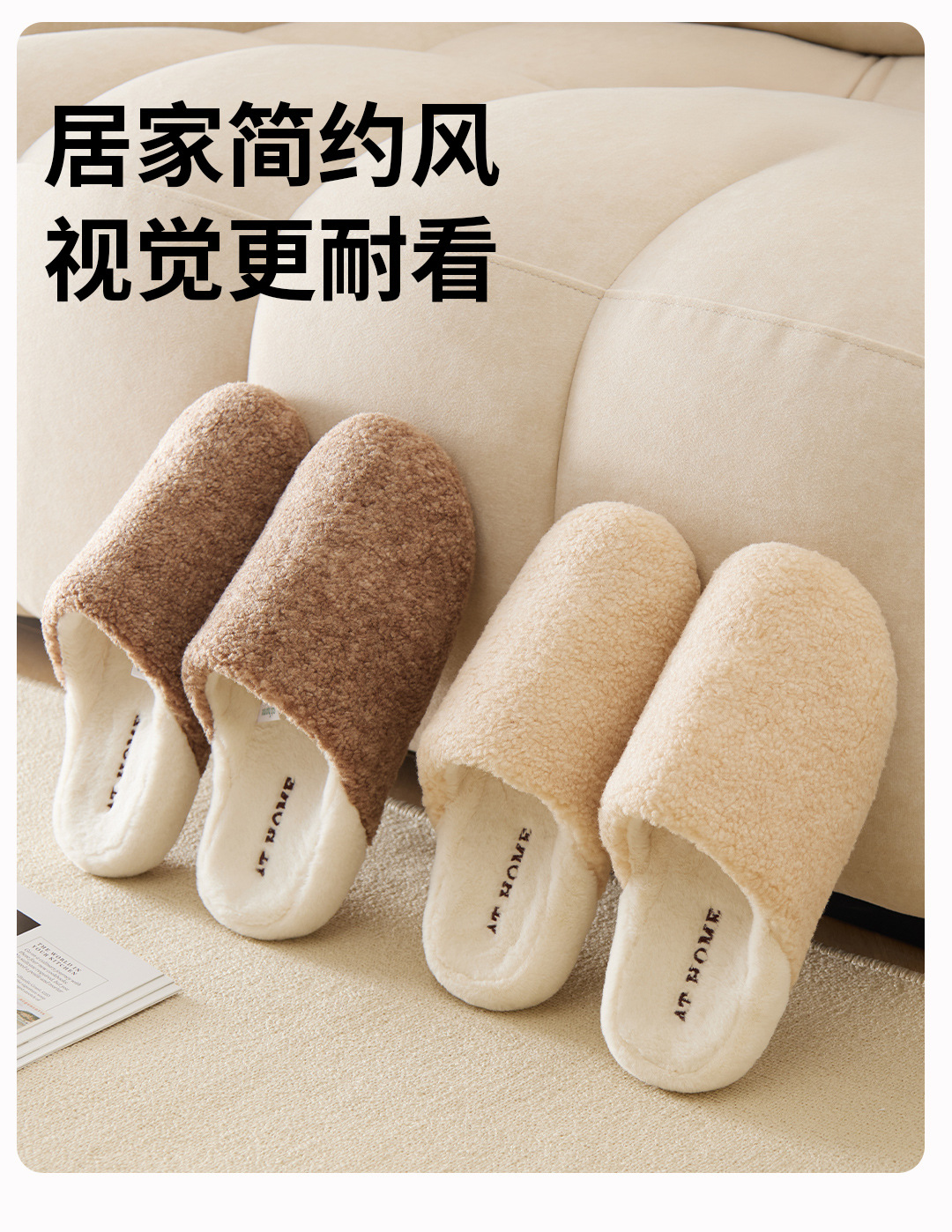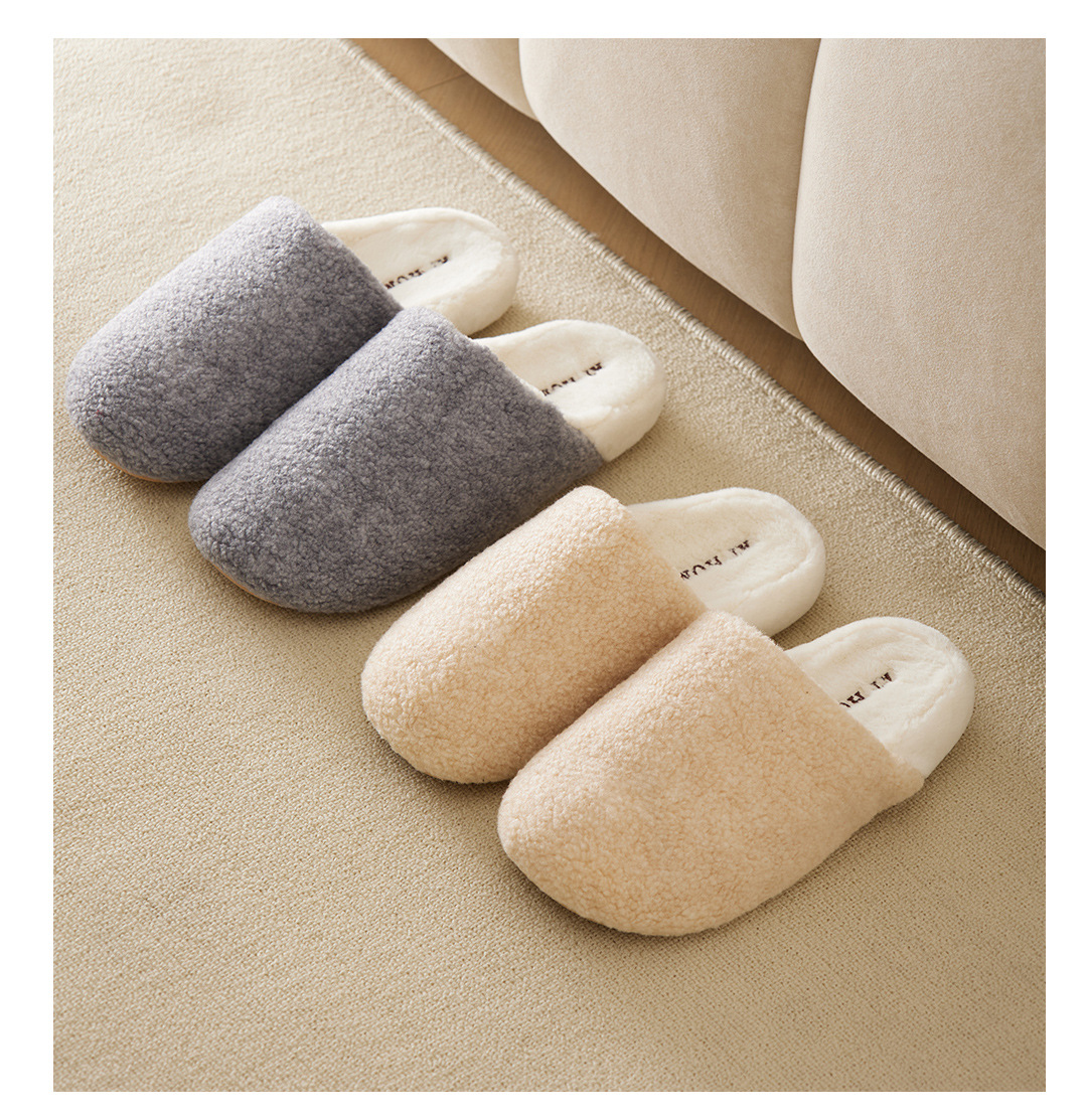 Осенние и зимние новые минималистские хлопчатобумажные тапочки женские плюшевые осенние и зимние противоскользящие теплые домашние пары с толстым дном плюс бархатные тапочки мужчины