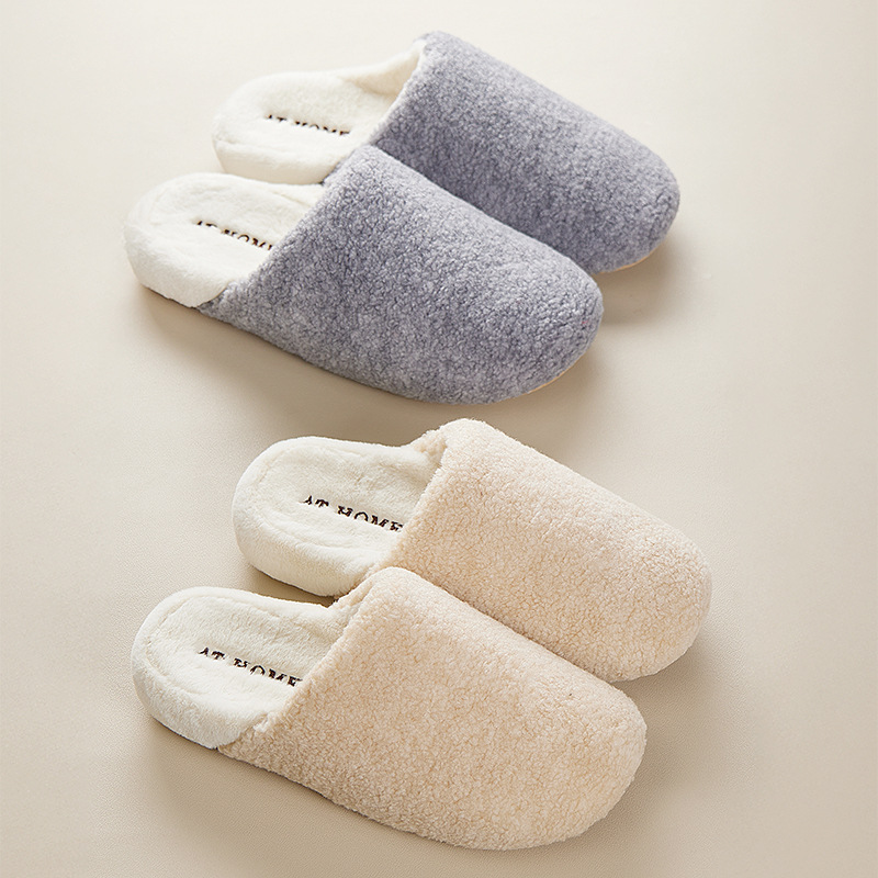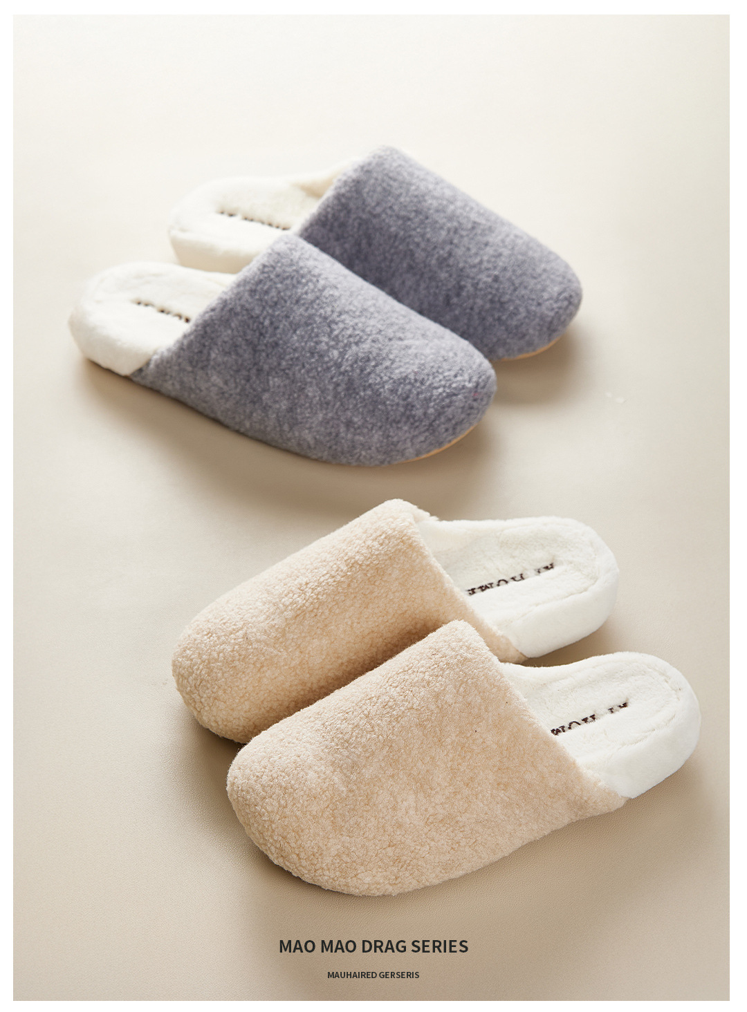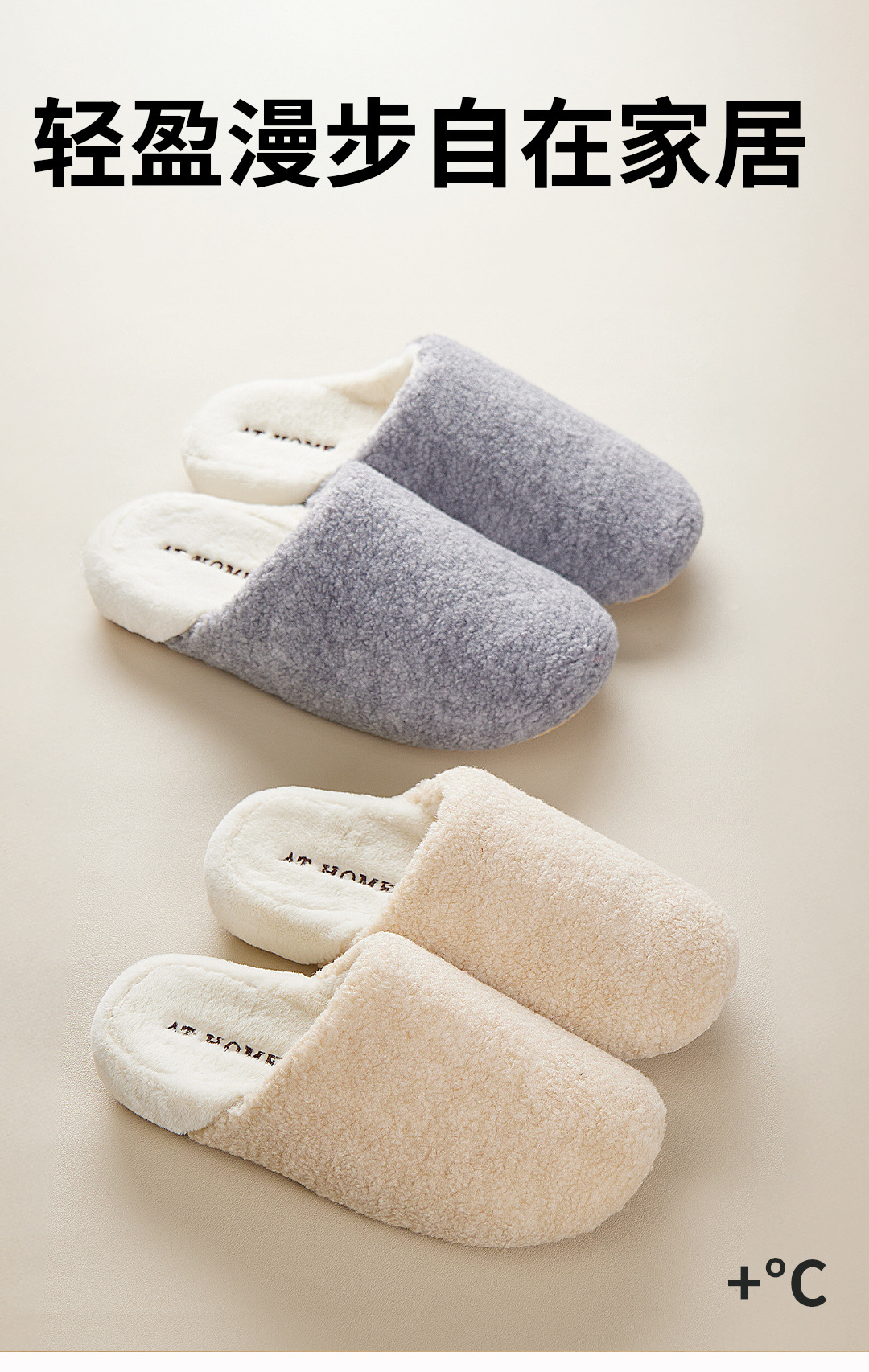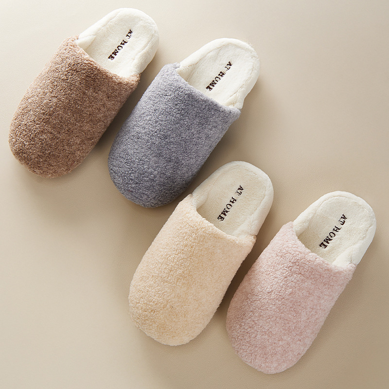 Осенние и зимние новые минималистские хлопчатобумажные тапочки женские плюшевые осенние и зимние противоскользящие теплые домашние пары с толстым дном плюс бархатные тапочки мужчины