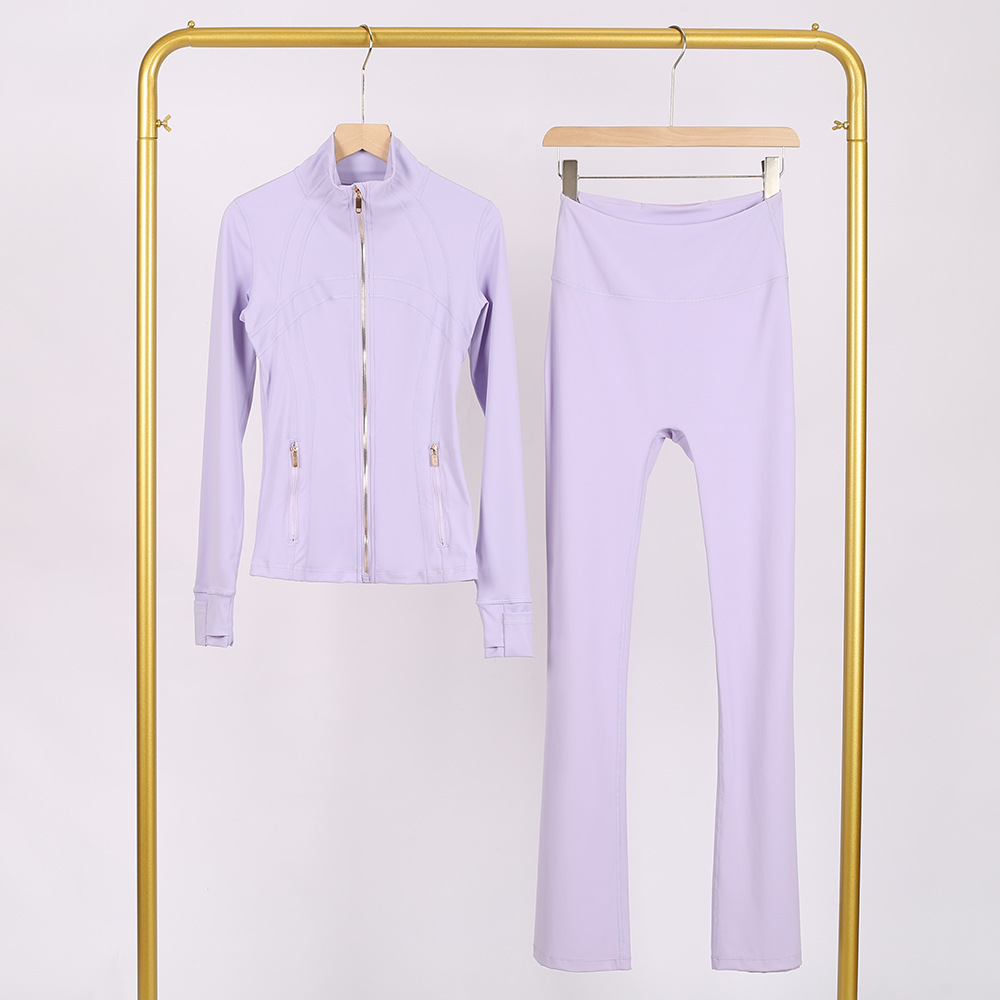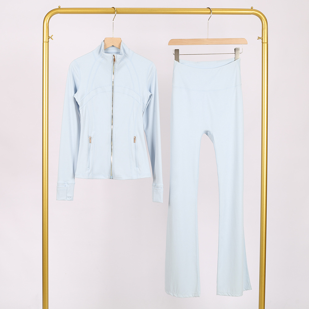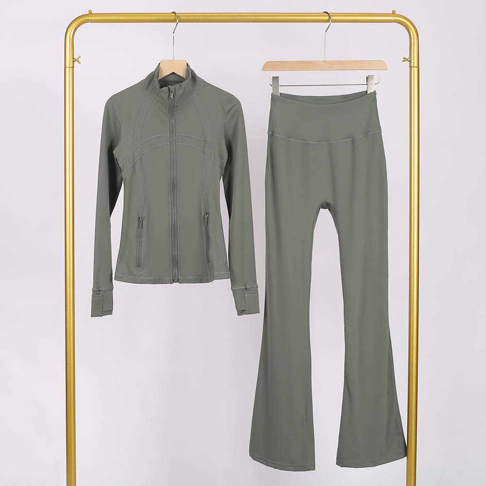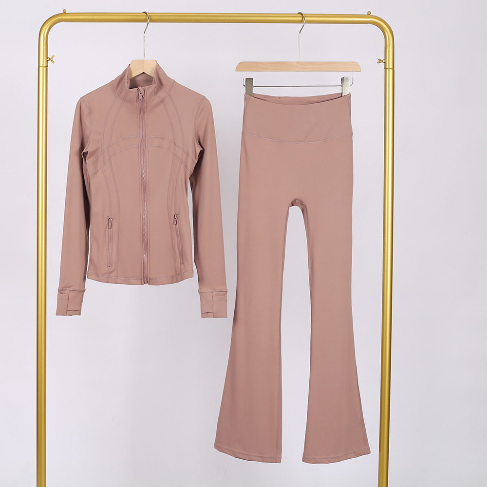 Комплект LULU: брюки-клеш и куртка с воротником-стойкой, топ с золотой молнией, женское приталенное пальто, эластичная одежда для йоги для женщин