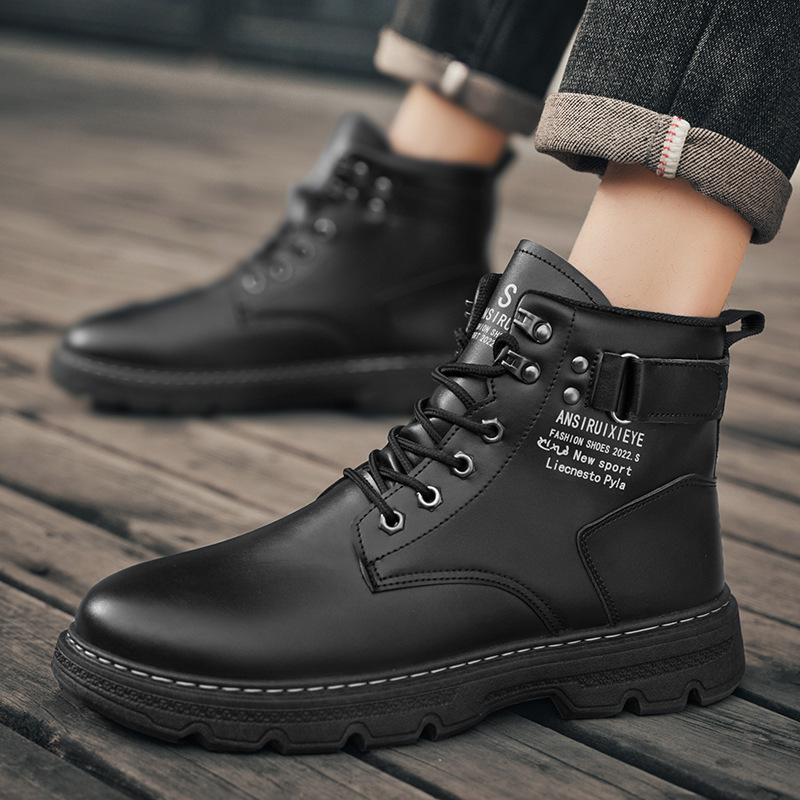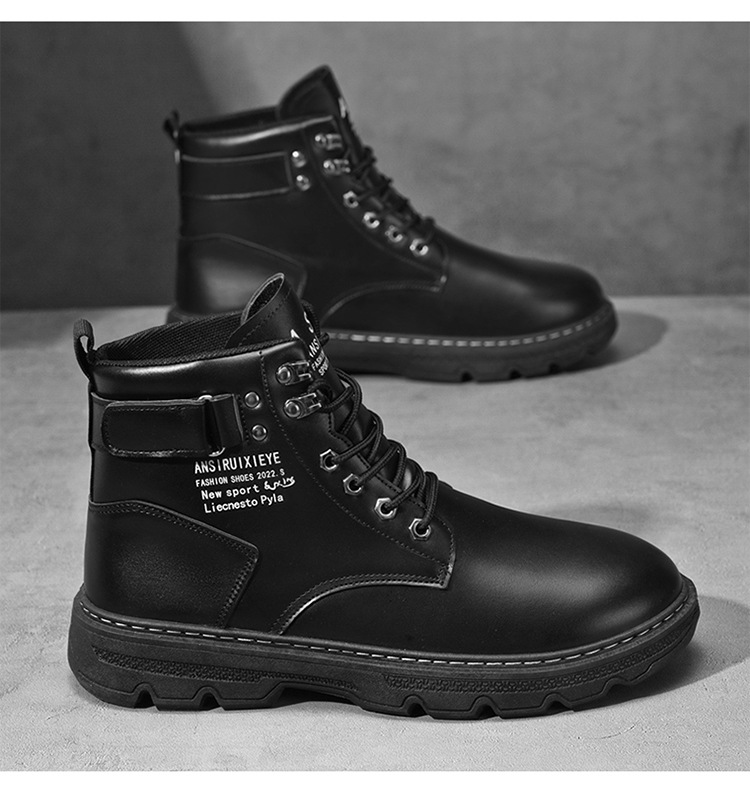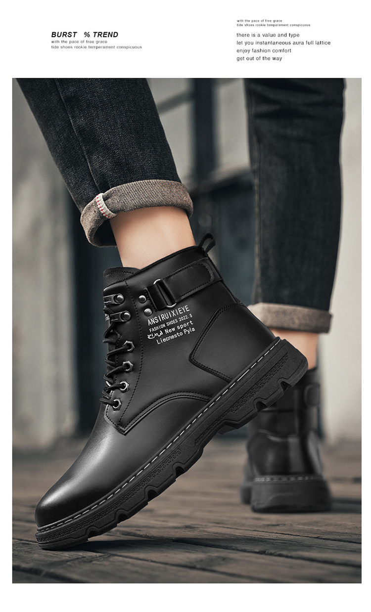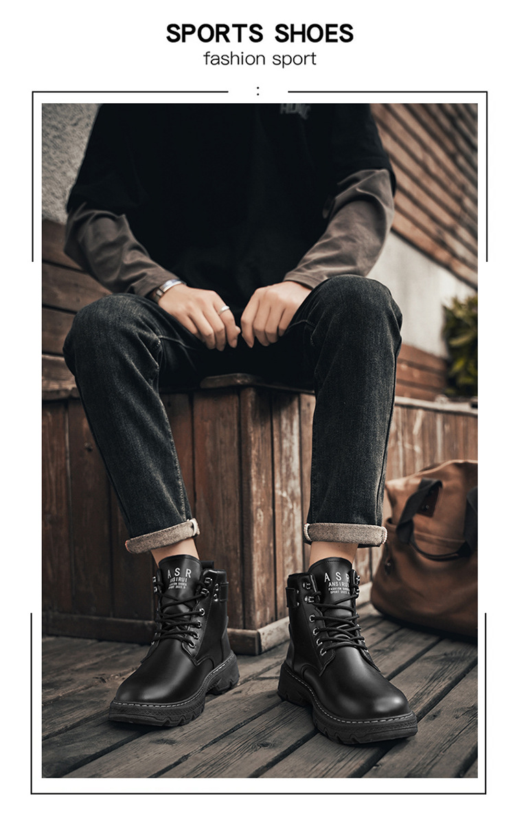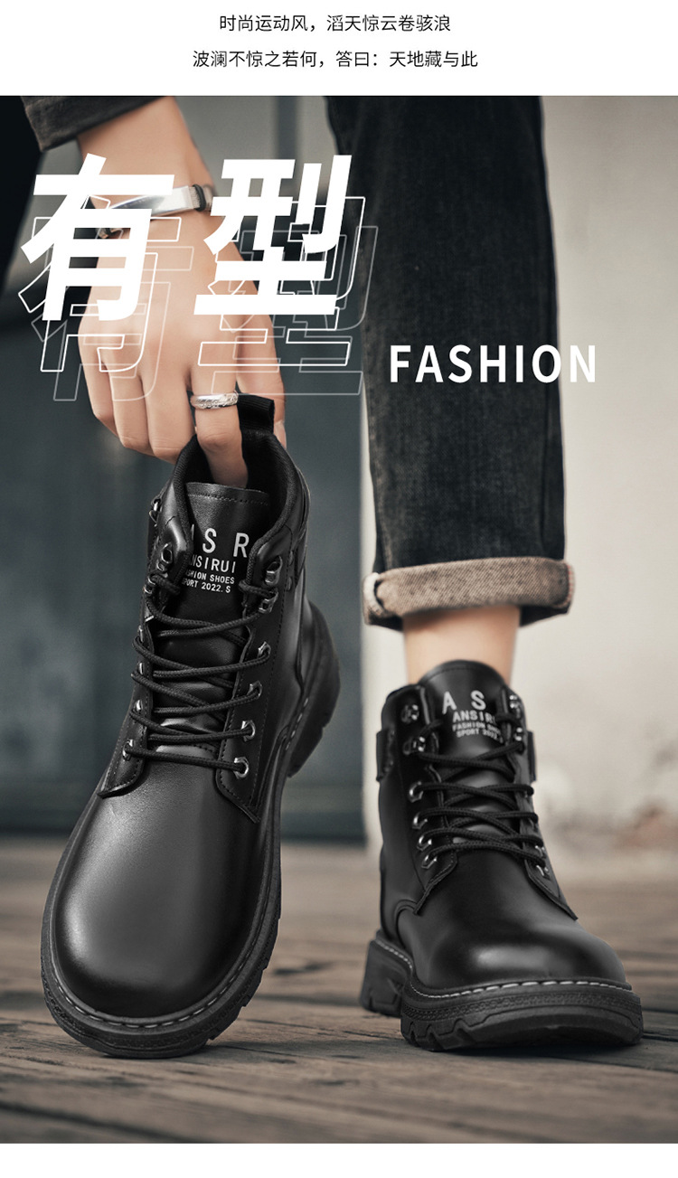 Осенние мужские туфли новые высокие ботинки Martin мужские тренды дикие туфли на толстой подошве повседневные кожаные сапоги черные короткие сапоги