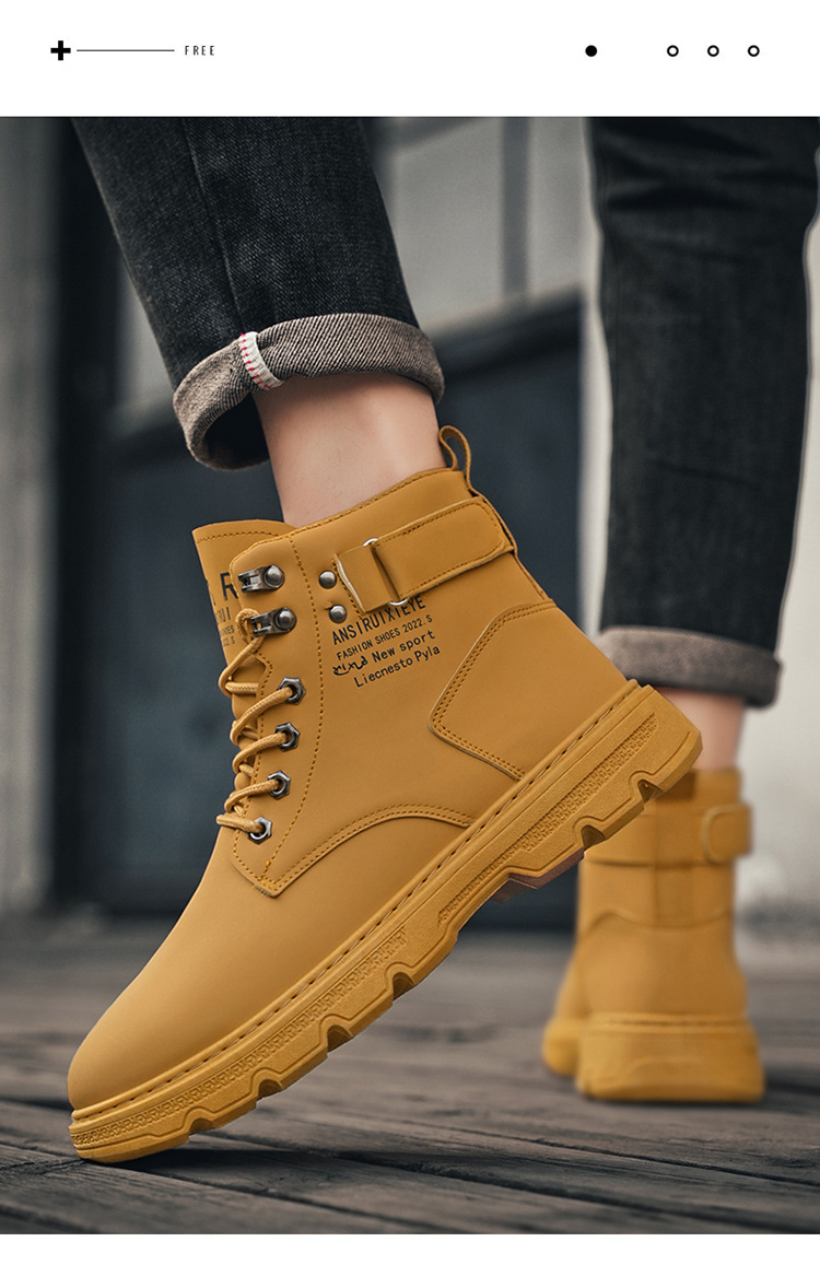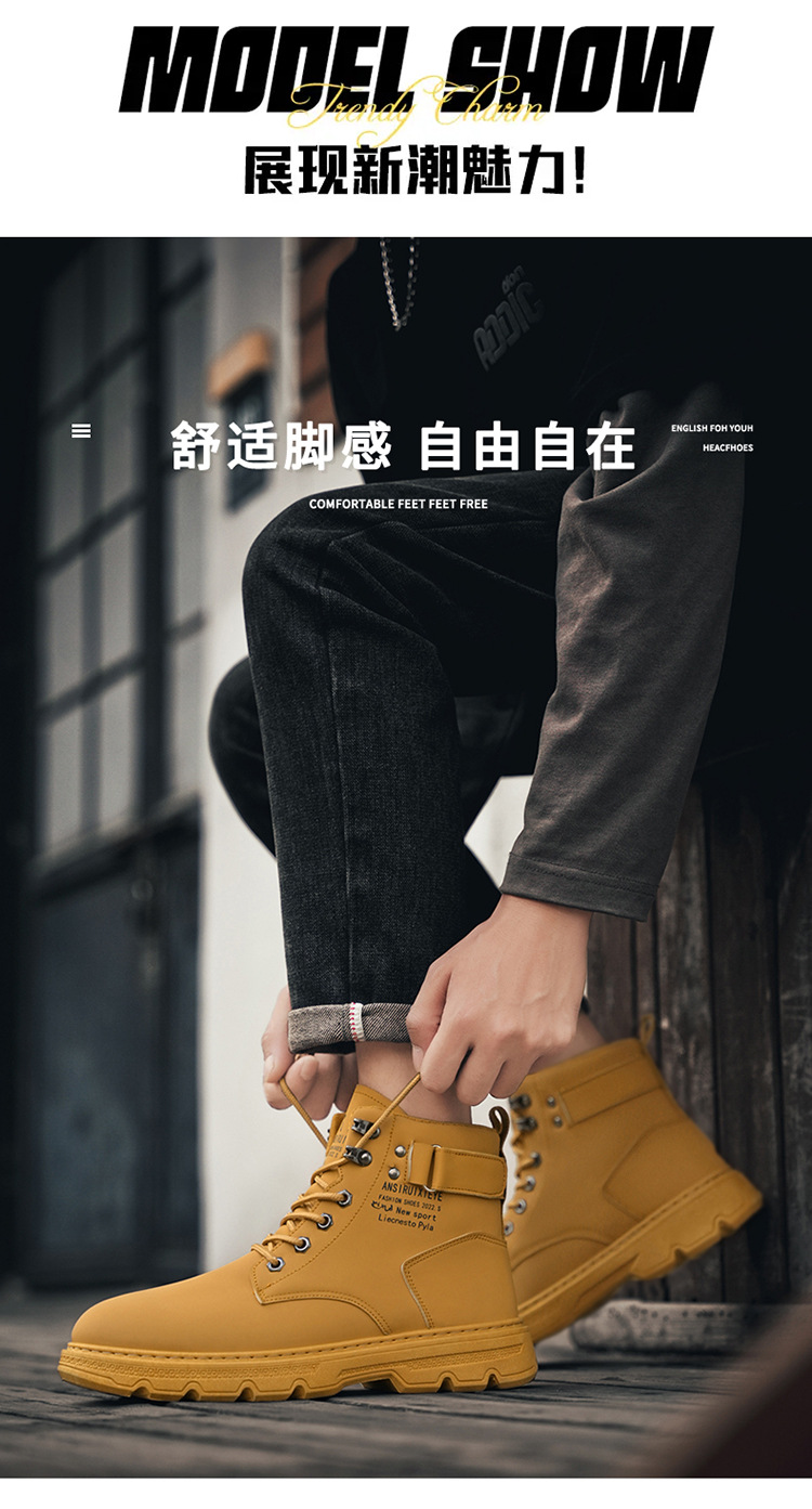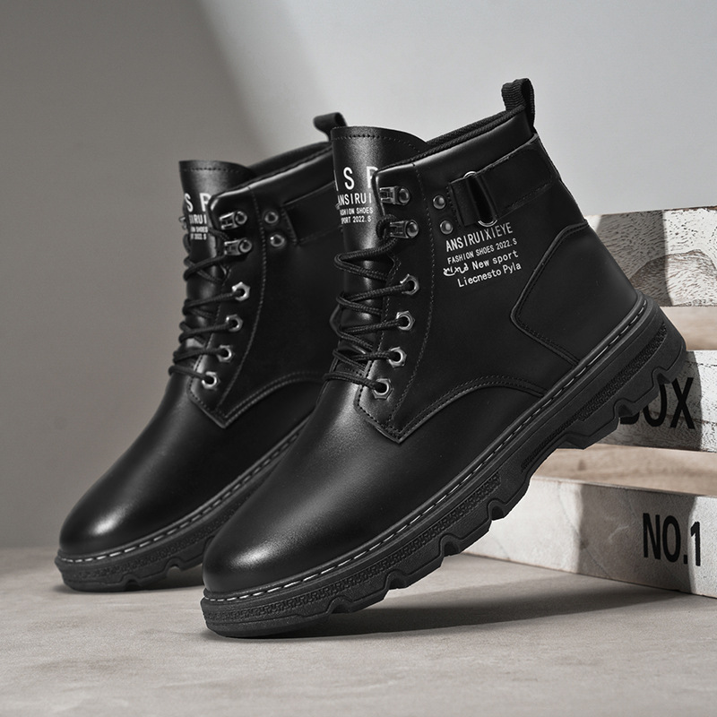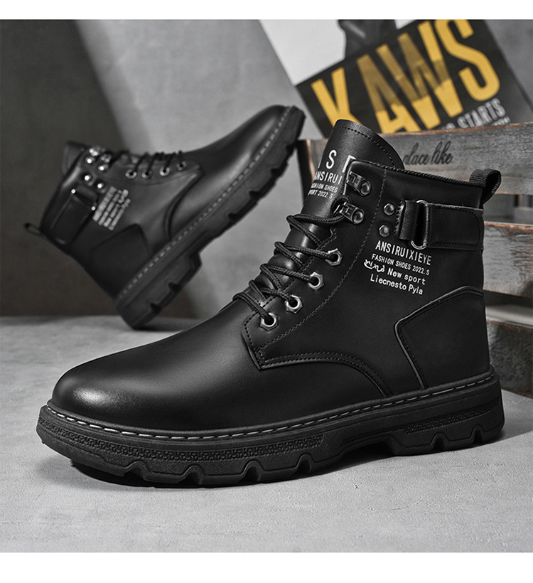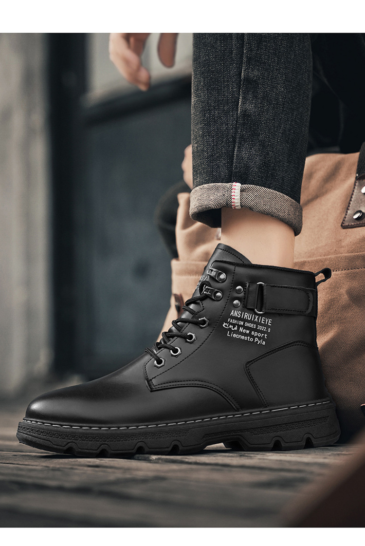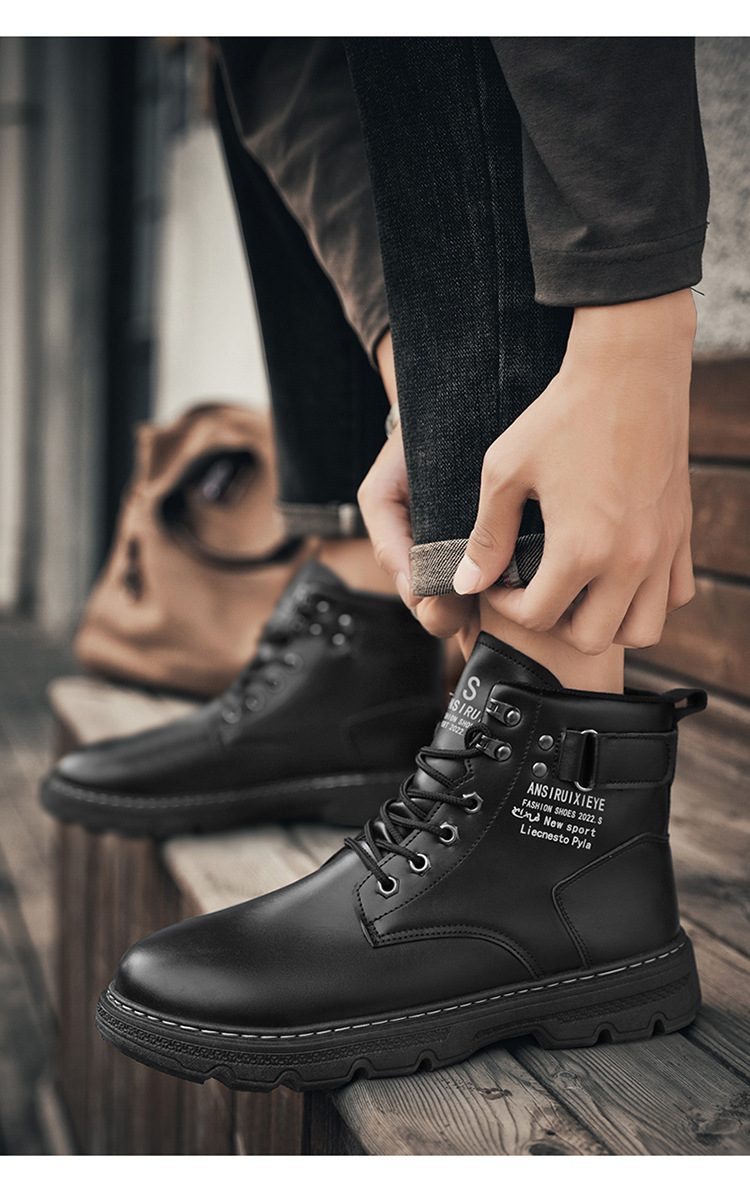 Осенние мужские туфли новые высокие ботинки Martin мужские тренды дикие туфли на толстой подошве повседневные кожаные сапоги черные короткие сапоги