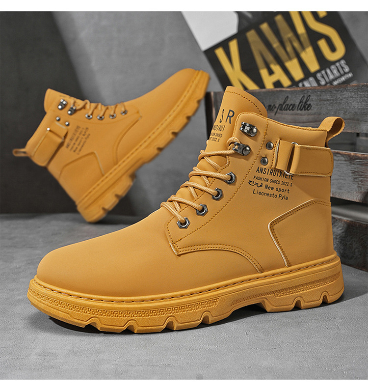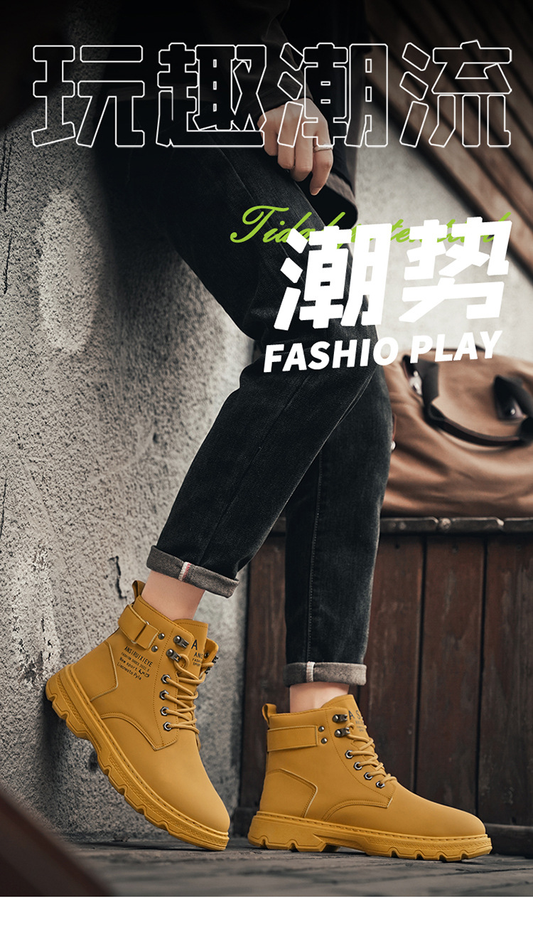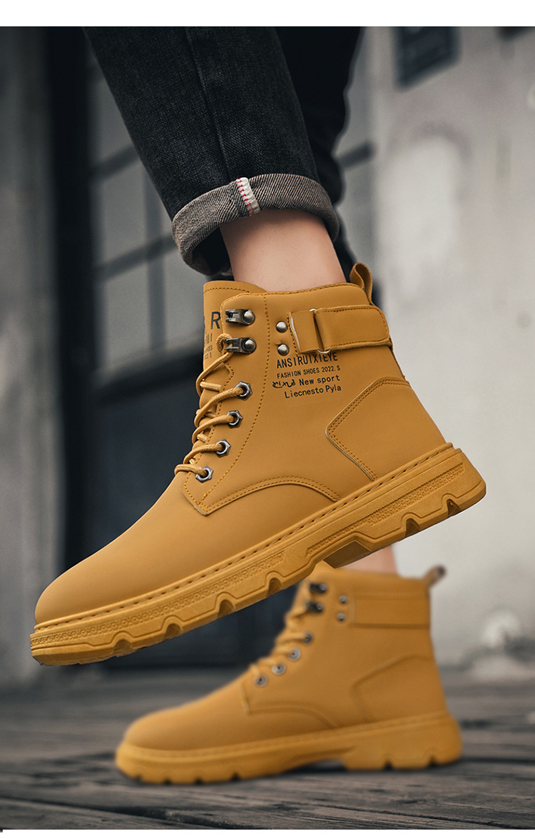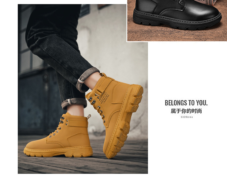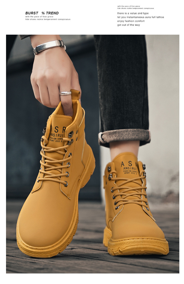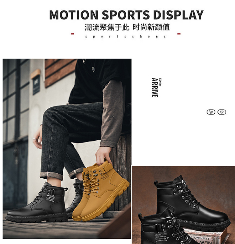 Осенние мужские туфли новые высокие ботинки Martin мужские тренды дикие туфли на толстой подошве повседневные кожаные сапоги черные короткие сапоги