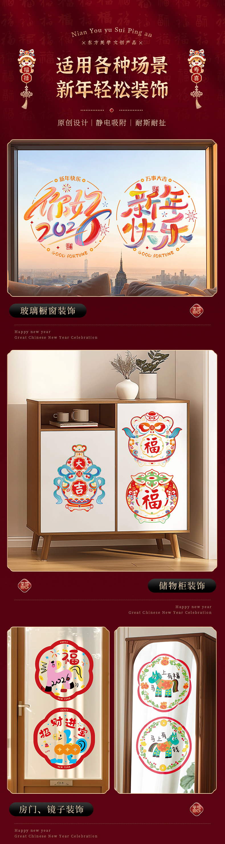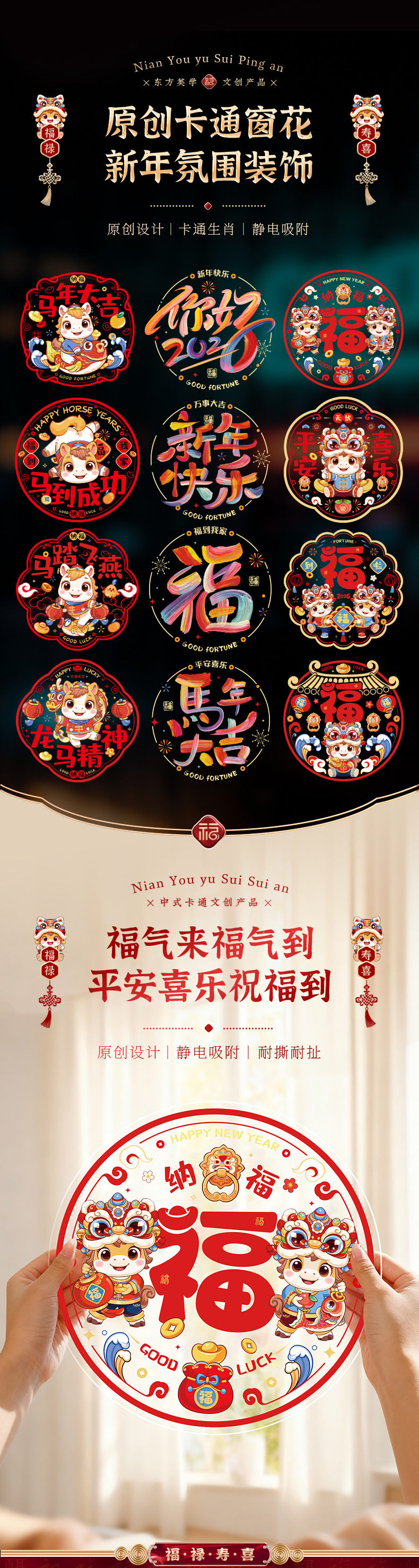 Оконное окно 2025 новый год змеи электростатическая наклейка на стекло