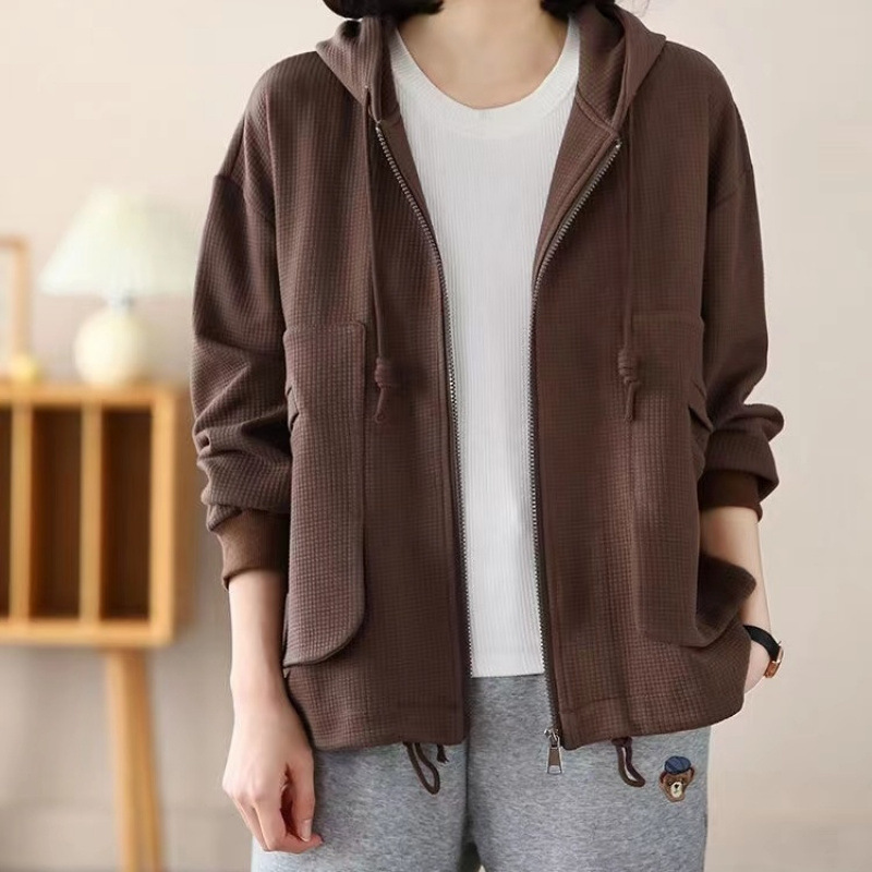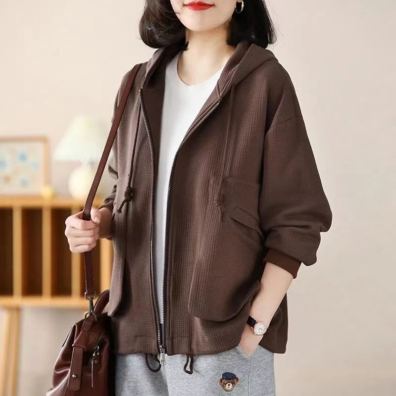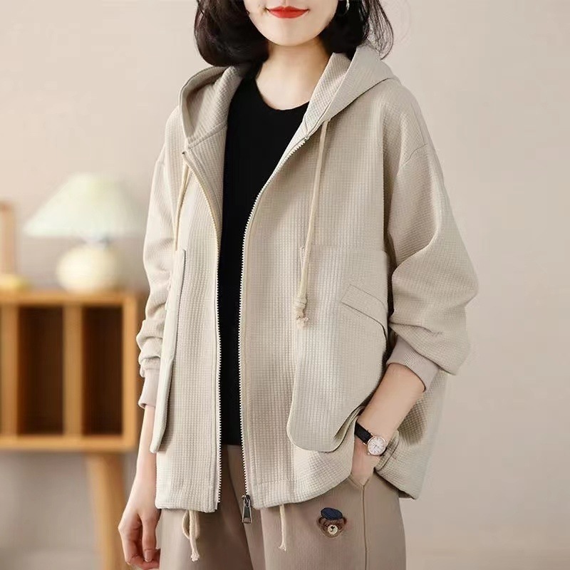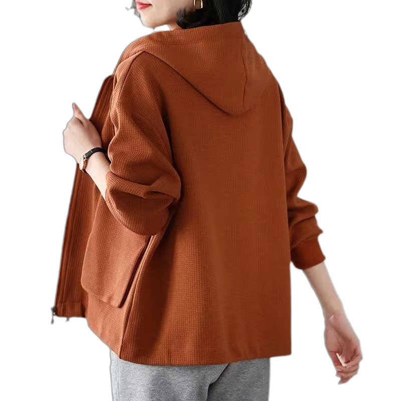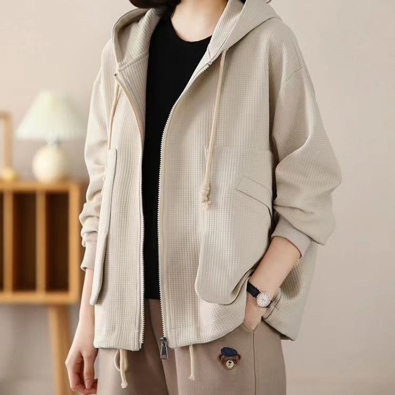 Большой размер повседневный свободный весенний пиджак с капюшоном женский 2024 весна и осень новая мама вафельный модный топ