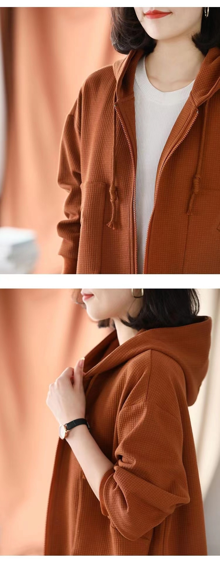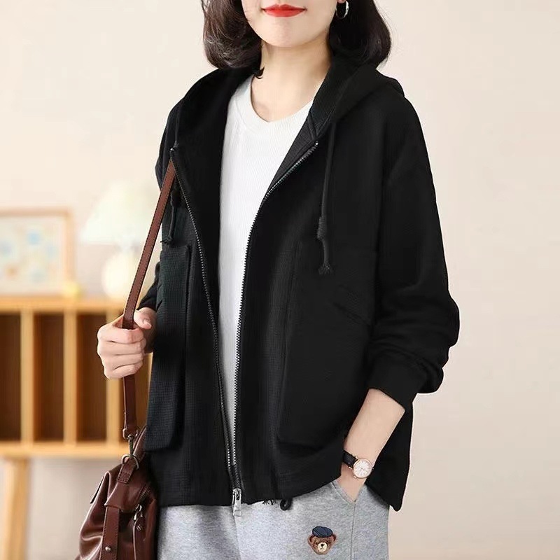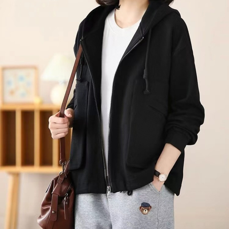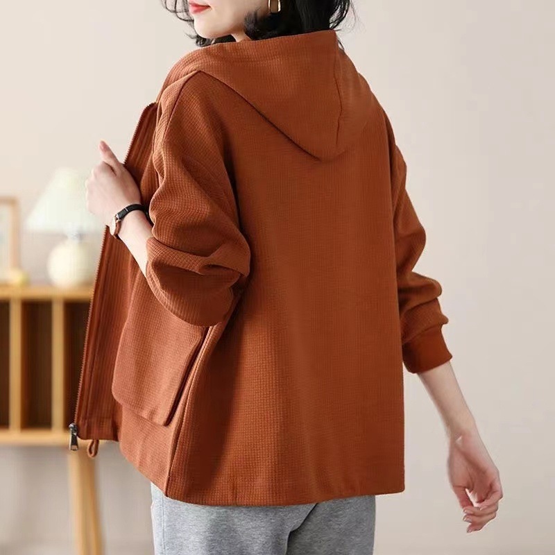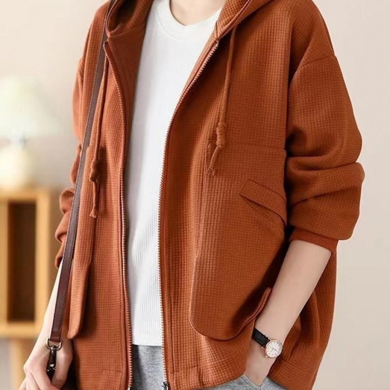 Большой размер повседневный свободный весенний пиджак с капюшоном женский 2024 весна и осень новая мама вафельный модный топ