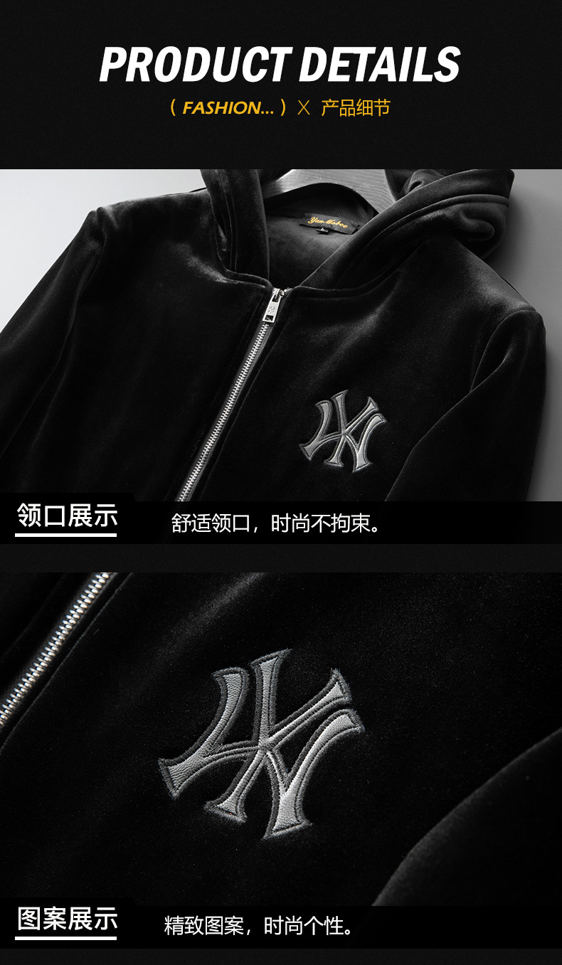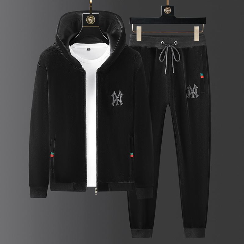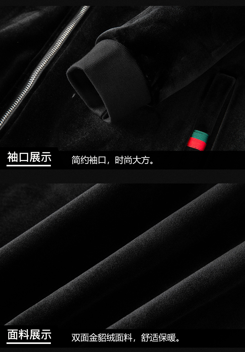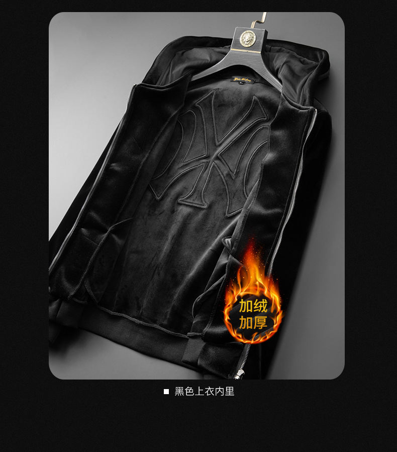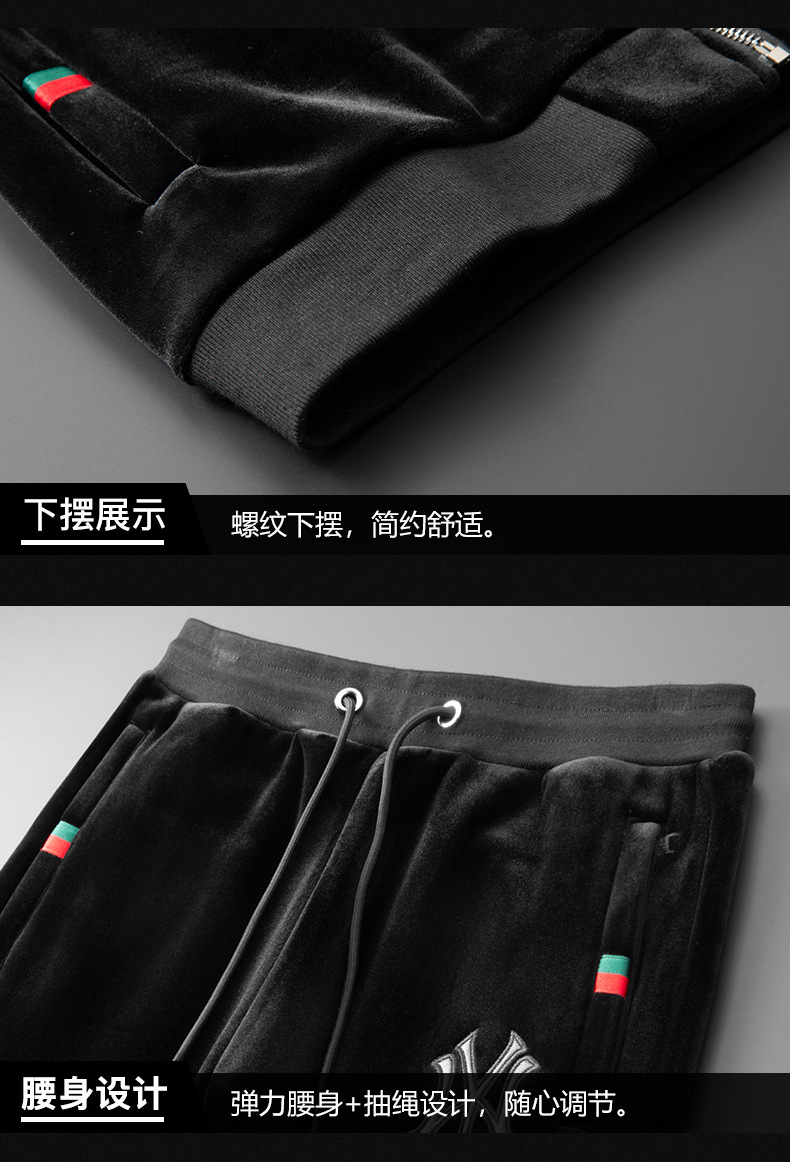 Европейский вокзал мужской бархат утолщение спортивный набор зимний двухсторонний бархат вышивка из двух частей мужской золотой бархат большой размер прилив