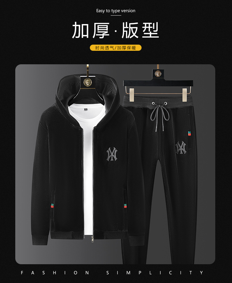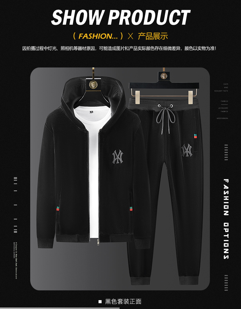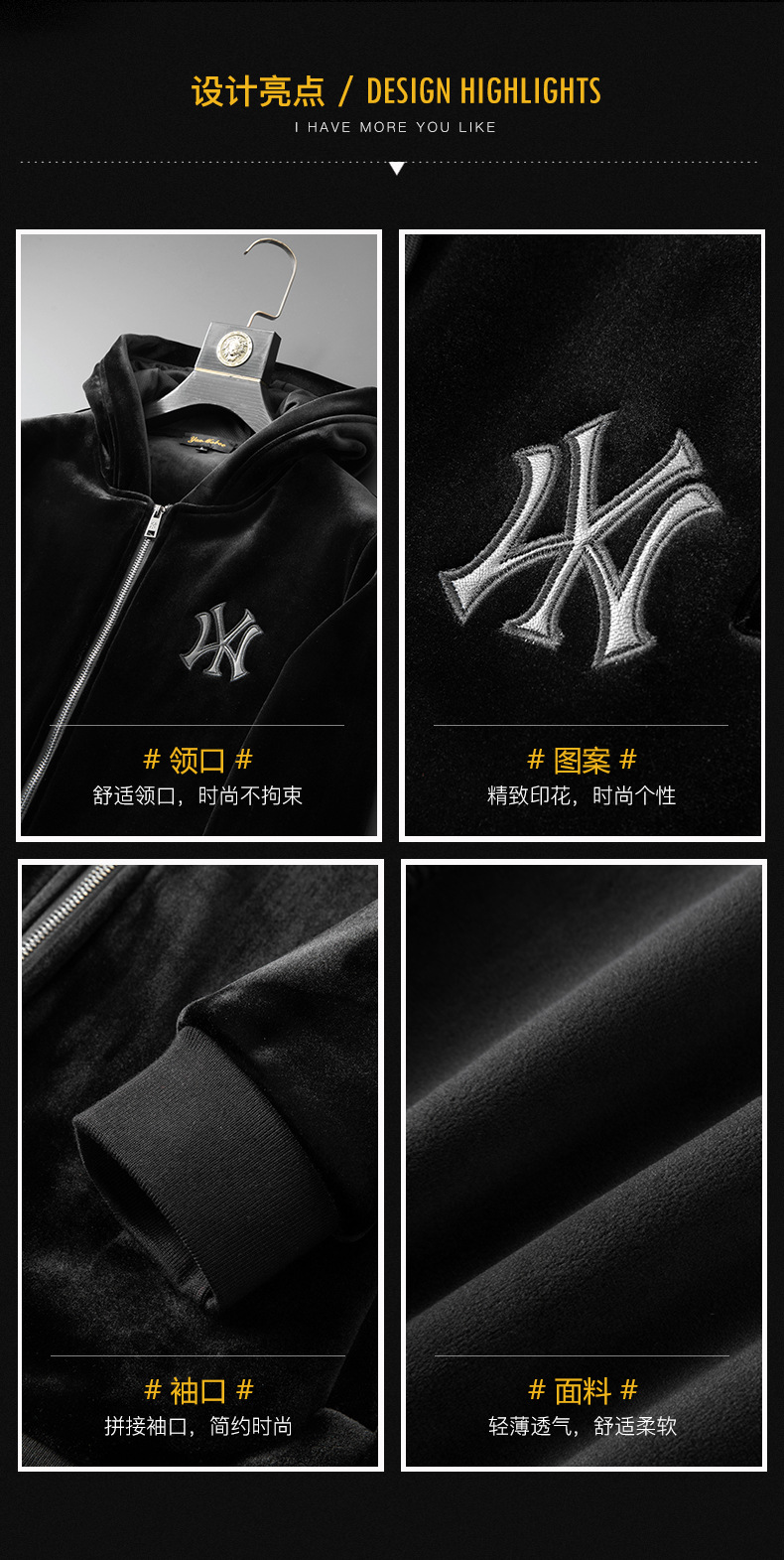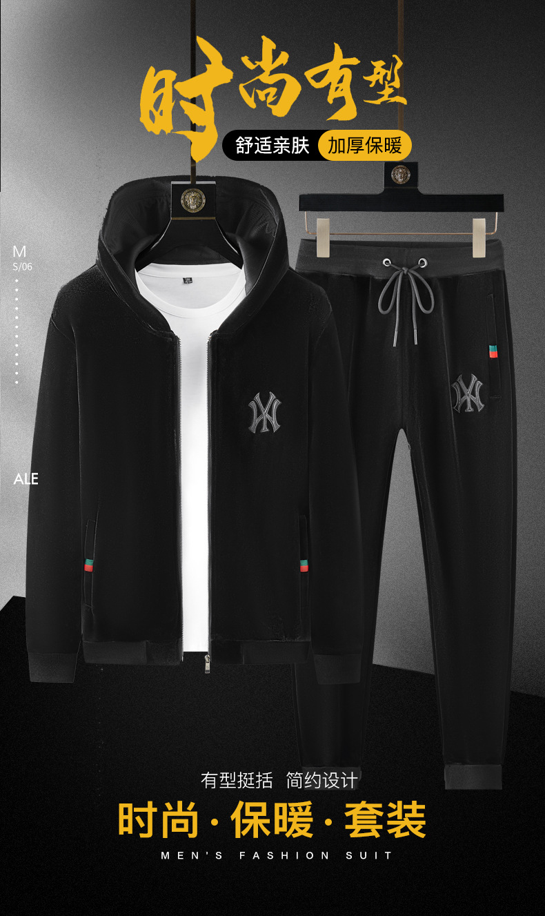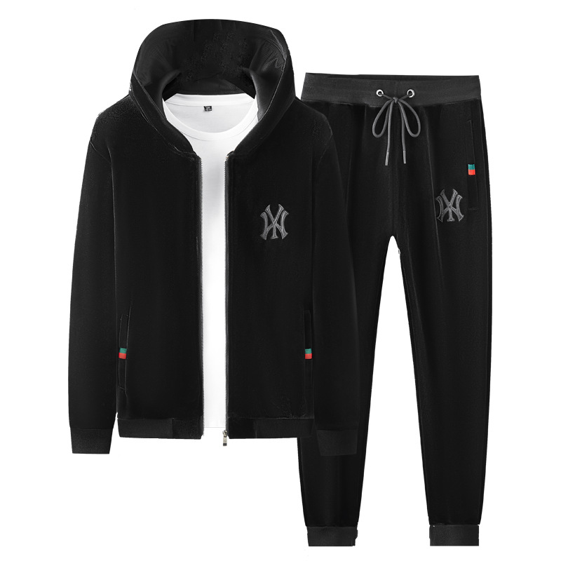 Европейский вокзал мужской бархат утолщение спортивный набор зимний двухсторонний бархат вышивка из двух частей мужской золотой бархат большой размер прилив