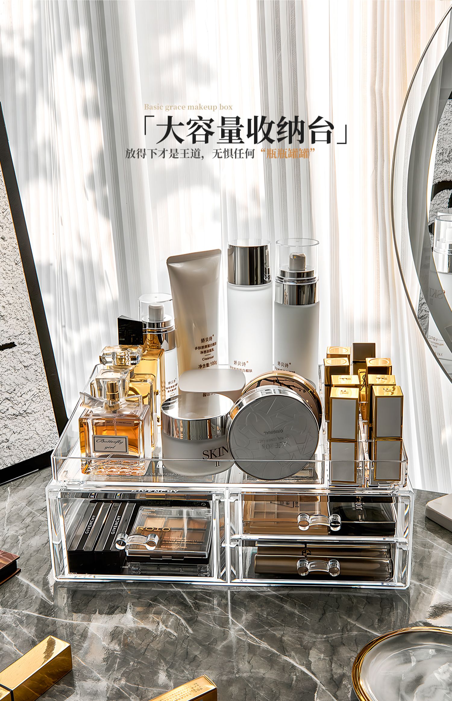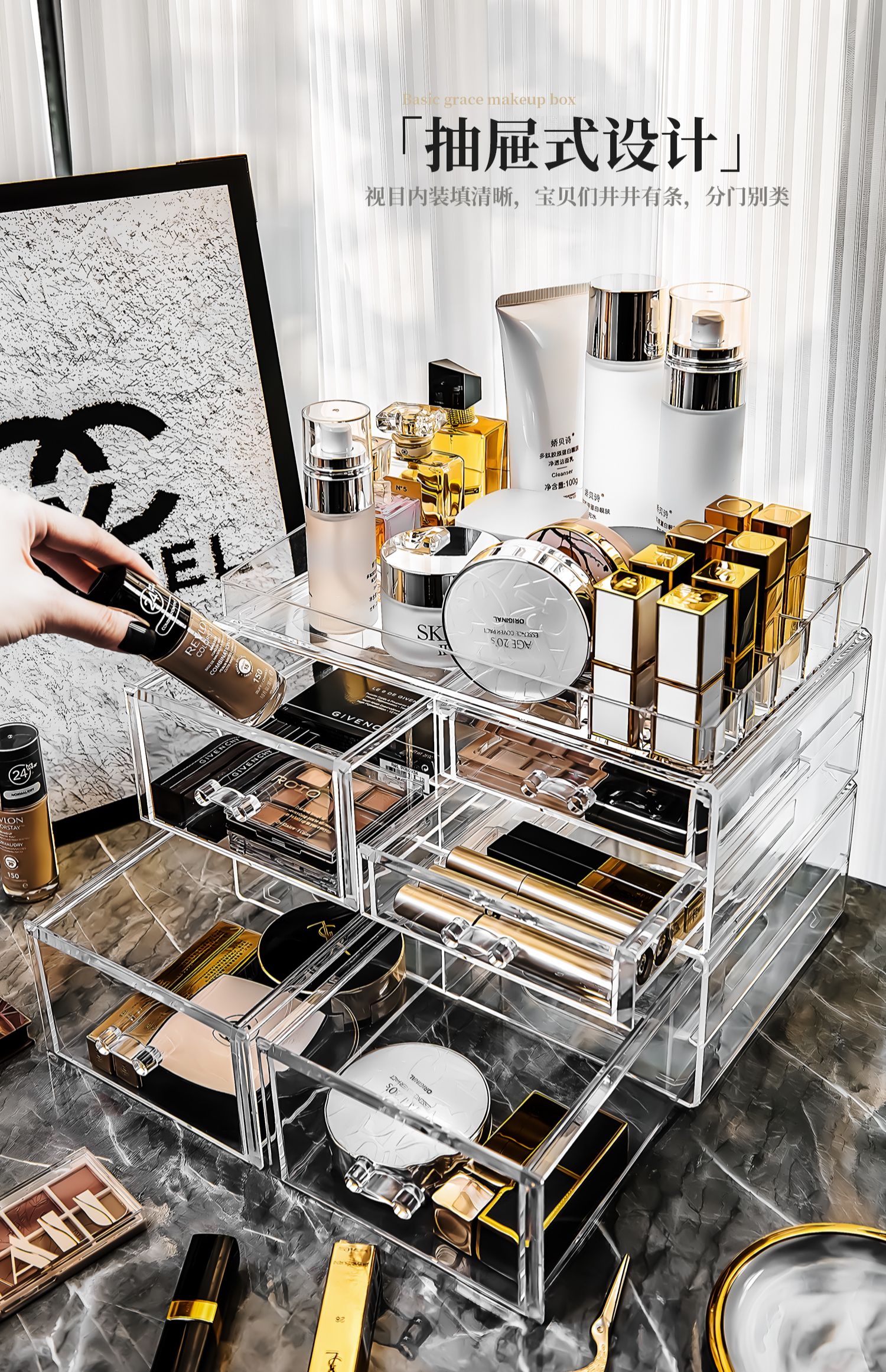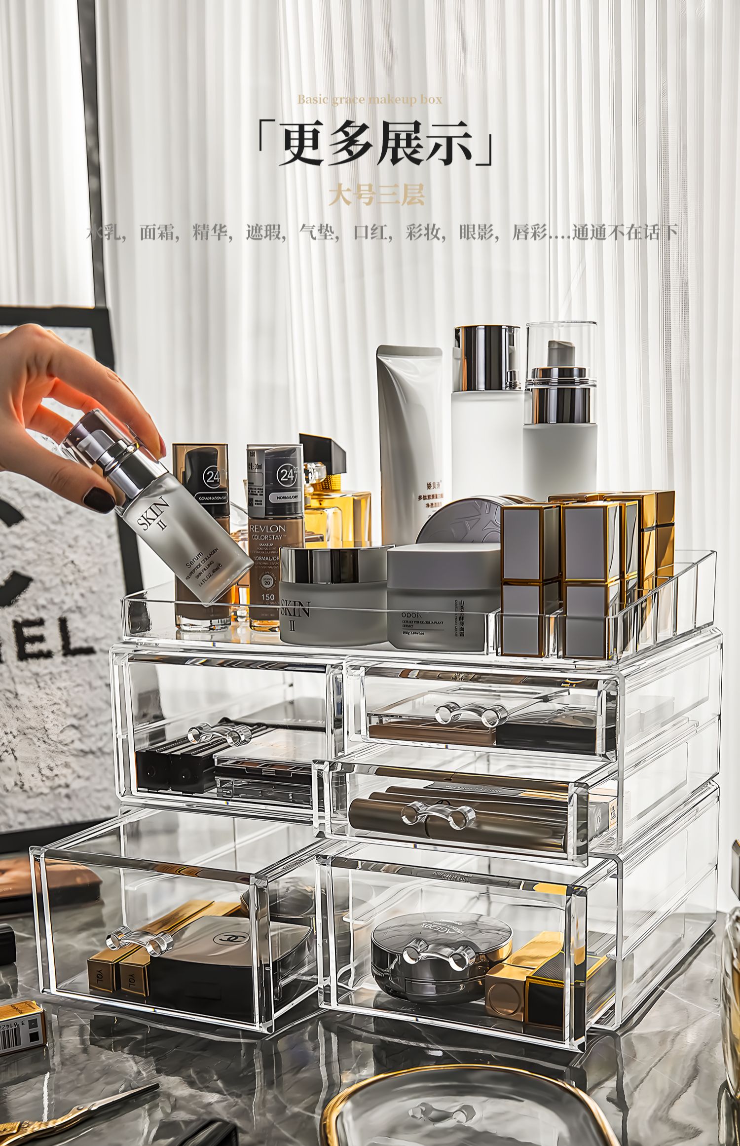 Настольный выдвижной ящик акриловая прозрачная косметическая коробка для хранения большой туалетный столик