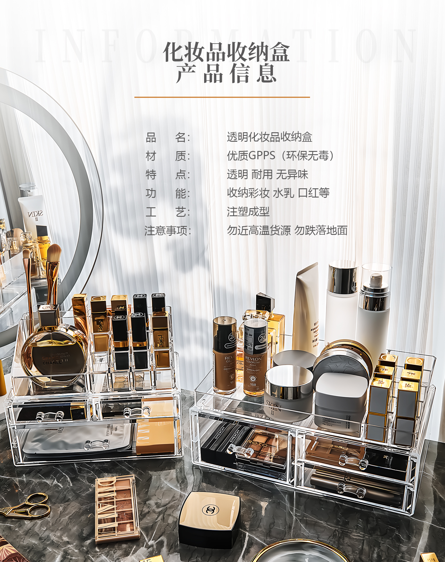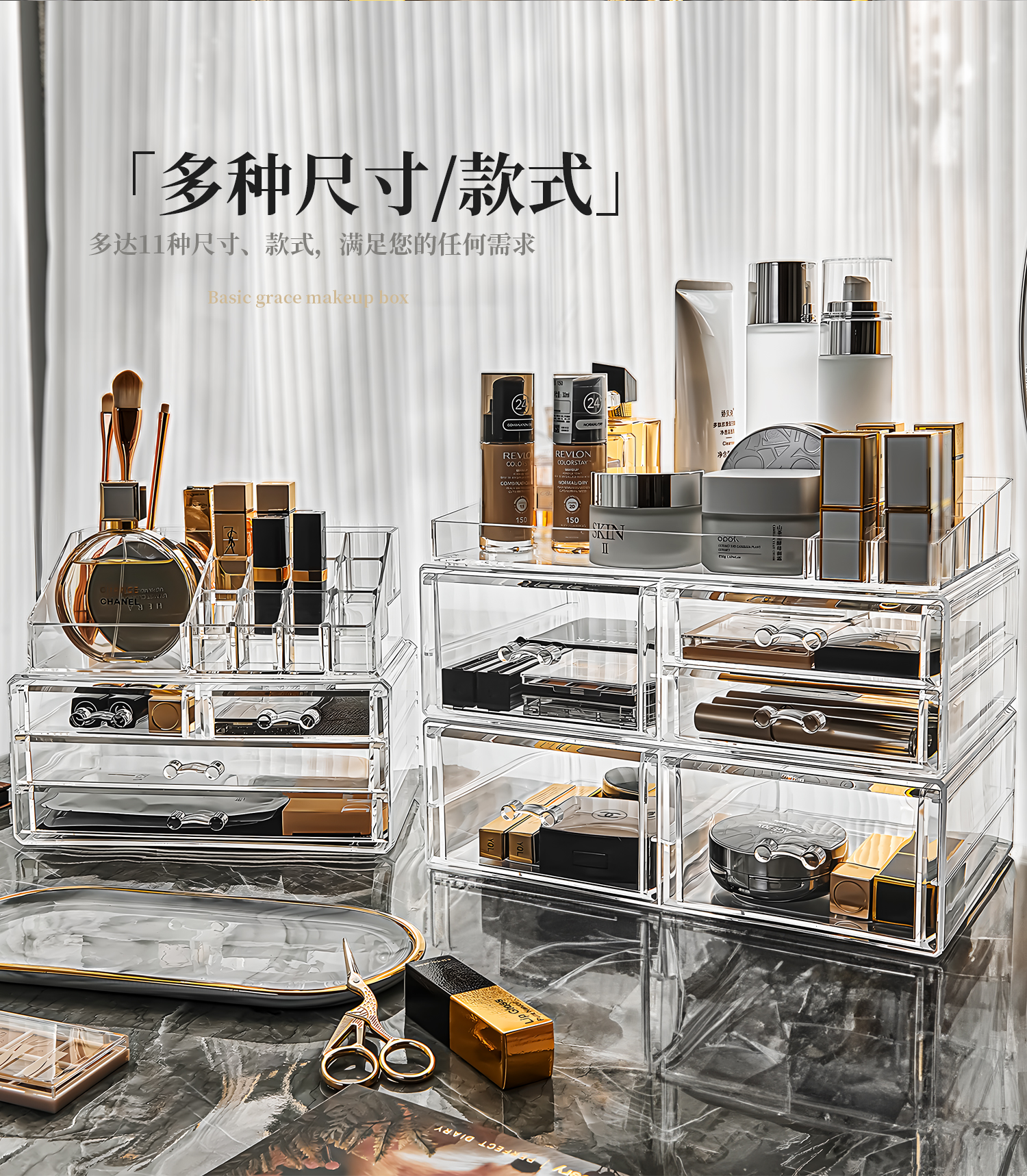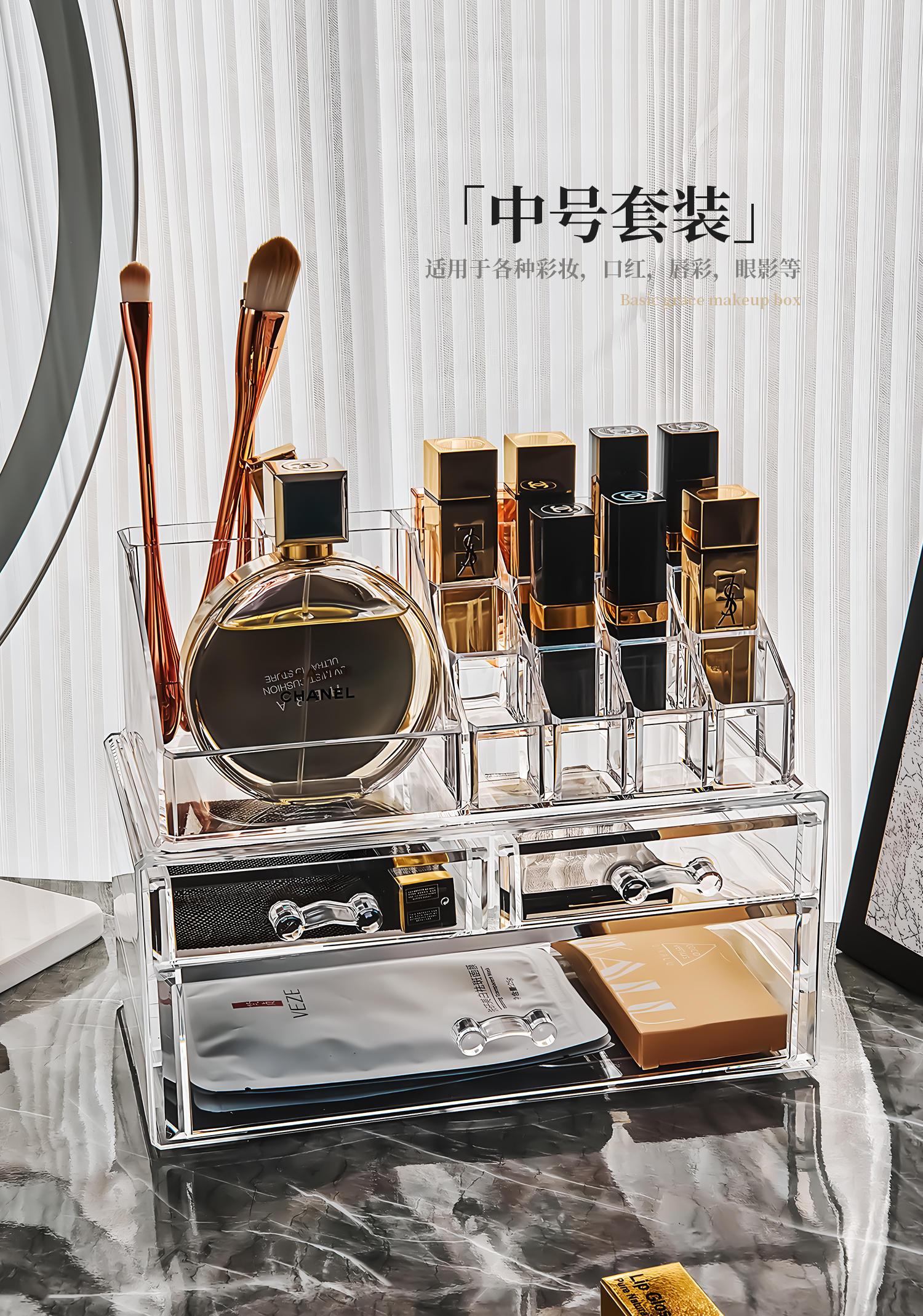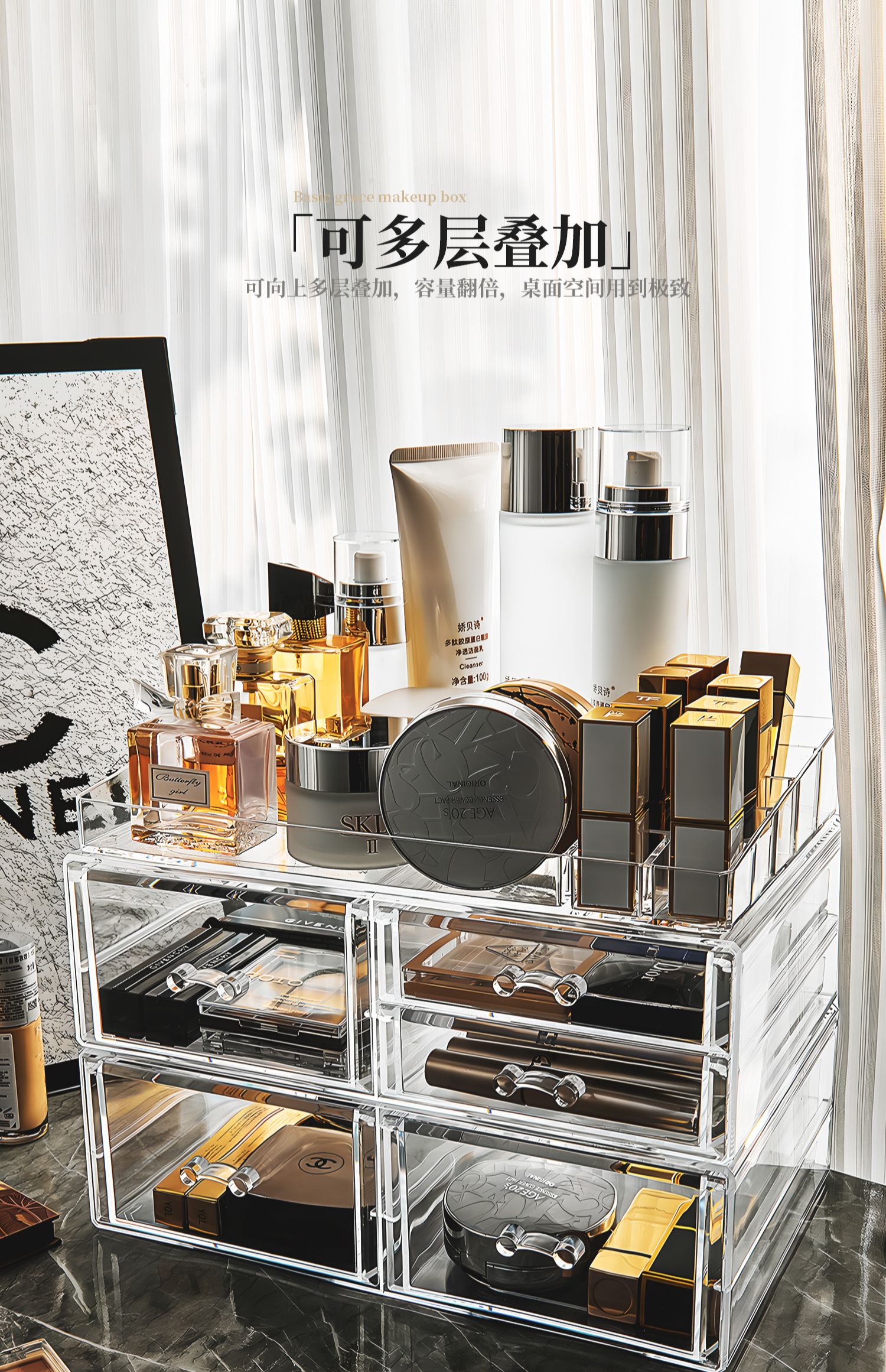 Настольный выдвижной ящик акриловая прозрачная косметическая коробка для хранения большой туалетный столик