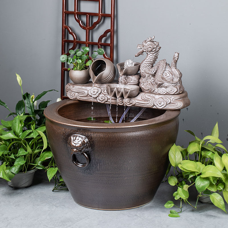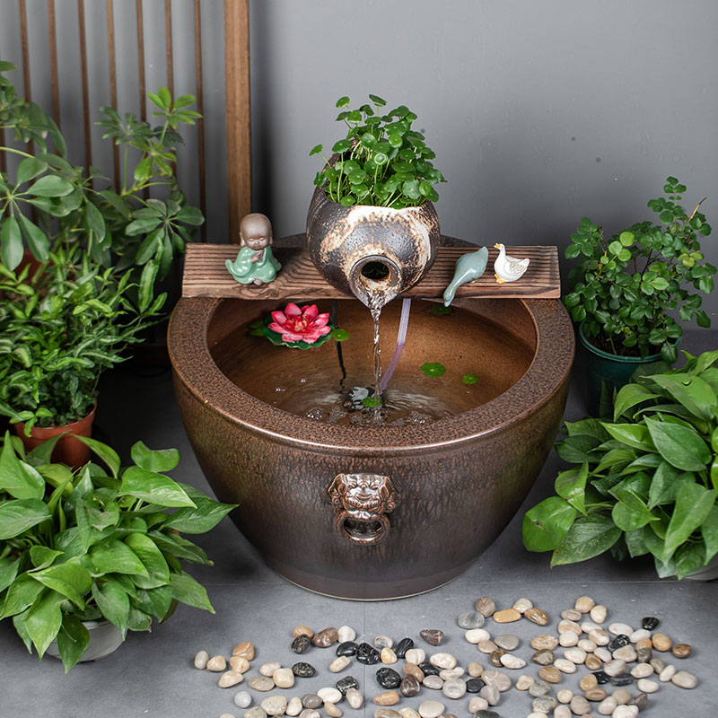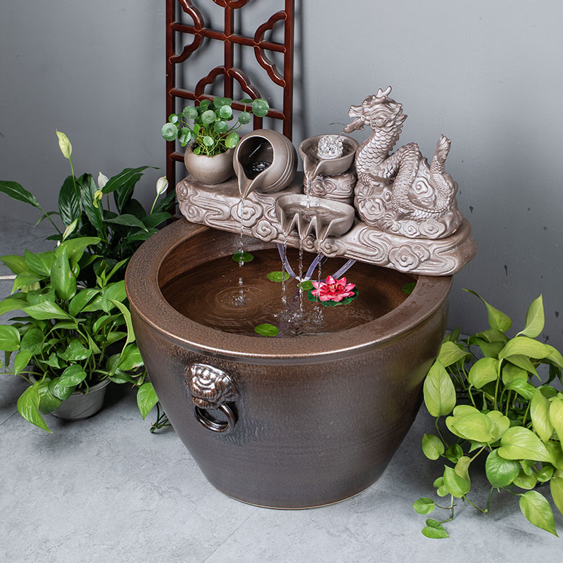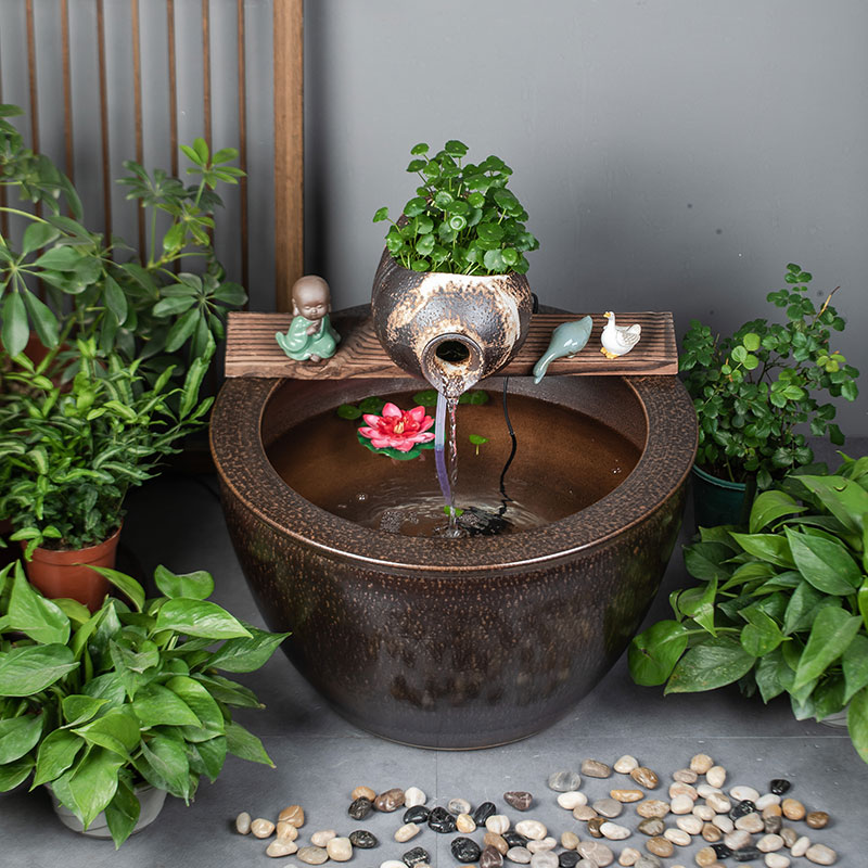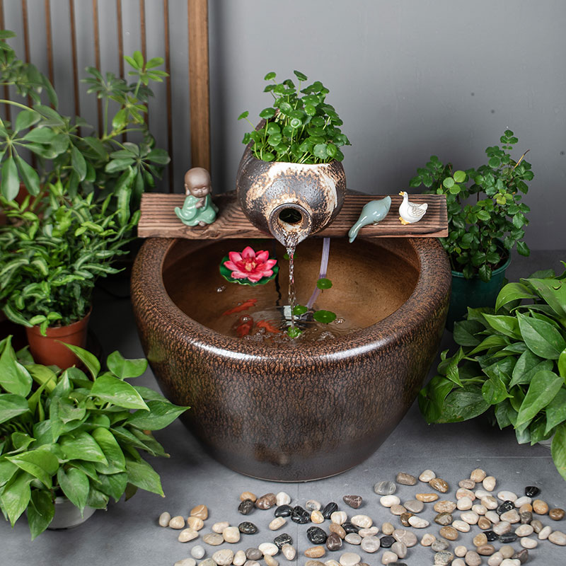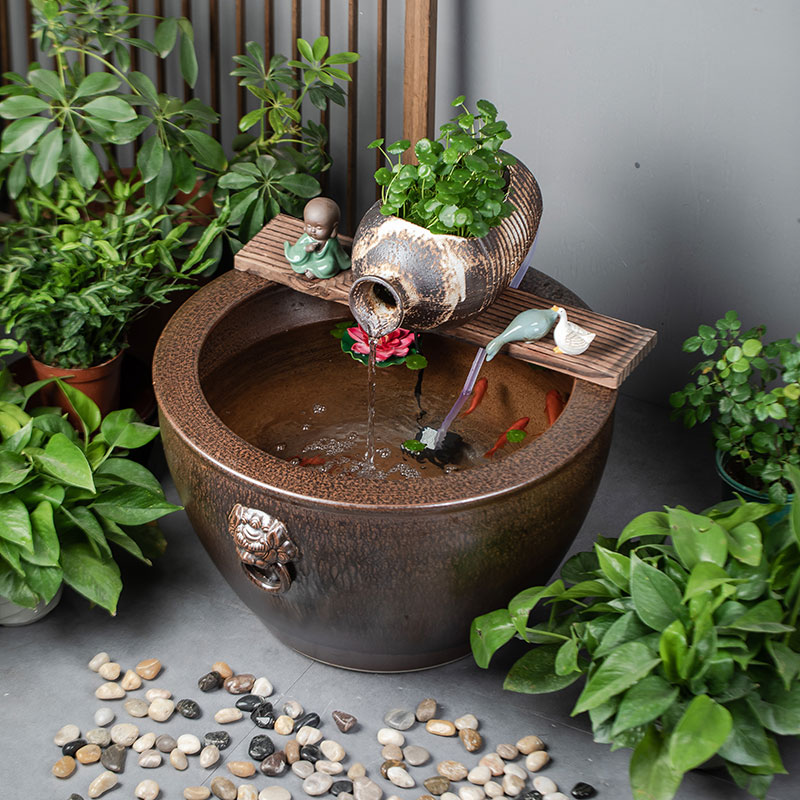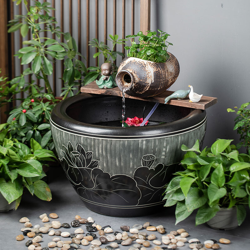Большой керамический резервуар Древний метод рыбоводства гостиная балкон пол-пол аквариум с золотыми рыбками