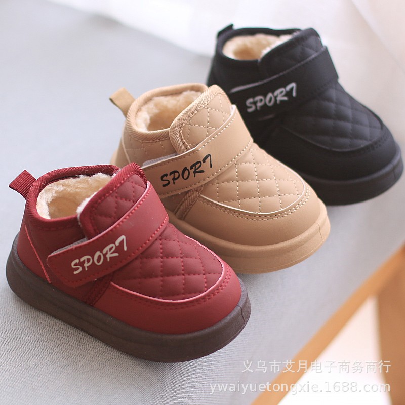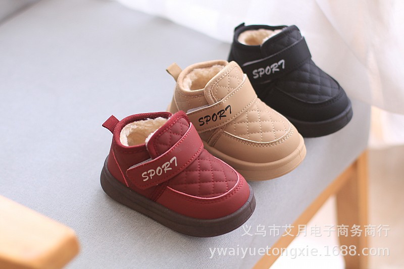 Новые теплые снежные сапоги 1-3 года детская детская обувь нескользящая и бархатная детская обувь на мягкой подошве зимние короткие хлопковые сапоги