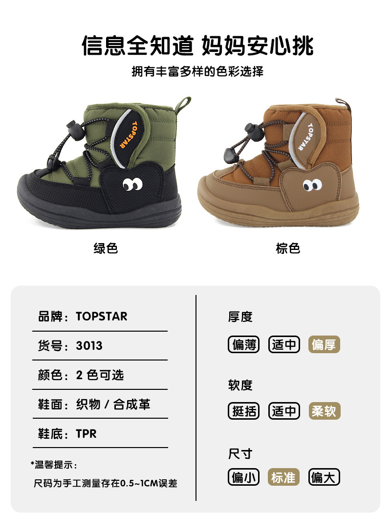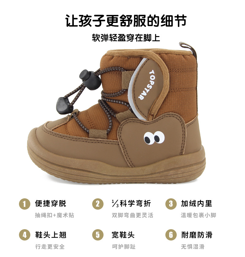 TOPSTAR2024 зимние новые мягкие подошвы детские снежные сапоги корейские большие глаза хлопковые туфли милые детские туфли