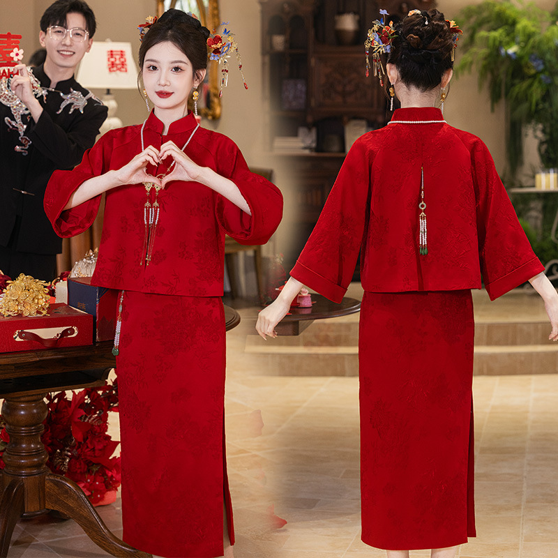 Новое свадебное платье в китайском стиле, осенняя коллекция 2025, новый дизайн, комплект из двух предметов для невесты малого роста, для выпускного вечера и банкета.