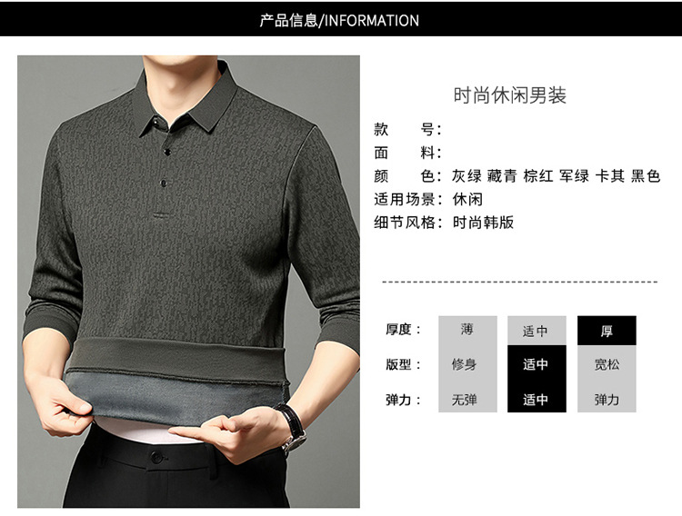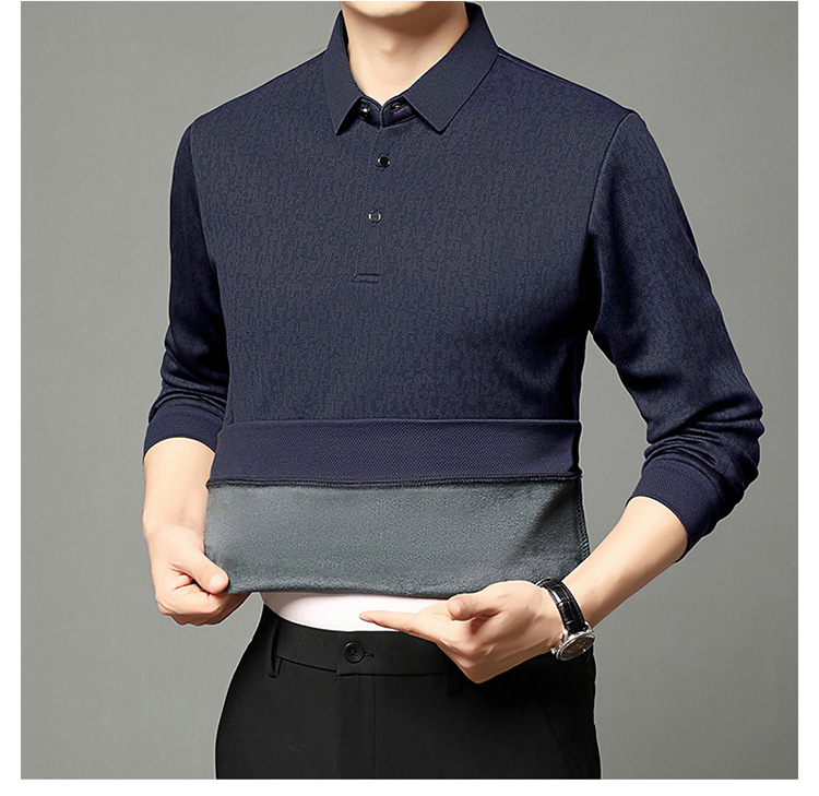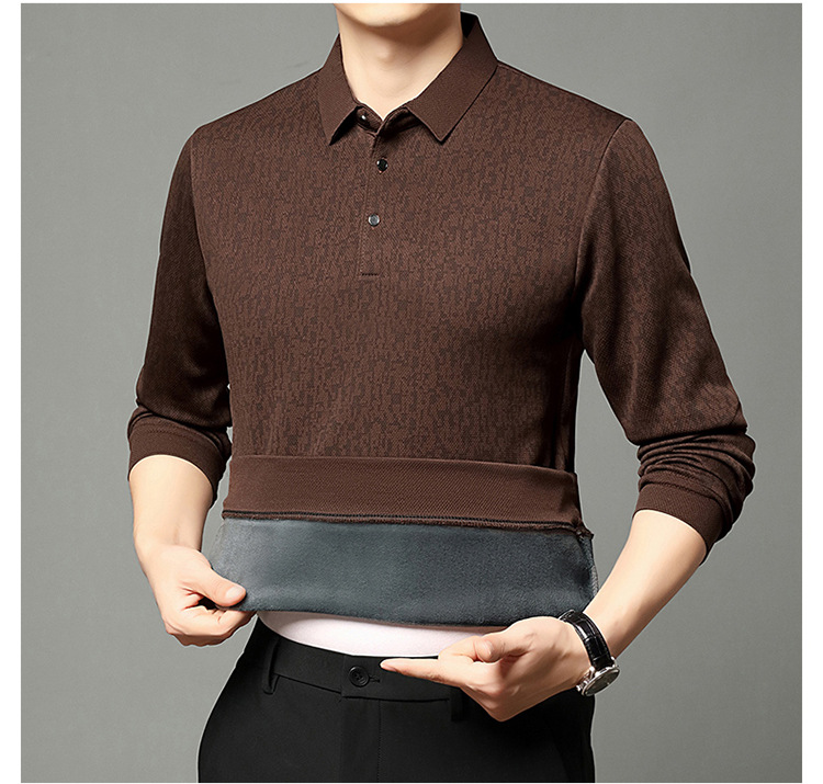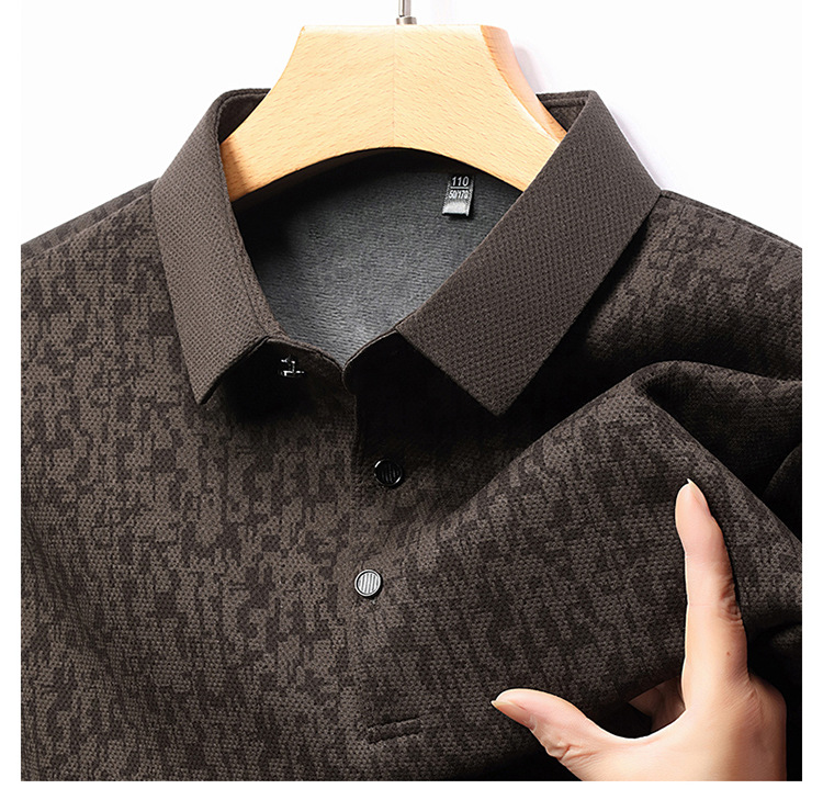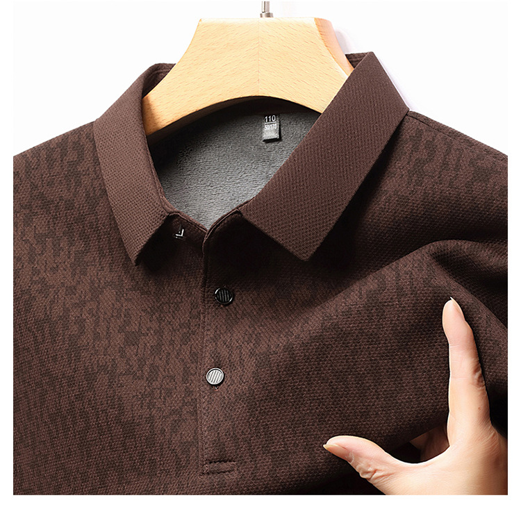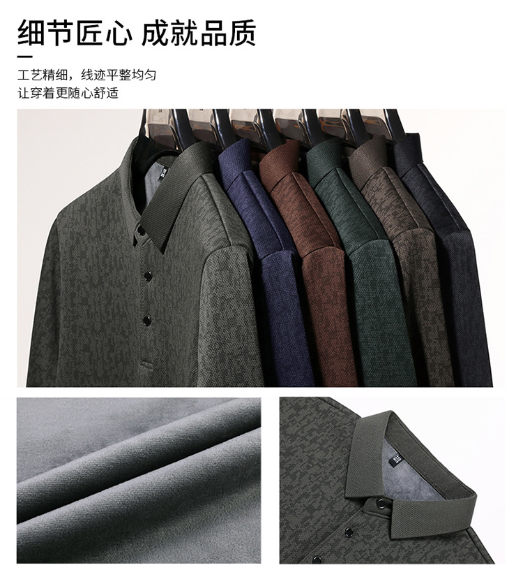 2024 плюшевая рубашка поло мужские осенние и зимние мужчины среднего возраста бизнес повседневная мода с отворотом с длинными рукавами