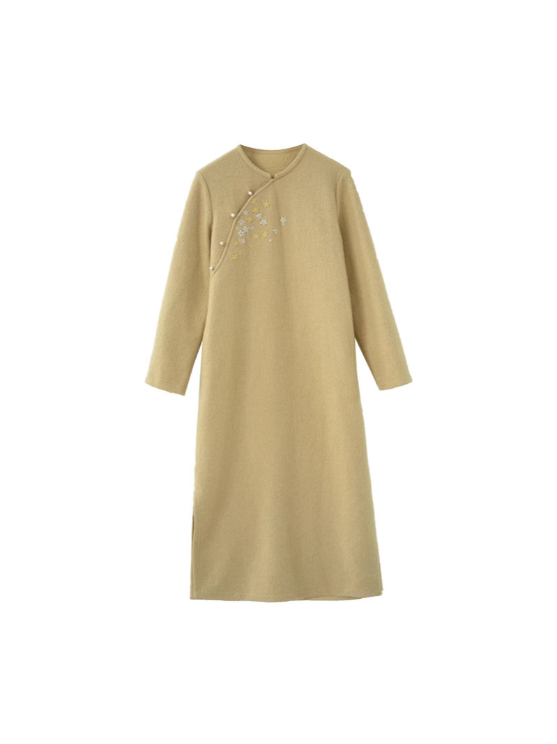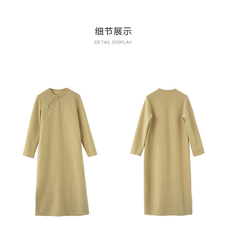2024 новый стиль овечьей шерсти круговой текстуры новый китайский стиль тонкое платье