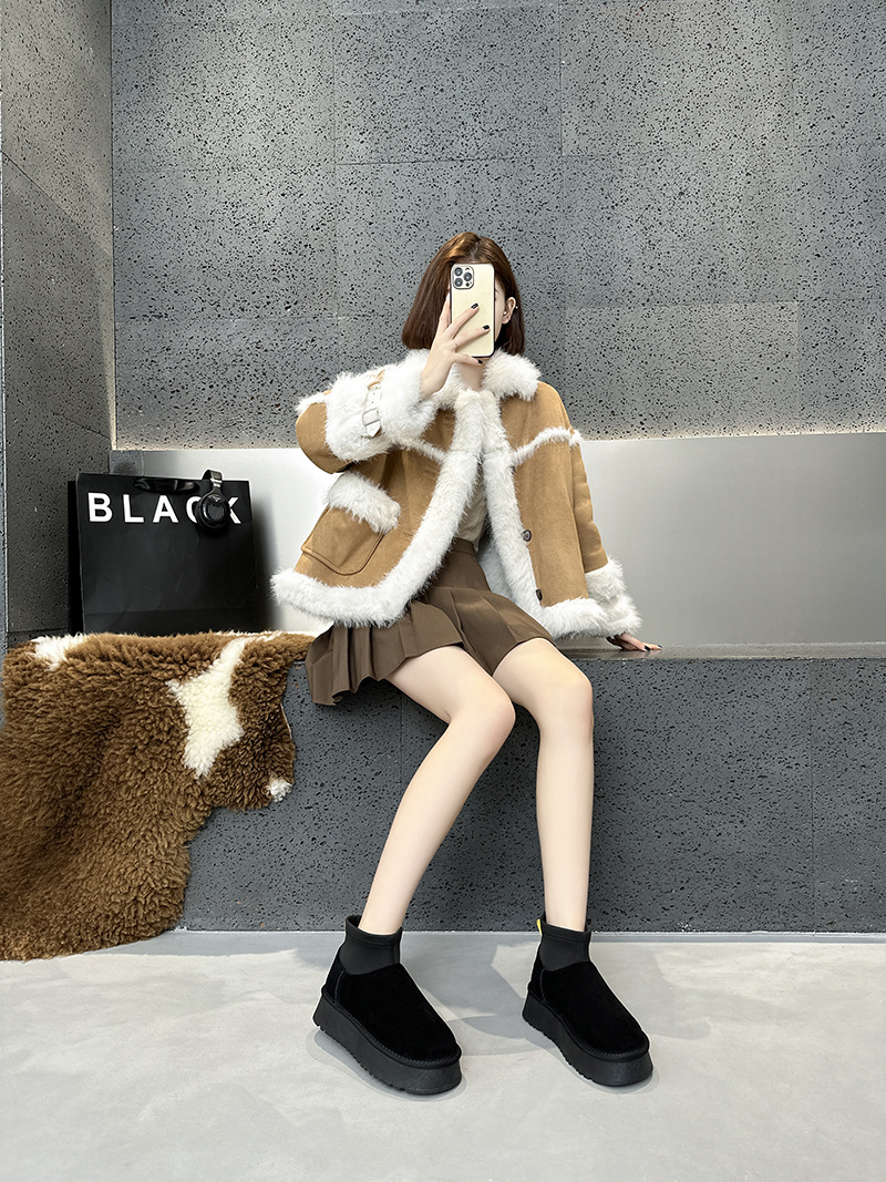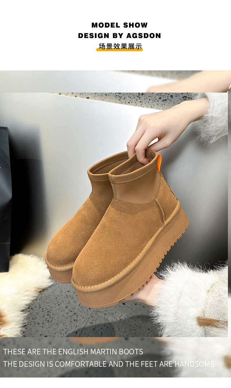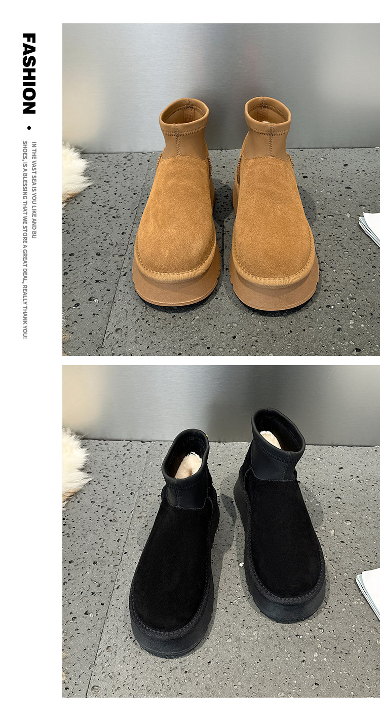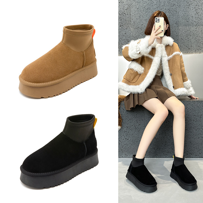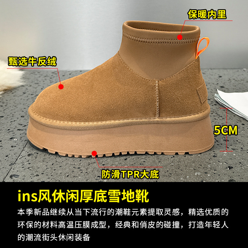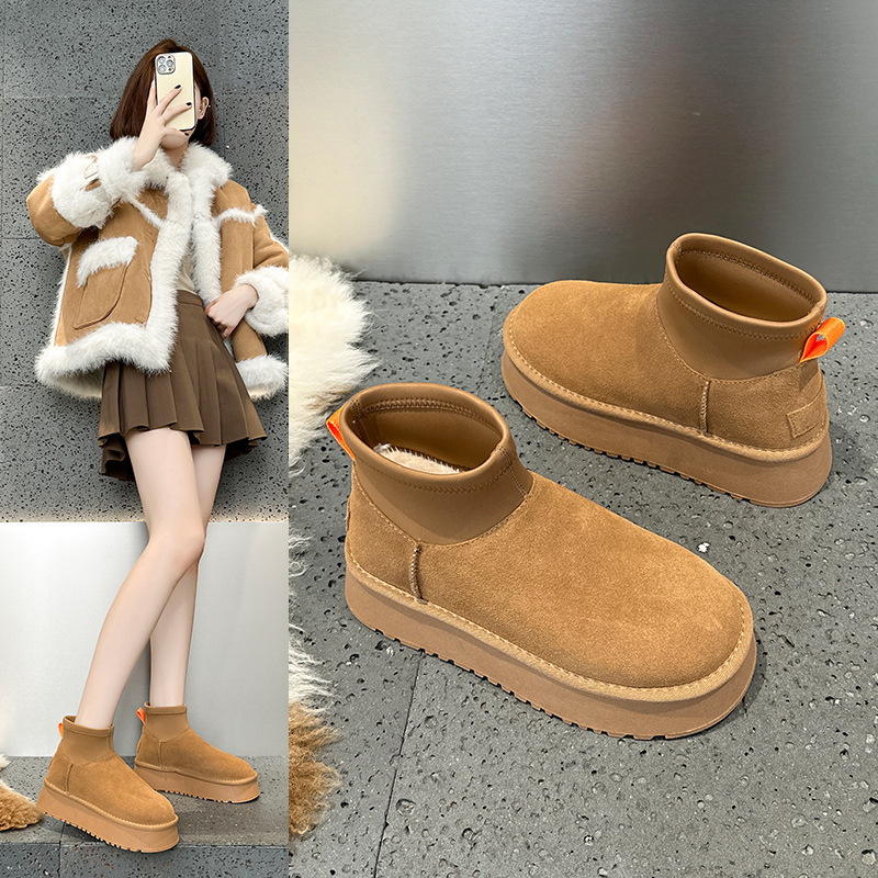 Новые зимние мини-сапоги на толстой подошве для женщин, утепленные флисом короткие сапоги, хлопковые сапоги в северо-восточном стиле, студенческие ботинки Sanpo.
