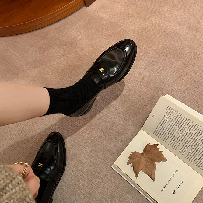 Коровья кожа версия ~ Ретро Триумфальная арка с золотой кнопкой ленивый Lefu обувь одиночные туфли женские маленькие кожаные туфли кожаные плоские туфли