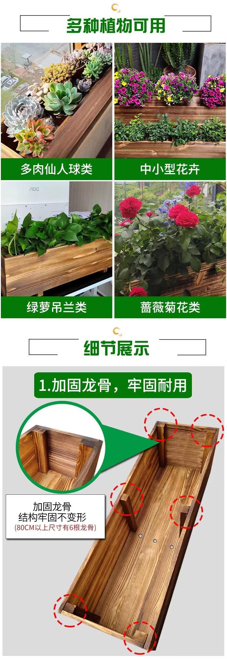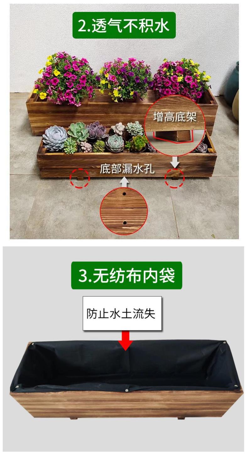 Цветочные горшки карбонизированные прямоугольные деревянные наружные антикоррозийные деревянные цветочные ящики