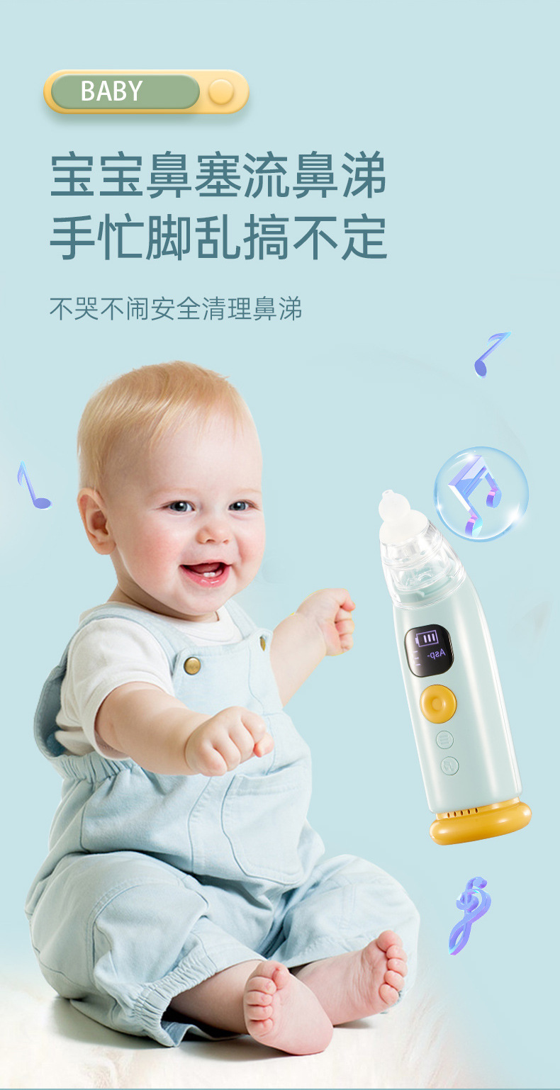 Детский электрический назальный аспиратор для младенцев и маленьких детей, специальный бытовой антирефлюксный назальный аспиратор для очистки носа от заложенности и удаления соплей.