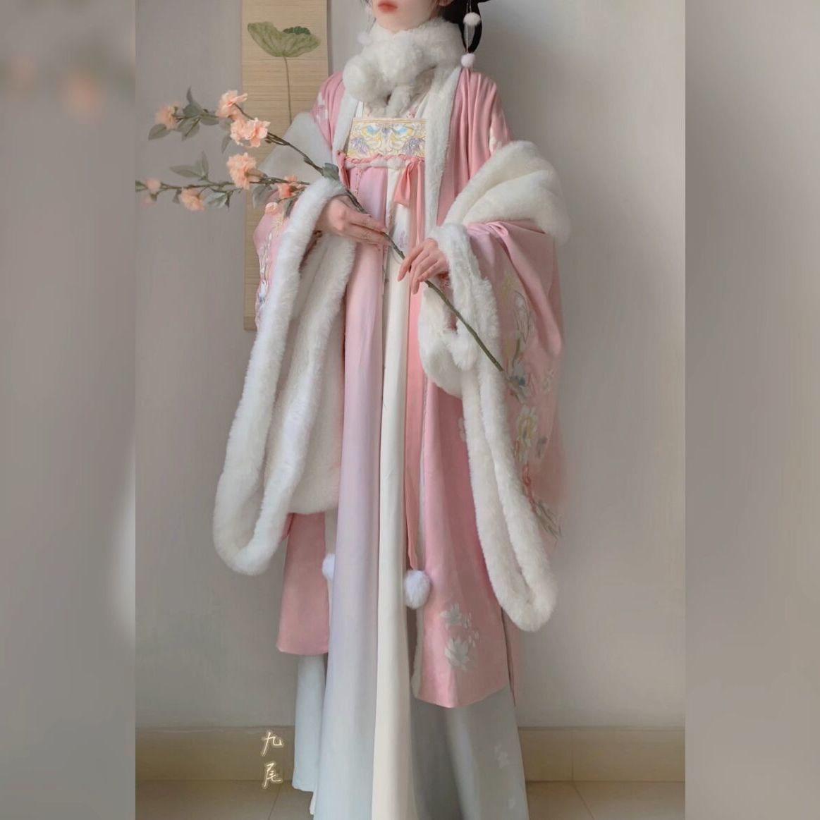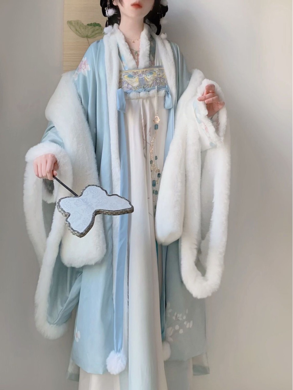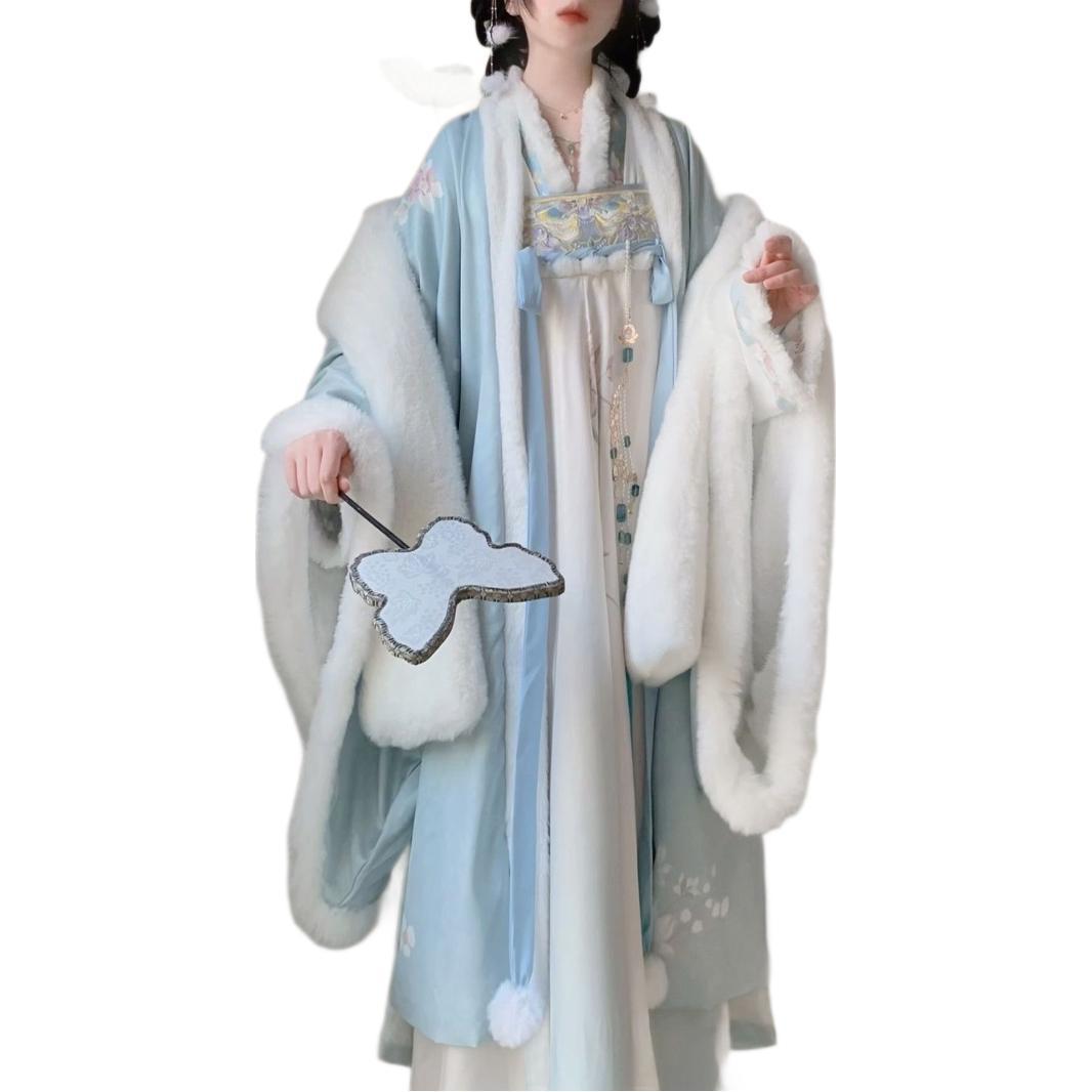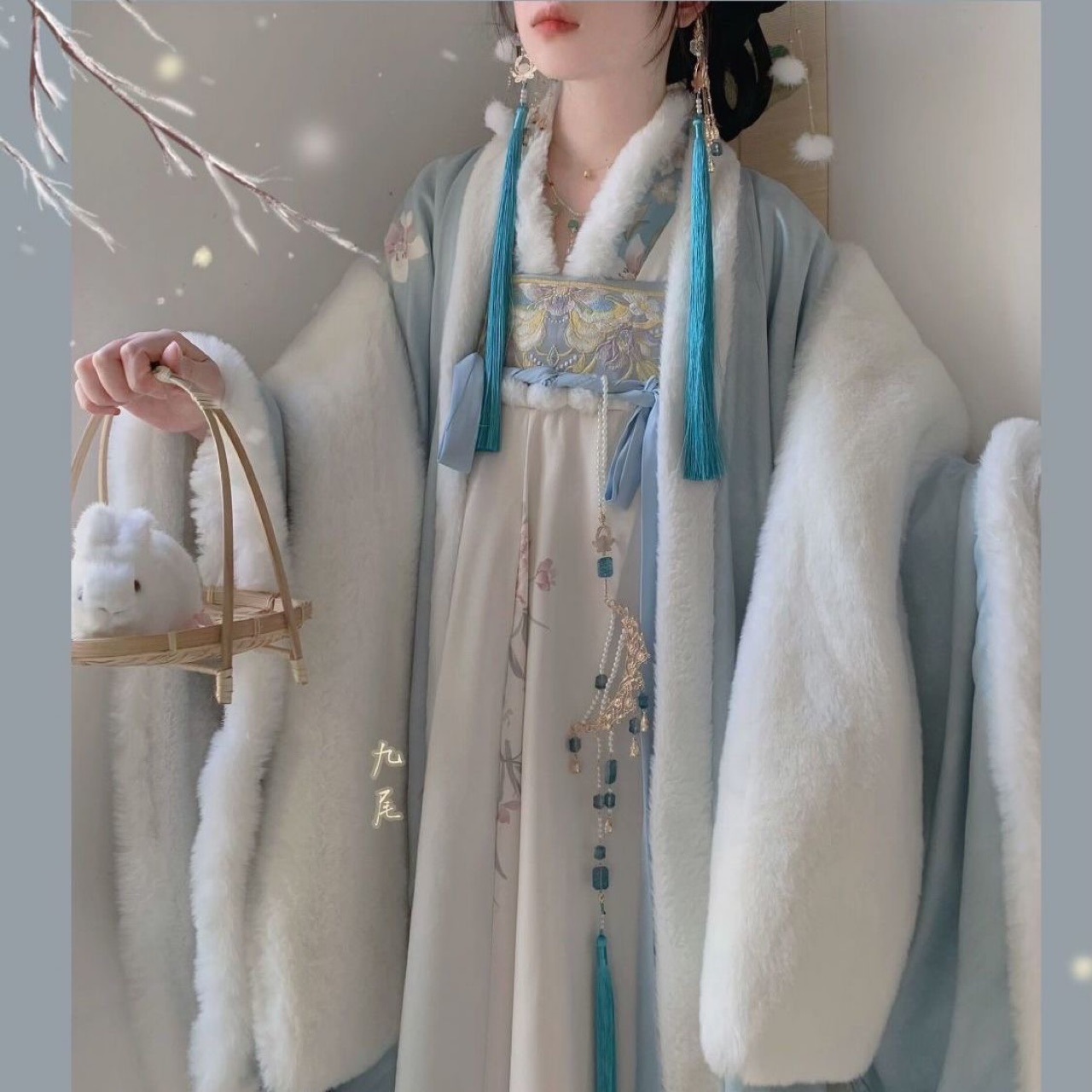 Подруга Hanfu сине-нефритовый чехл с шерстью и плюшевым вышивкой