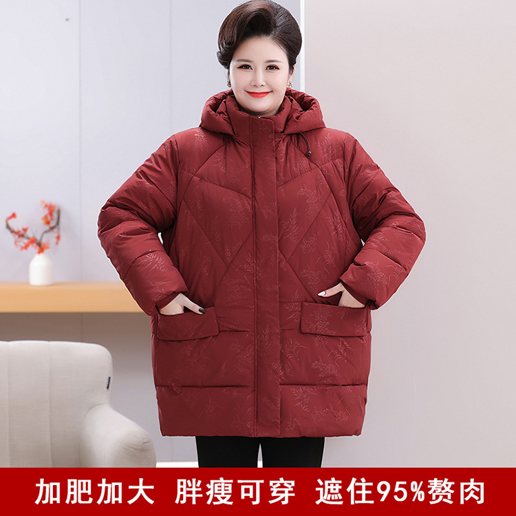 Особо большой размер 200 кг мамы, хлопчатобумажная куртка, женская зимняя одежда среднего и пожилого возраста, хлопчатобумажная куртка средней и длинной