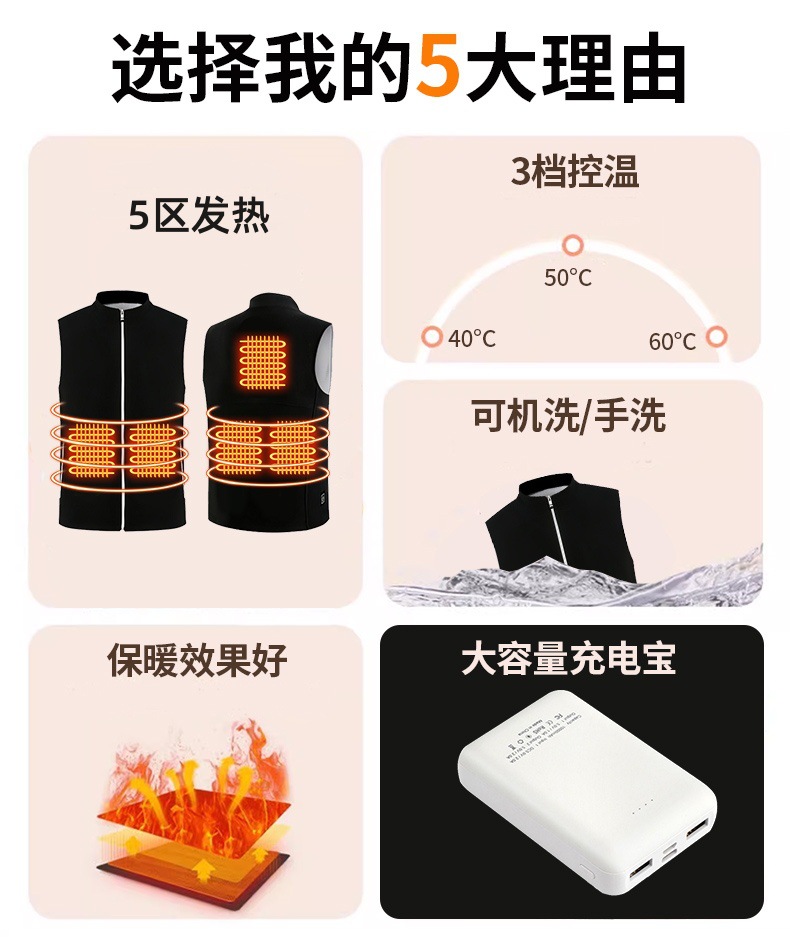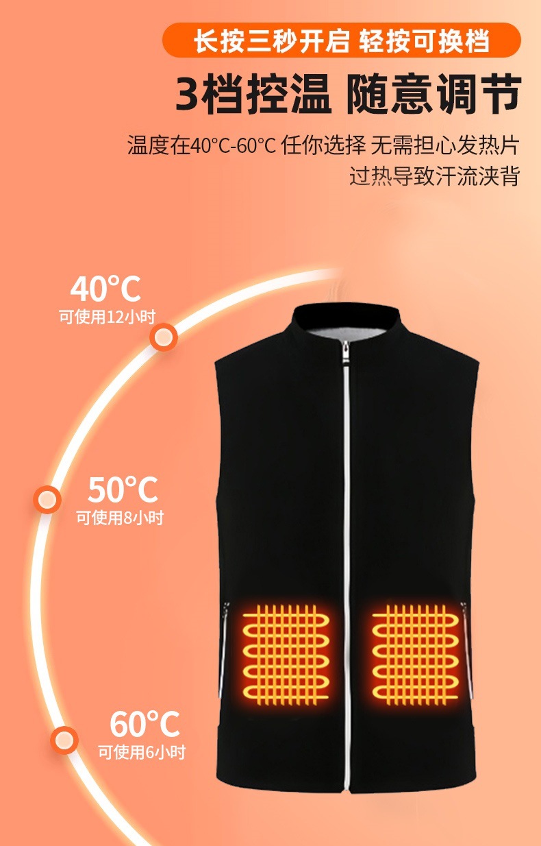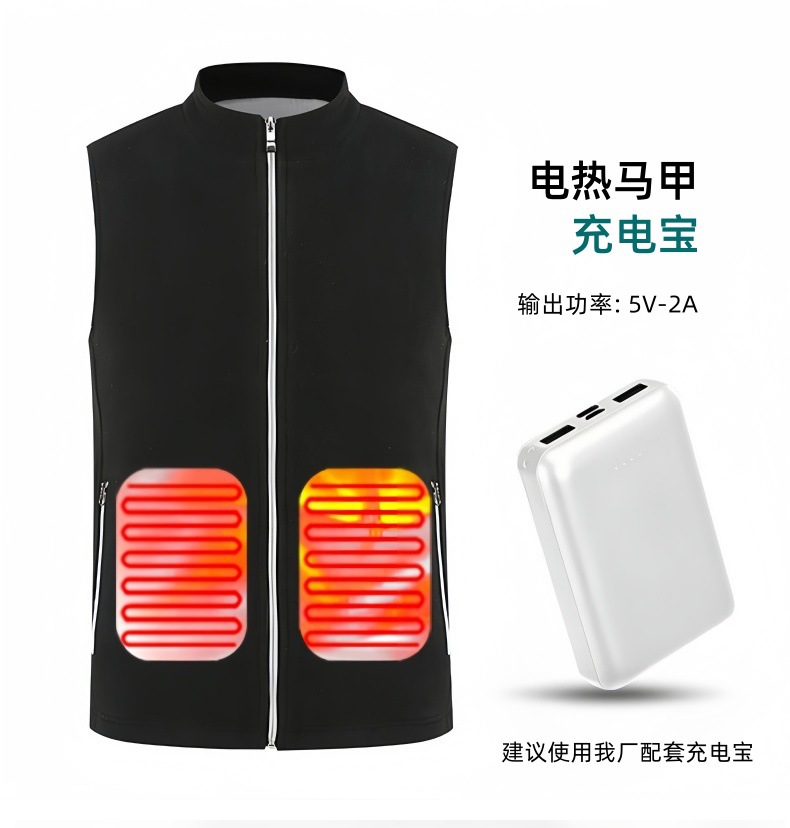 1、电热马甲和充电宝是分开售卖,建议配套使用我厂生产的电热衣服专用5V-2A充电宝。