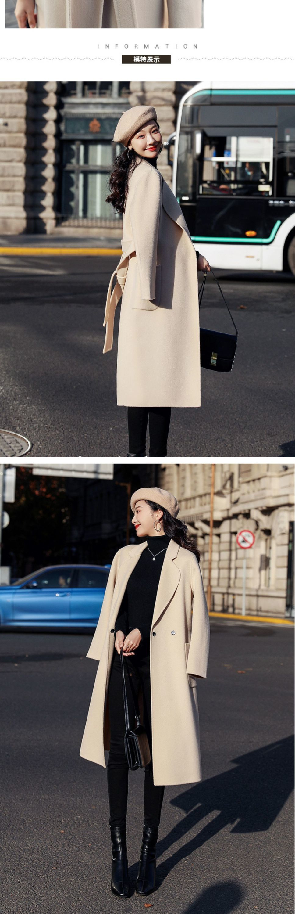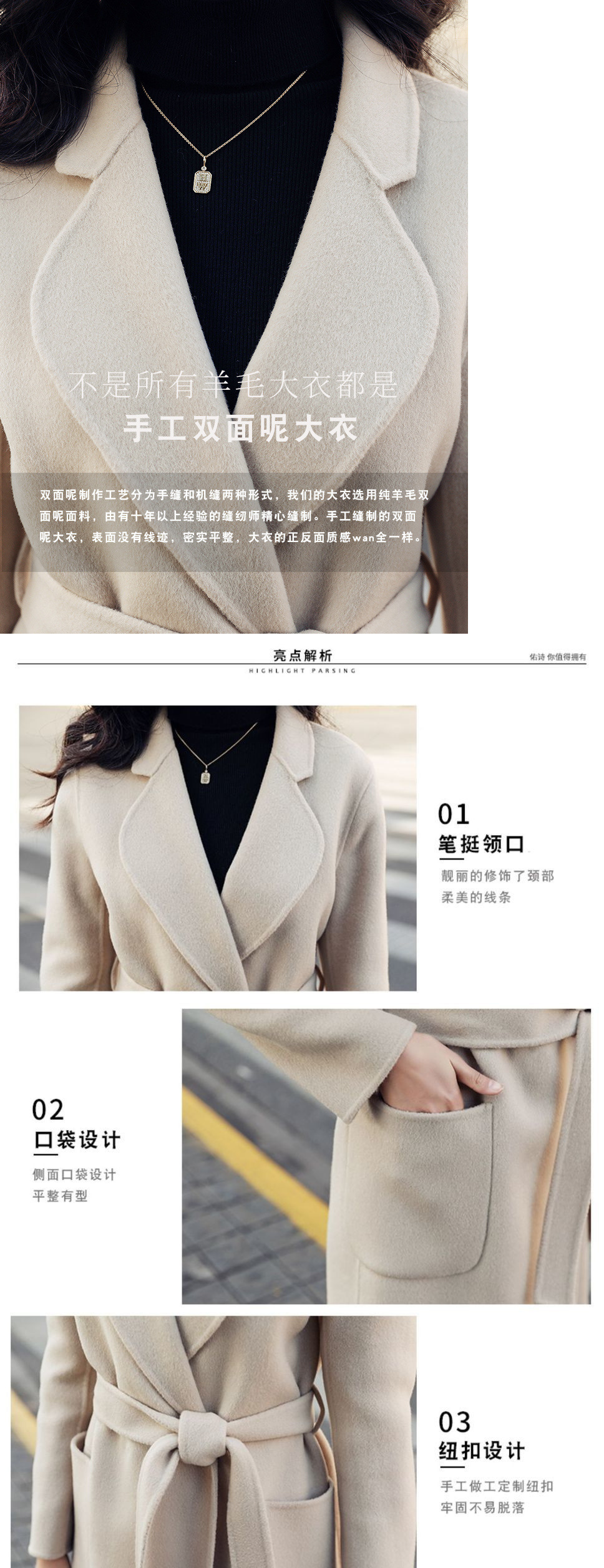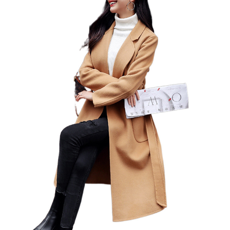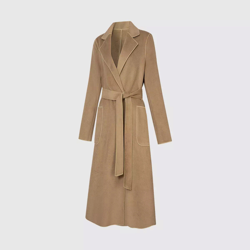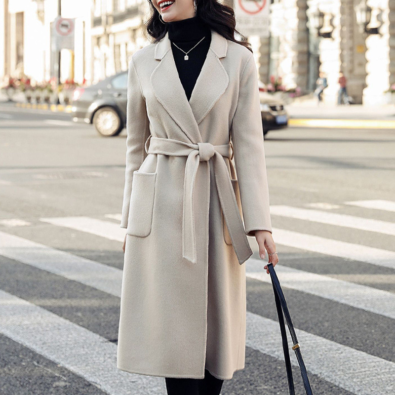 Двустороннее кашемировое пальто для женщин средней и длинной модели 2024 новый премиум-смысл Mayard шнуровка осенний и зимний шерстяной куртка