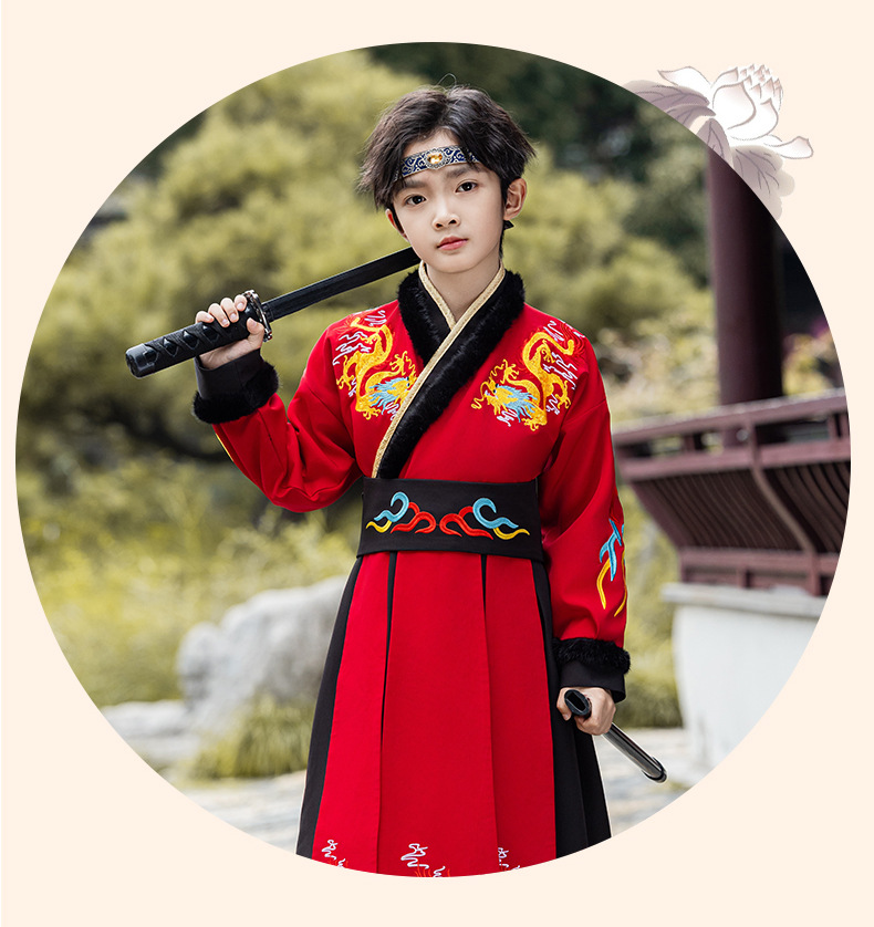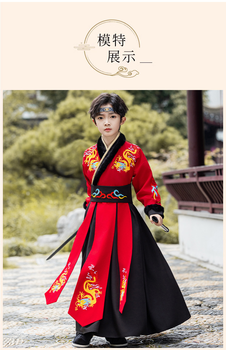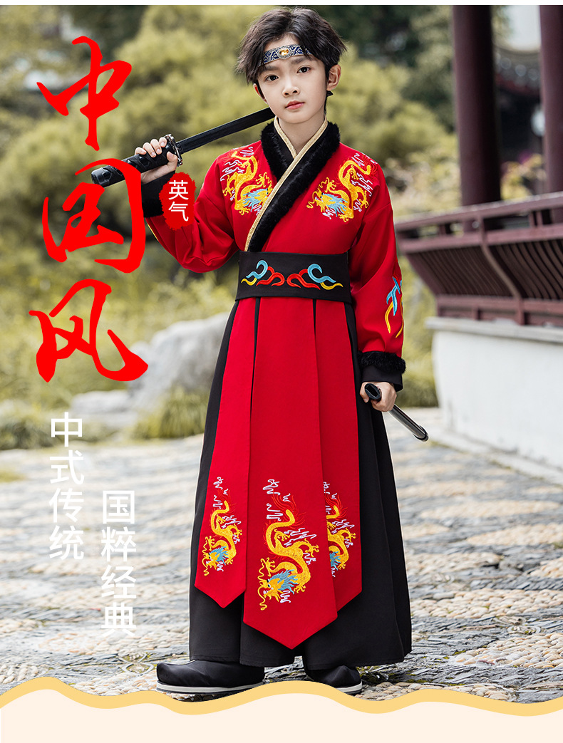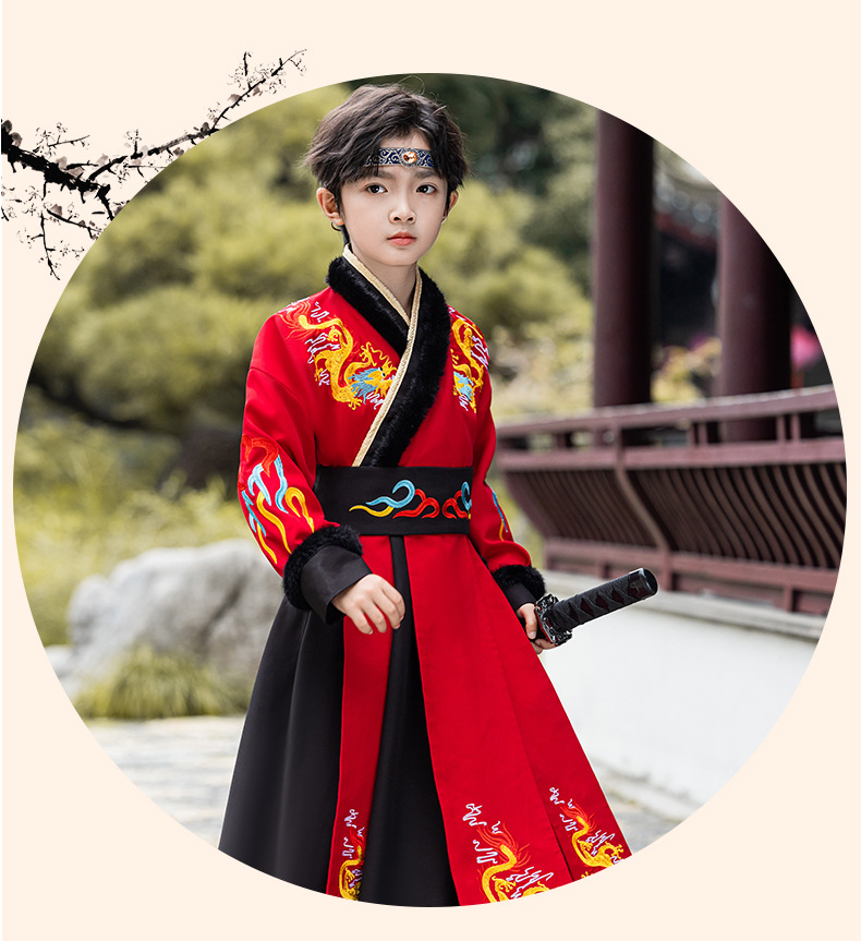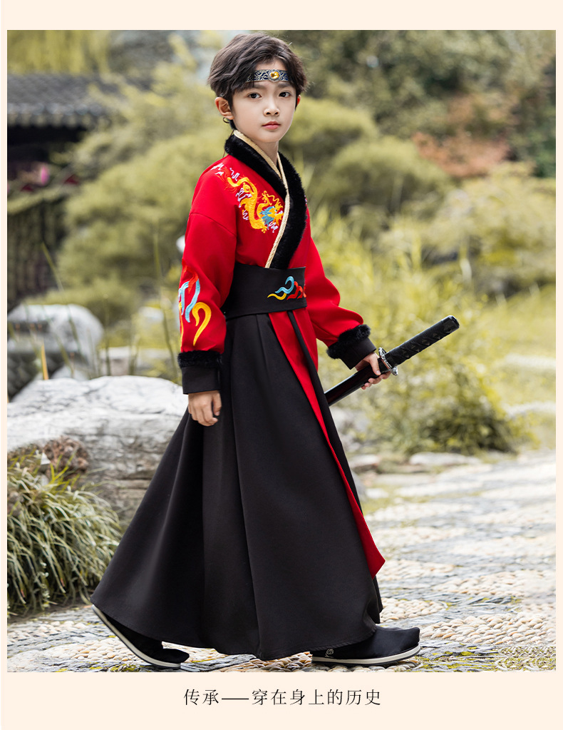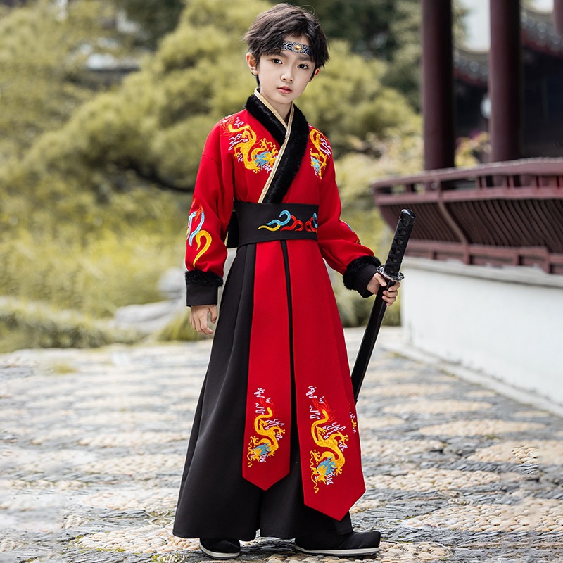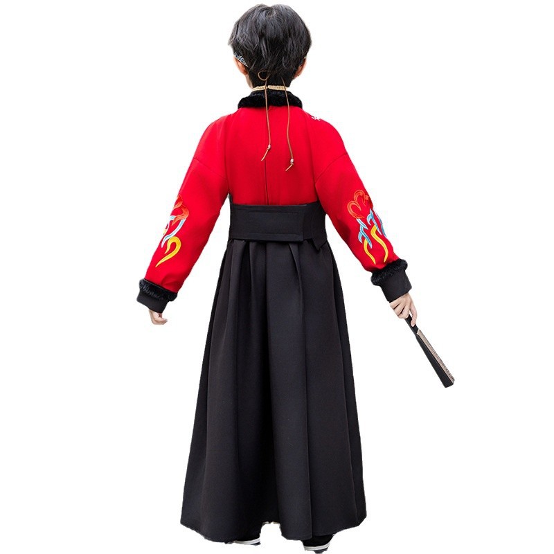 Зимний костюм для мальчиков Hanfu Детский костюм Красный Новогодний костюм