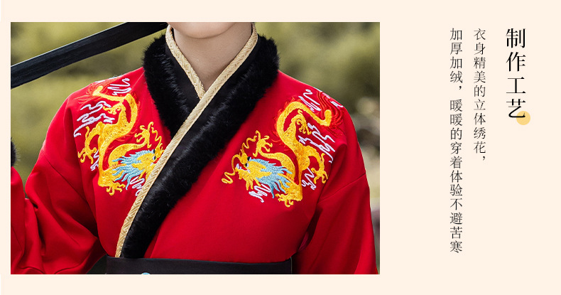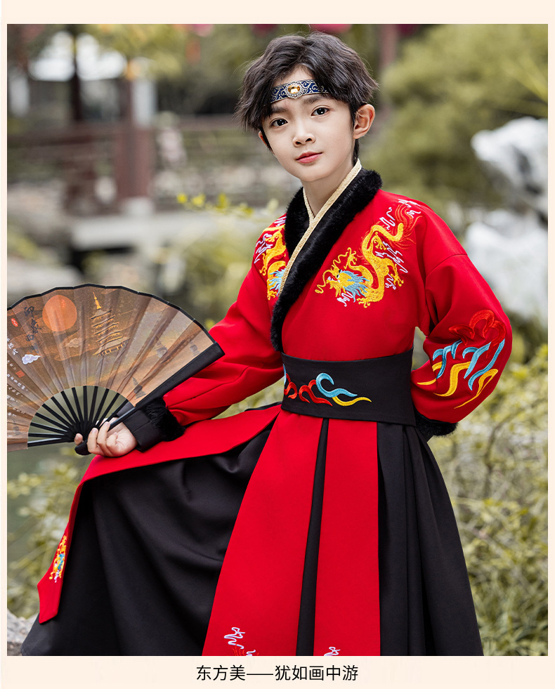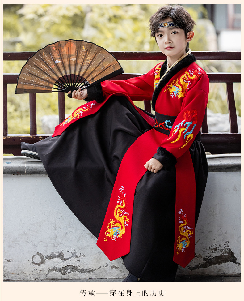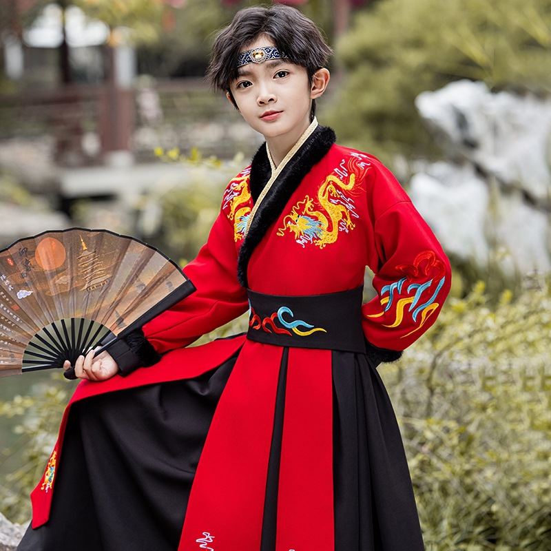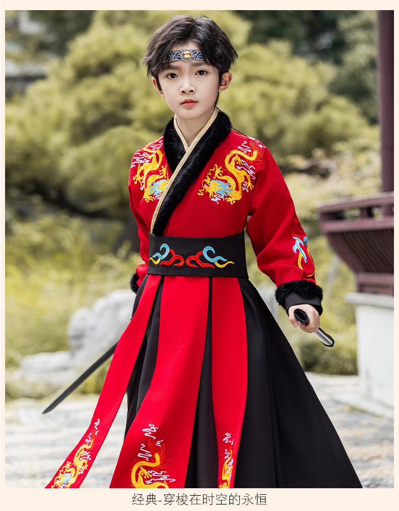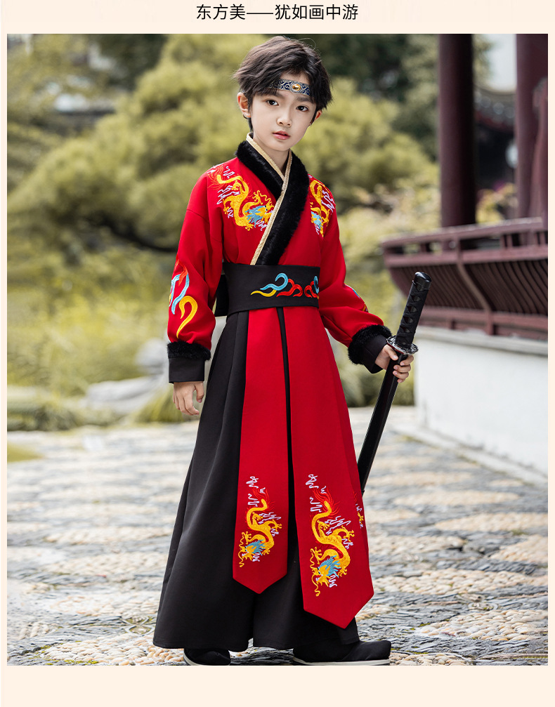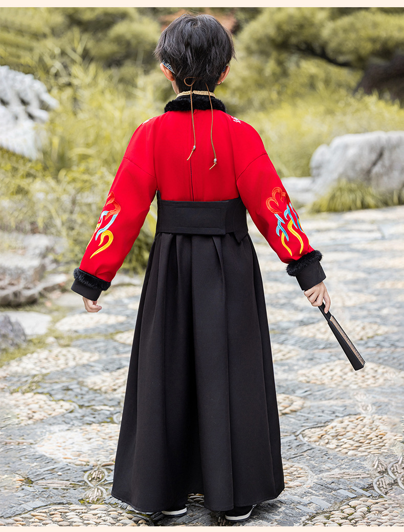 Зимний костюм для мальчиков Hanfu Детский костюм Красный Новогодний костюм