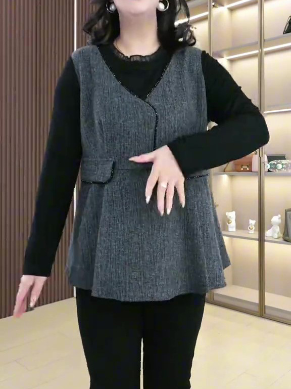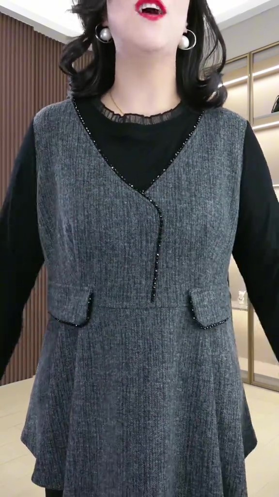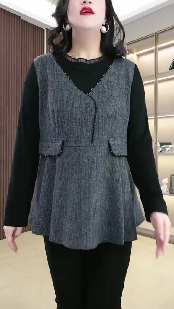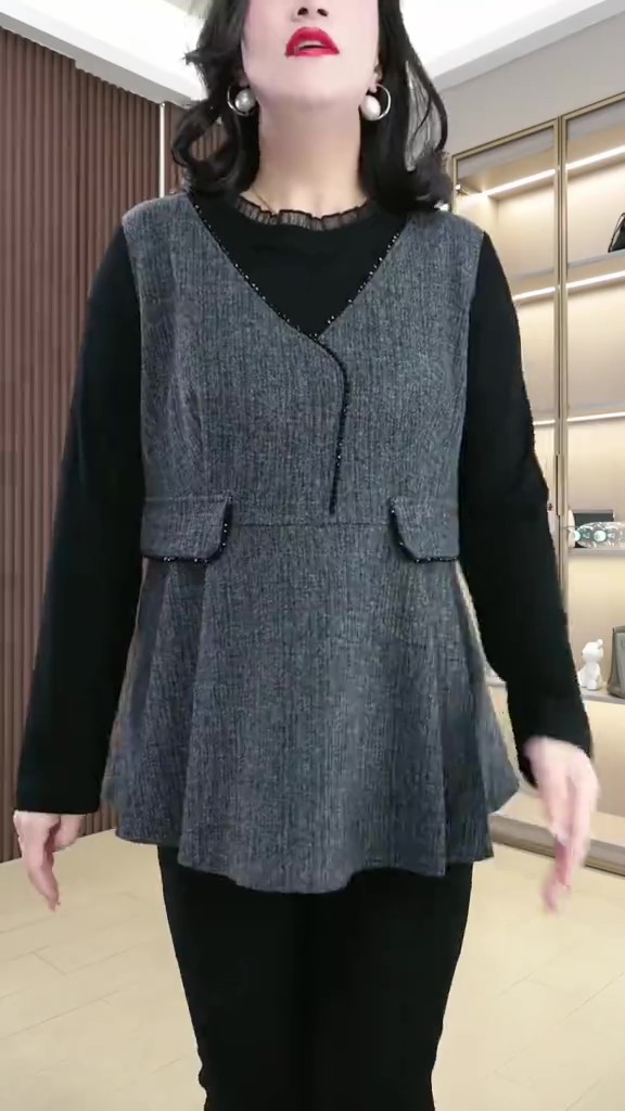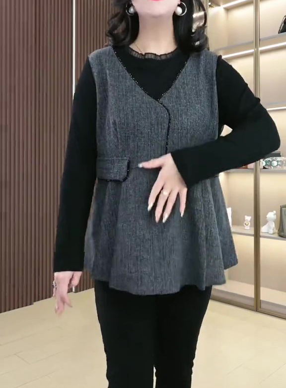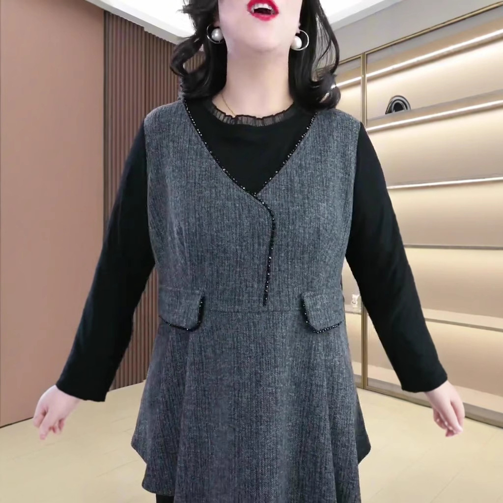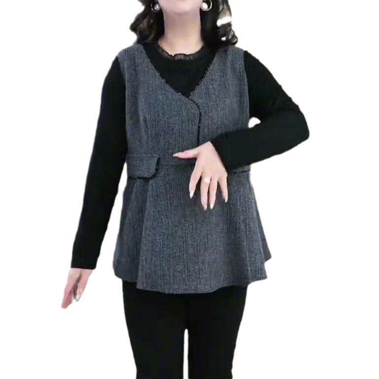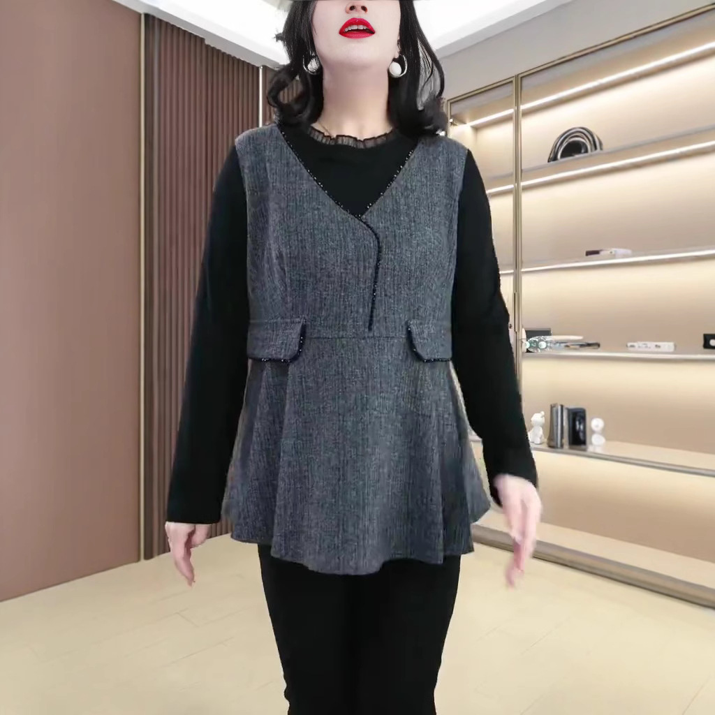 Осенняя и зимняя сеть Red Live Fashion дикая мода тонкая A-образная принцесса рубашка топ толстая мама женщины среднего возраста