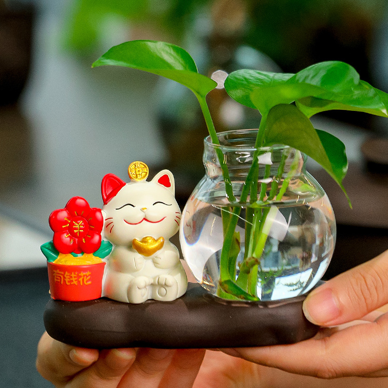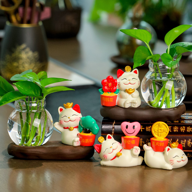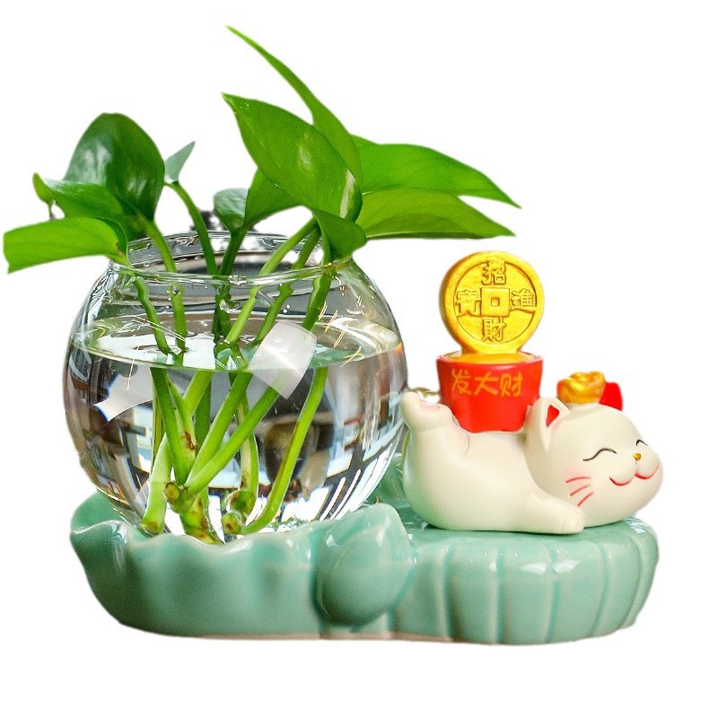 Удачная кошка гидропонная ваза офисная мастерская украшение дома гостиная столешница декоративный цветок зеленая ваза подарок