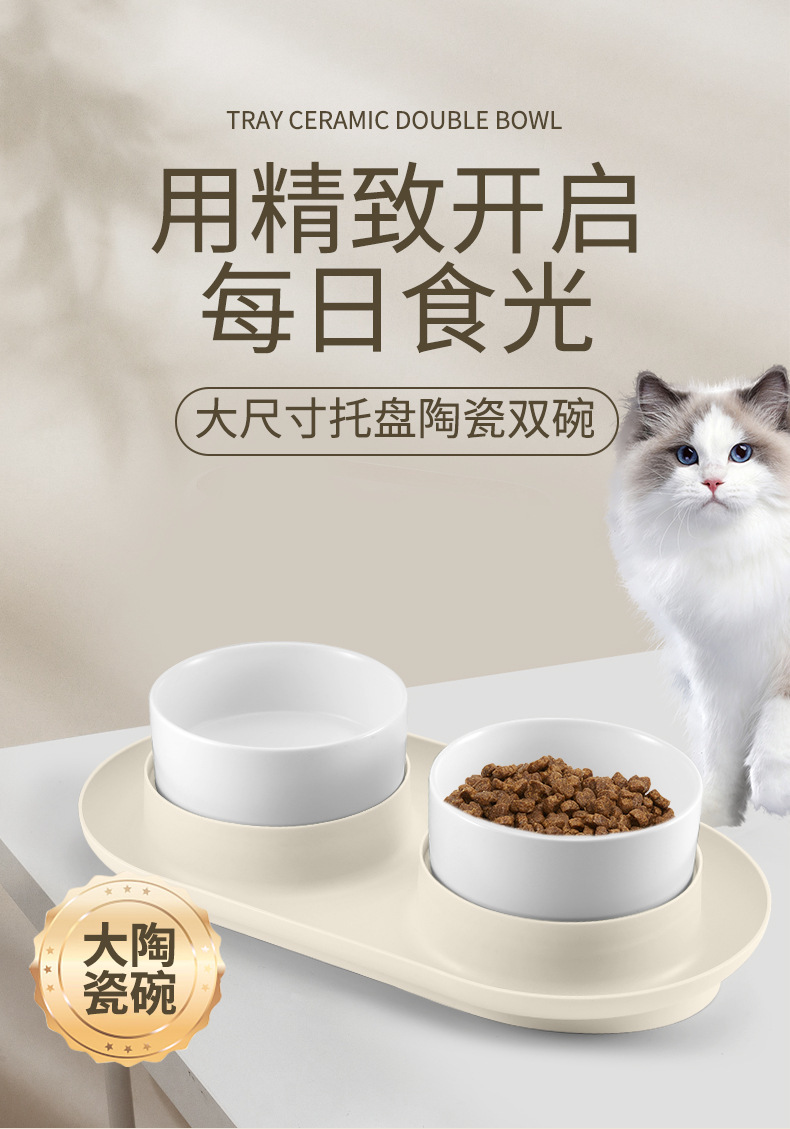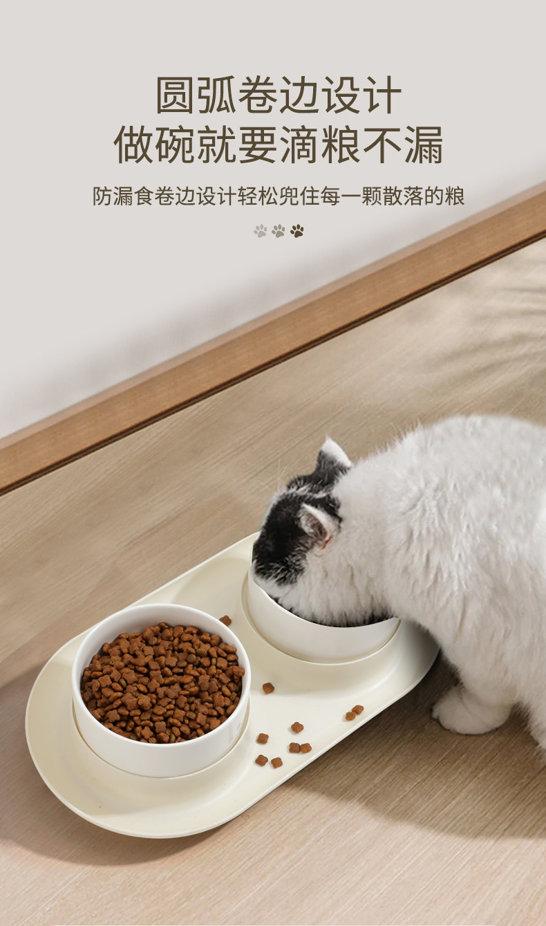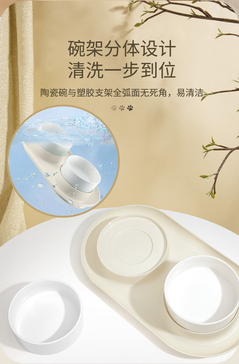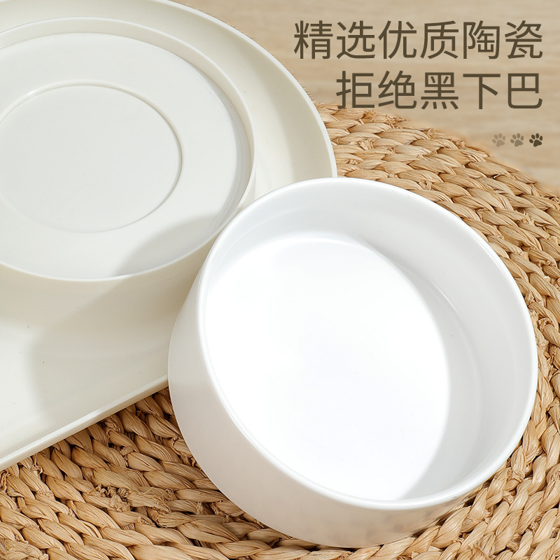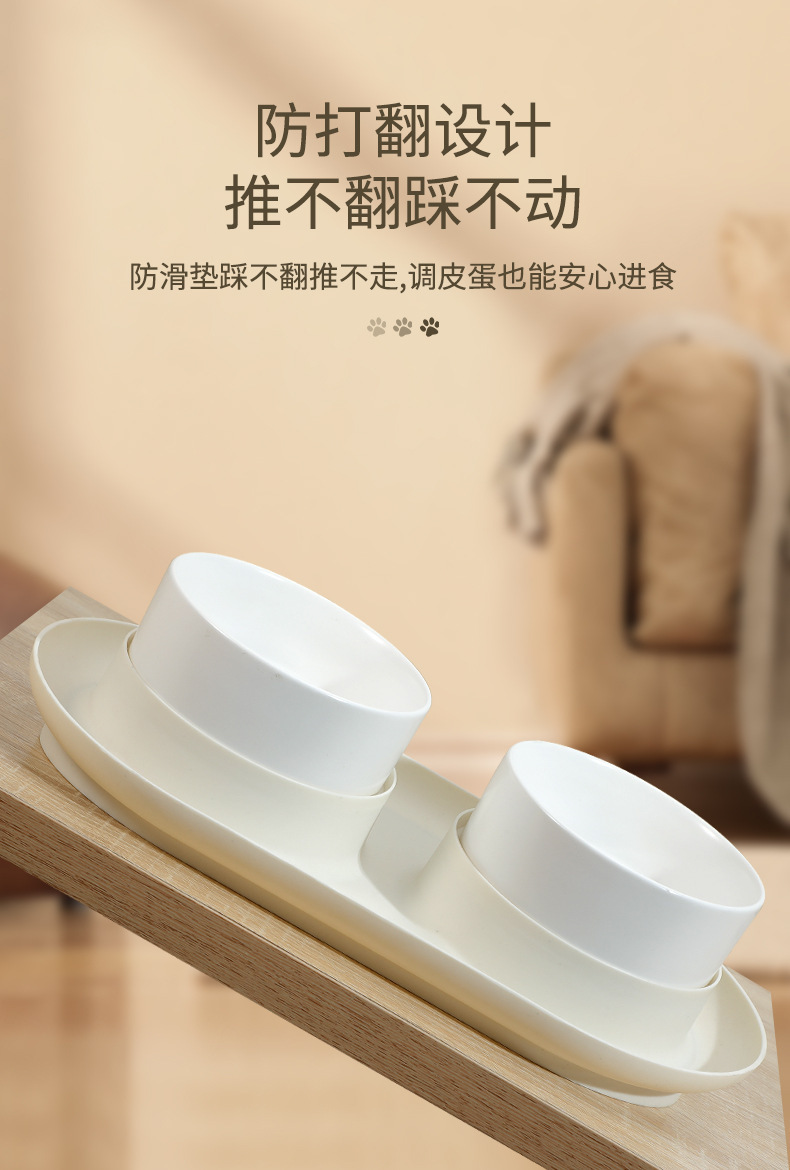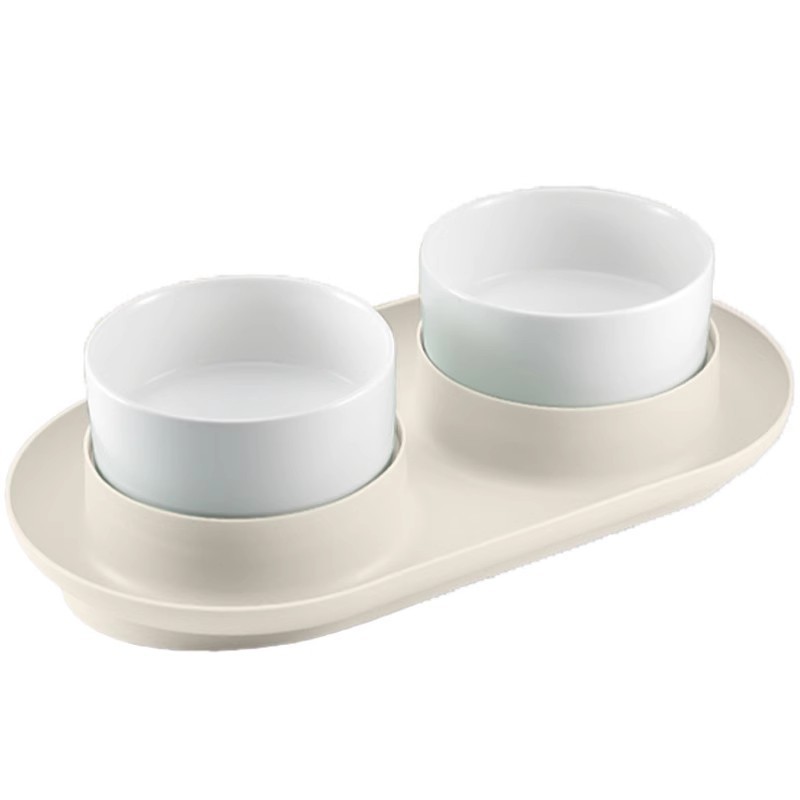 [Непротекаемая подставка для мисок для еды + керамическая двойная чаша] Кремово-белый цвет