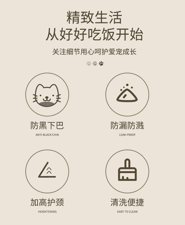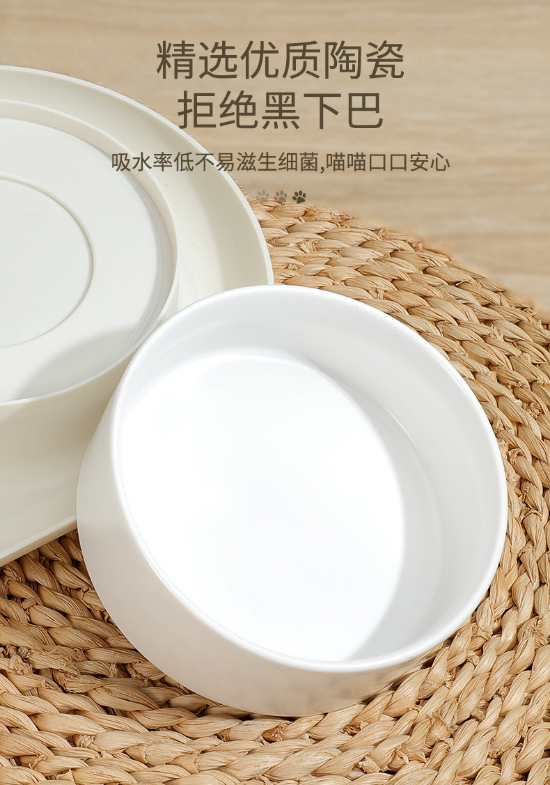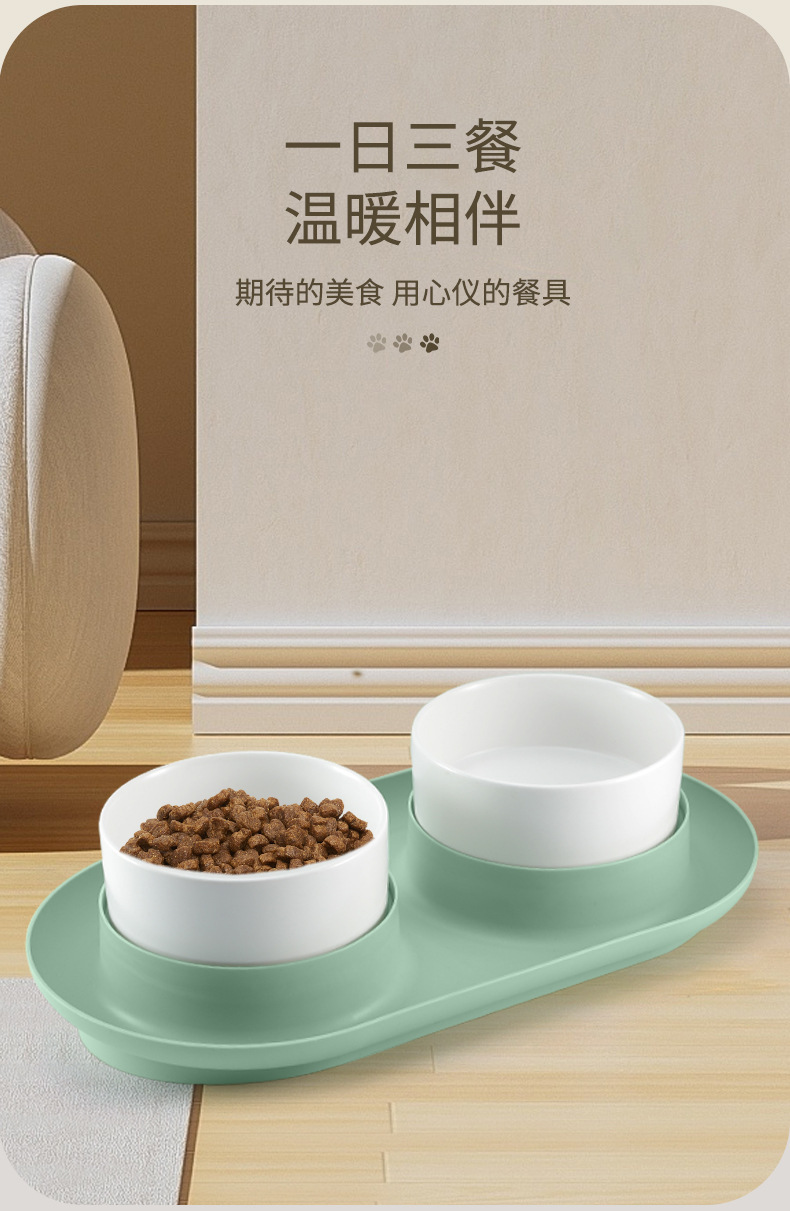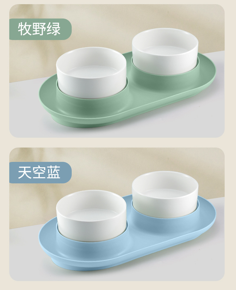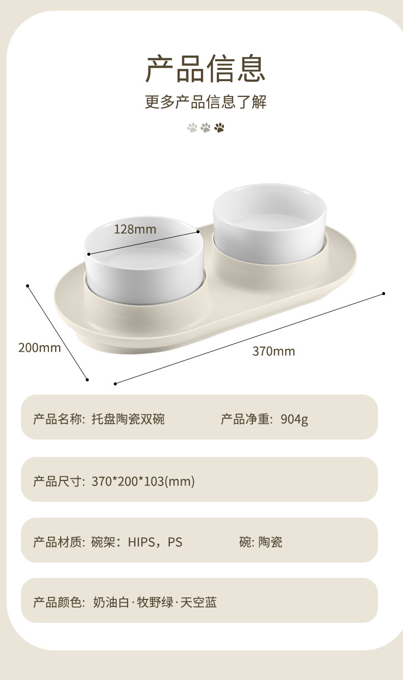 [Непротекаемая подставка для мисок для еды + керамическая двойная чаша] Кремово-белый цвет