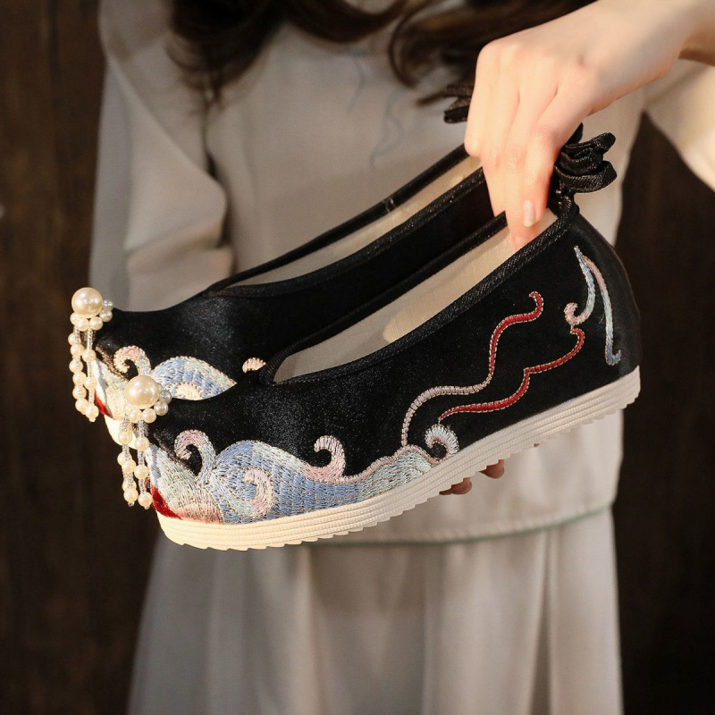 Новая обувь Hanfu Студентка вышитая обувь древний стиль