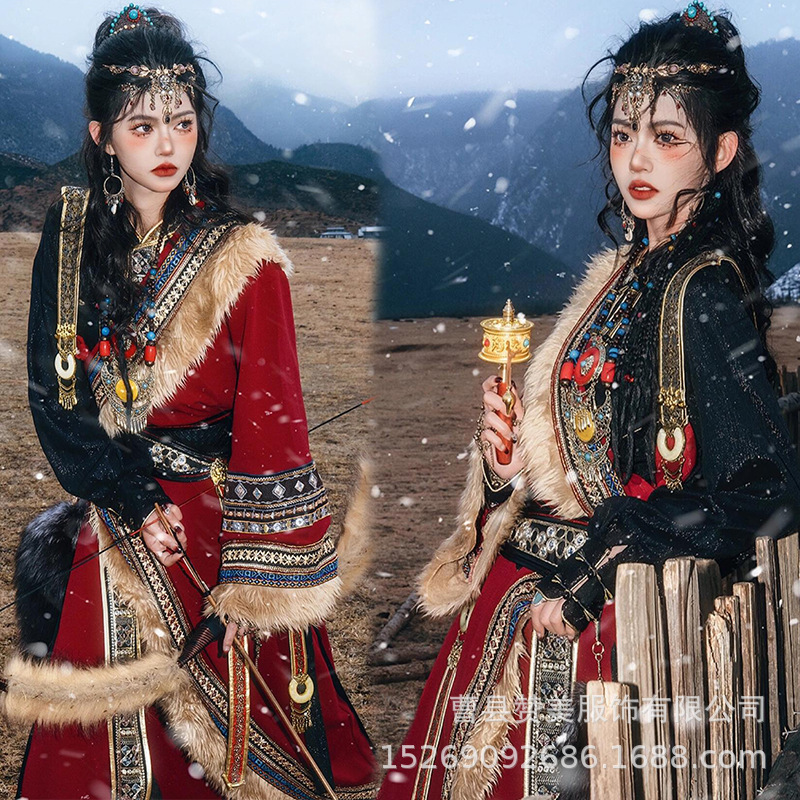 Новый тибетский костюм женский тибетский халат тибетский халат национальный стиль Западный Сычуань Юньнань Лицзян тибетский фото-костюм