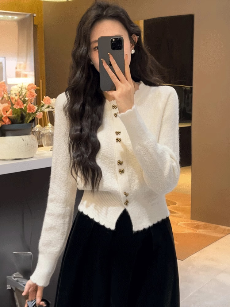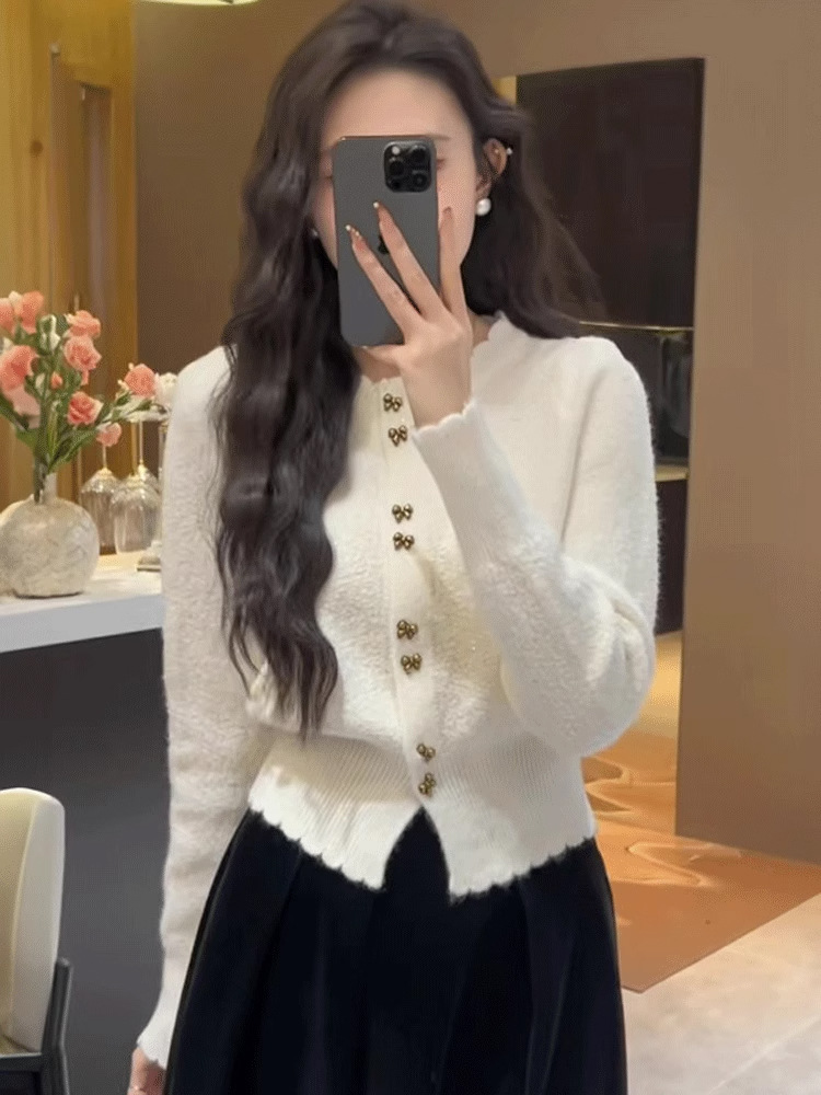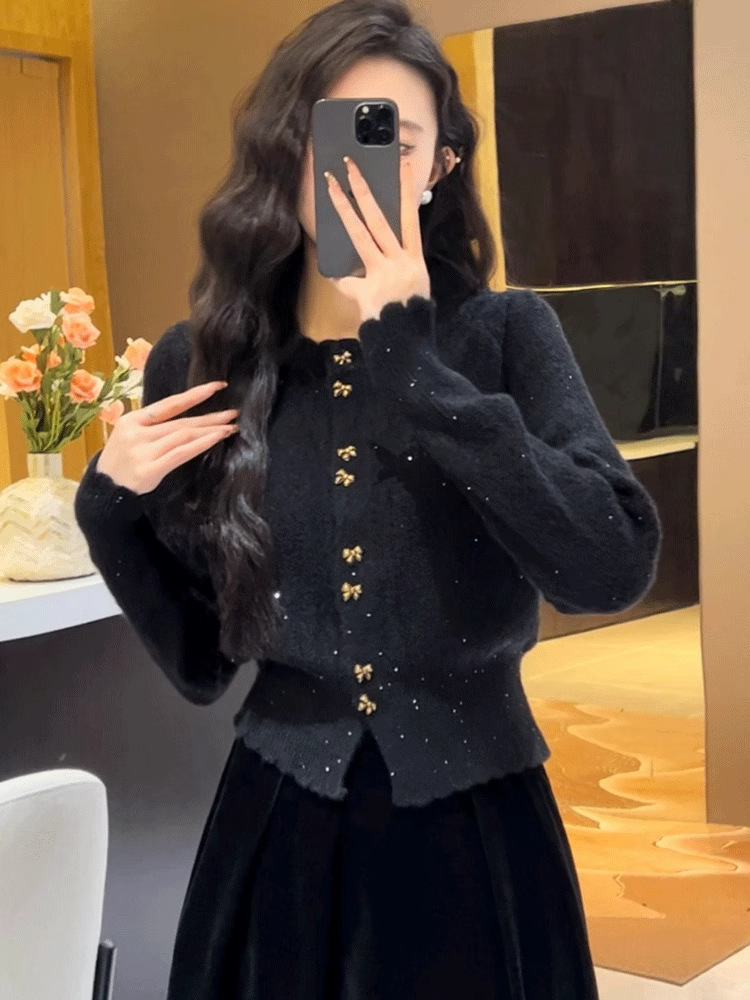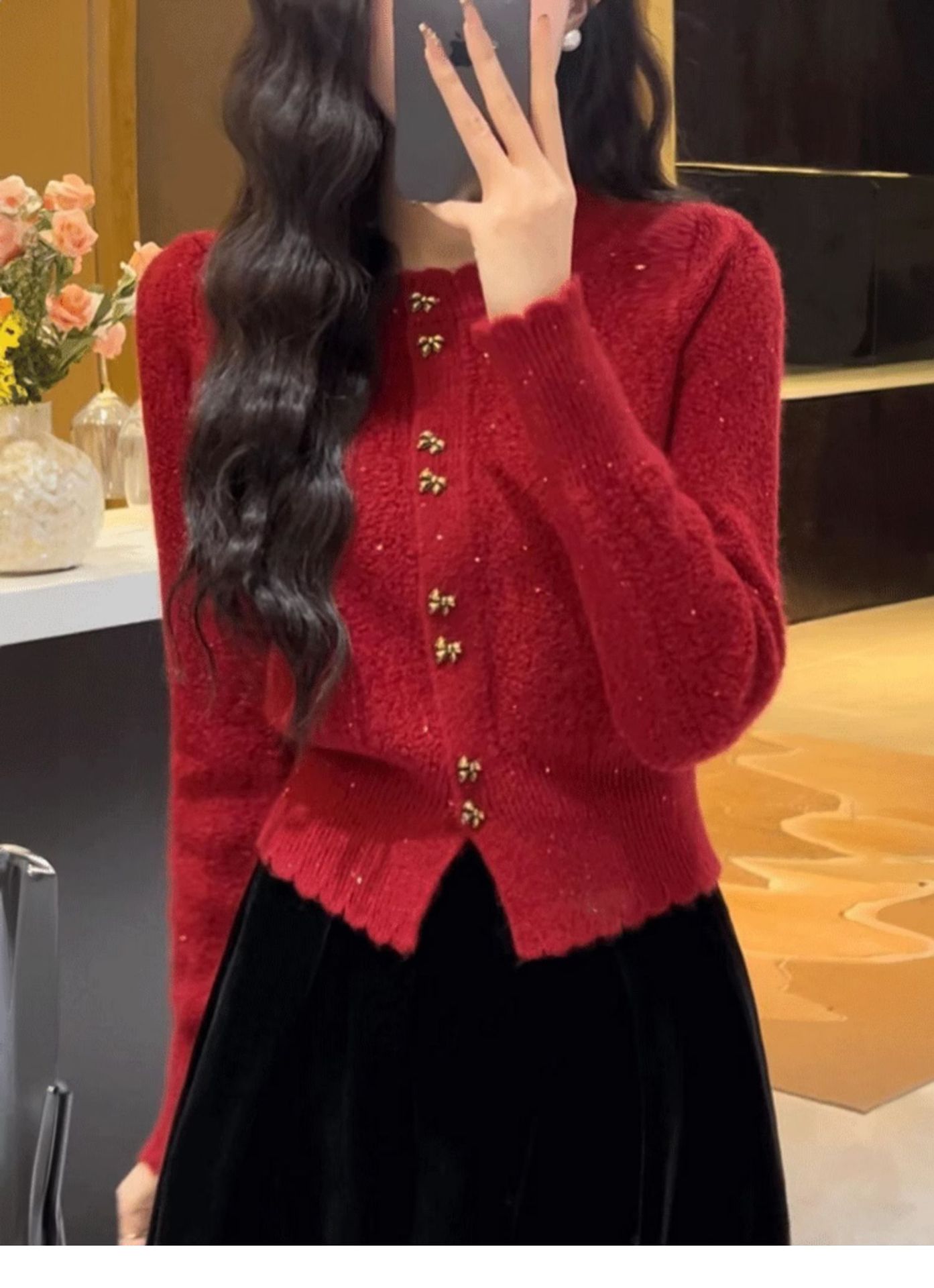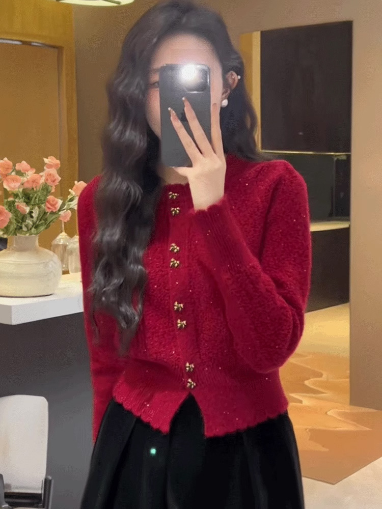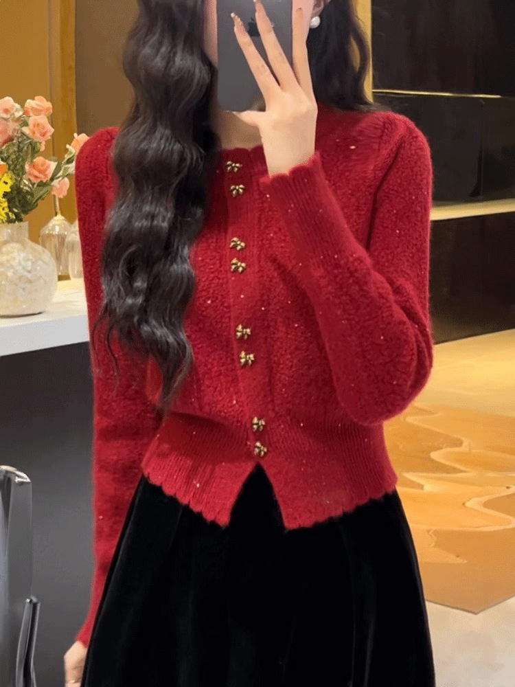 Анкора красный трикотажный кардиган женский осень-зима 2024 новый корейский стиль атмосфера