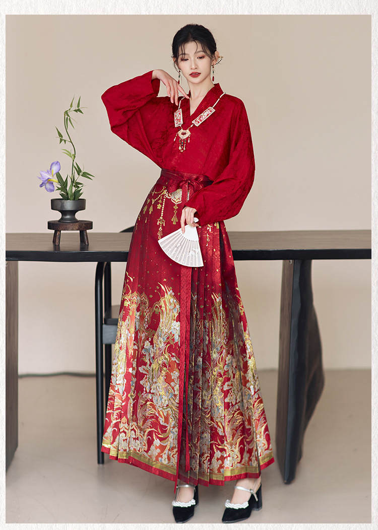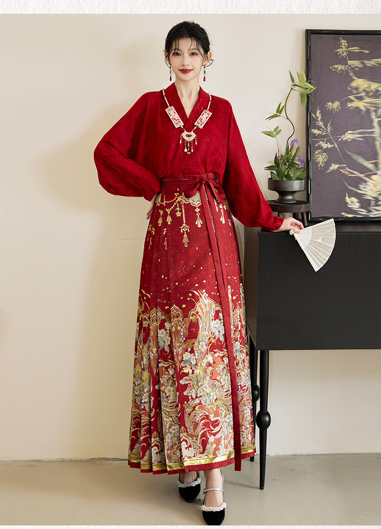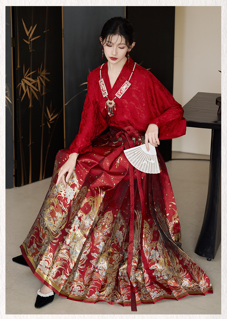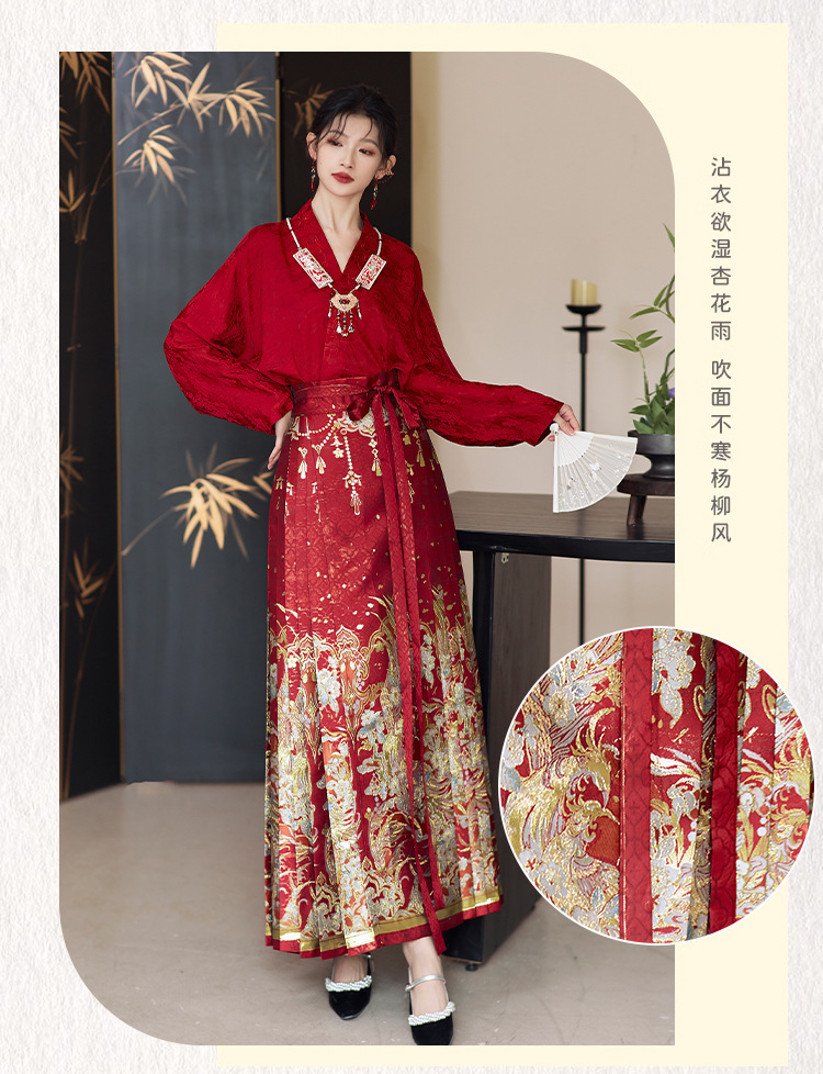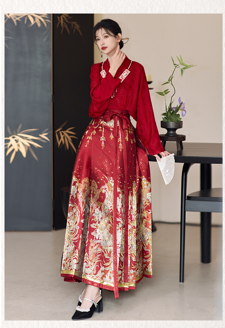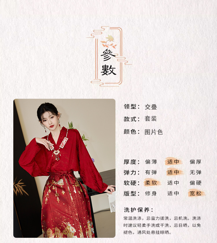 Жаккардовая вышивка верхом обычная 1020; Жаккардовый топ с вышивкой 1020; Ожерелье для тяжелой промышленности + облачная спинка 1020; Юбка Fengyuji золотого цвета с конским лицом 1020; Обычный комплект из трех предметов; Обычный верх + ожерелье для тяжелой промышленности + облачная спинка 1020.