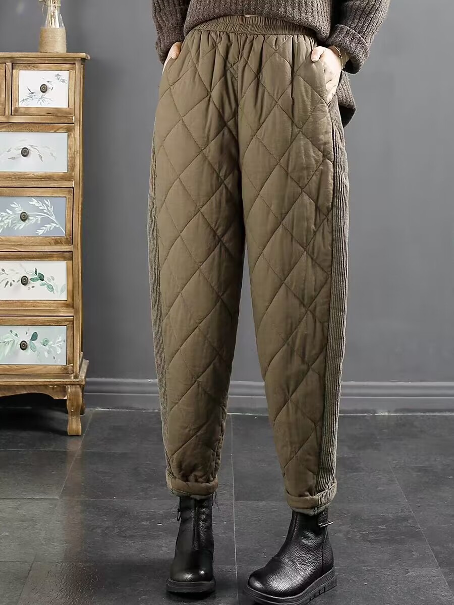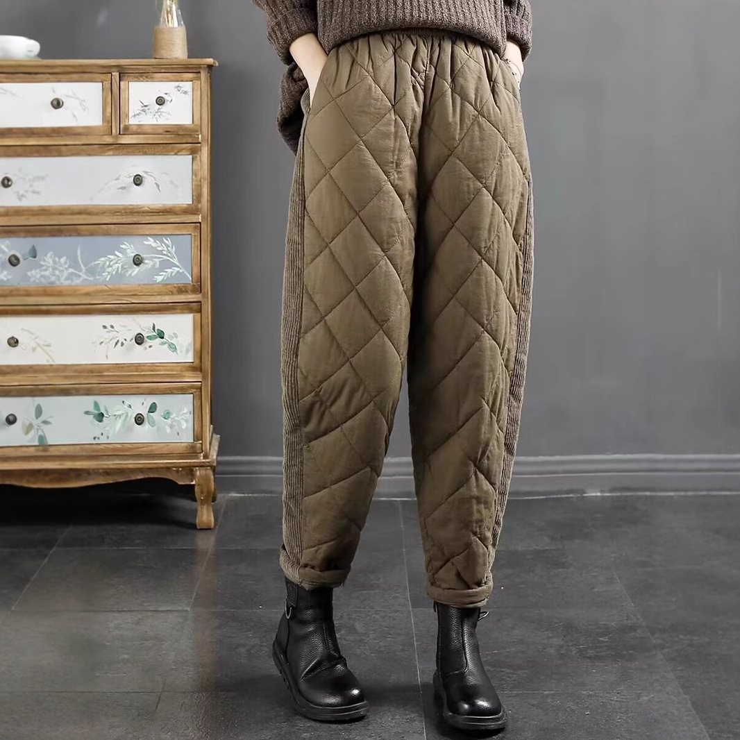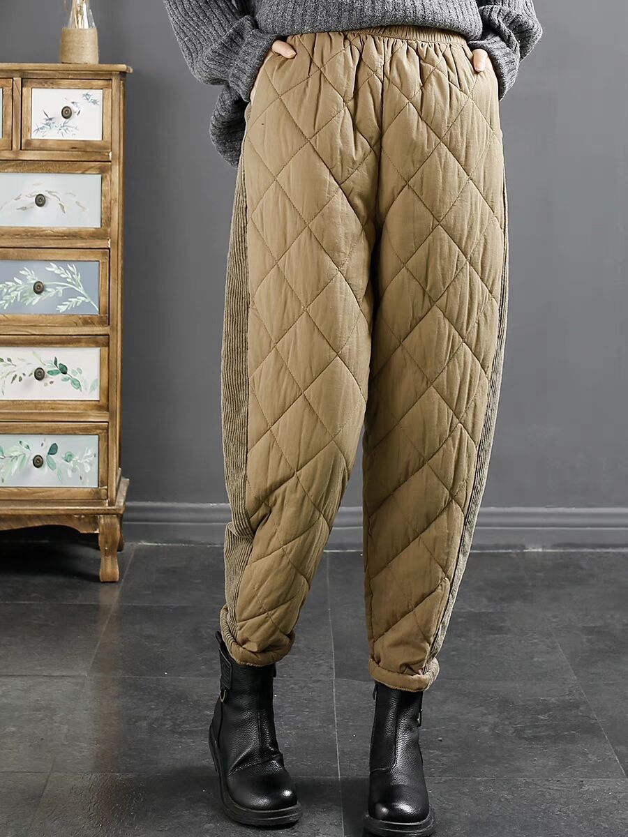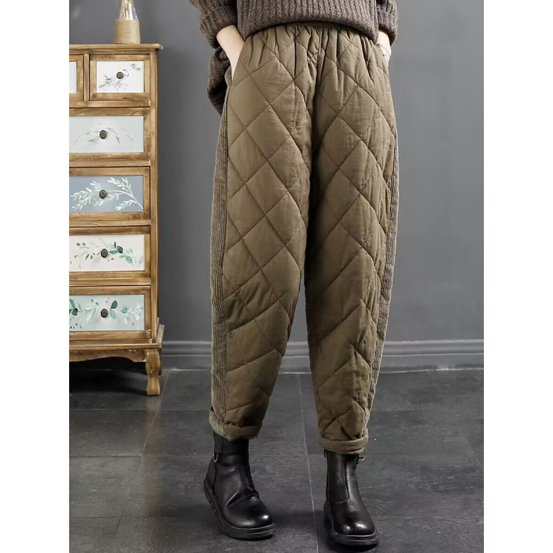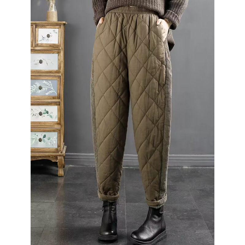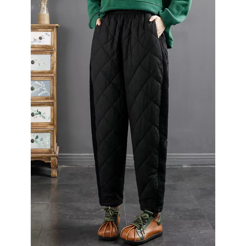 2024 зимний новый сплошной цвет ромб сшитый бархат эластическая талия теплая хлопчатобумажные брюки