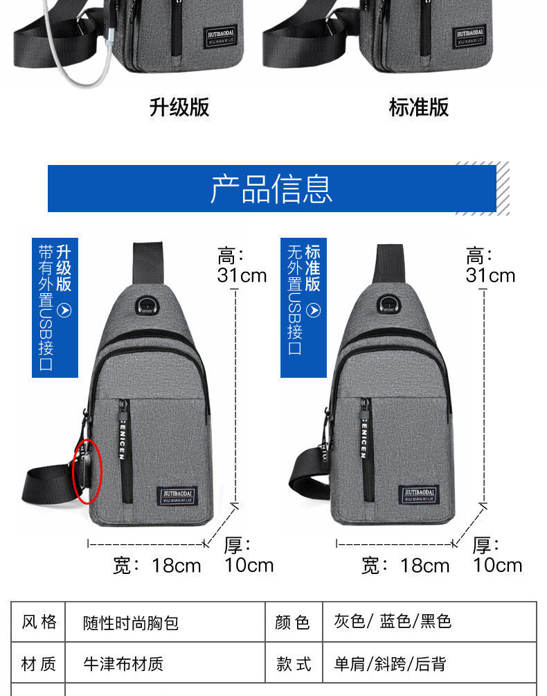 Нагрудный мешок Мужской рюкзак 2024 новый нейлоновый холст нагрудный мешок для отдыха Спортивный туризм