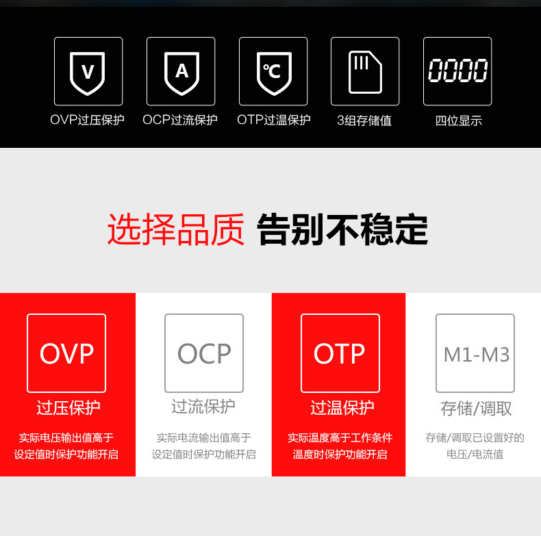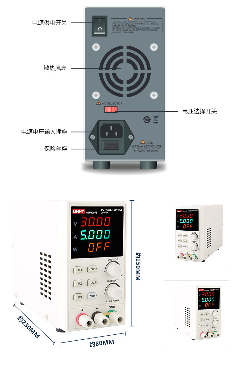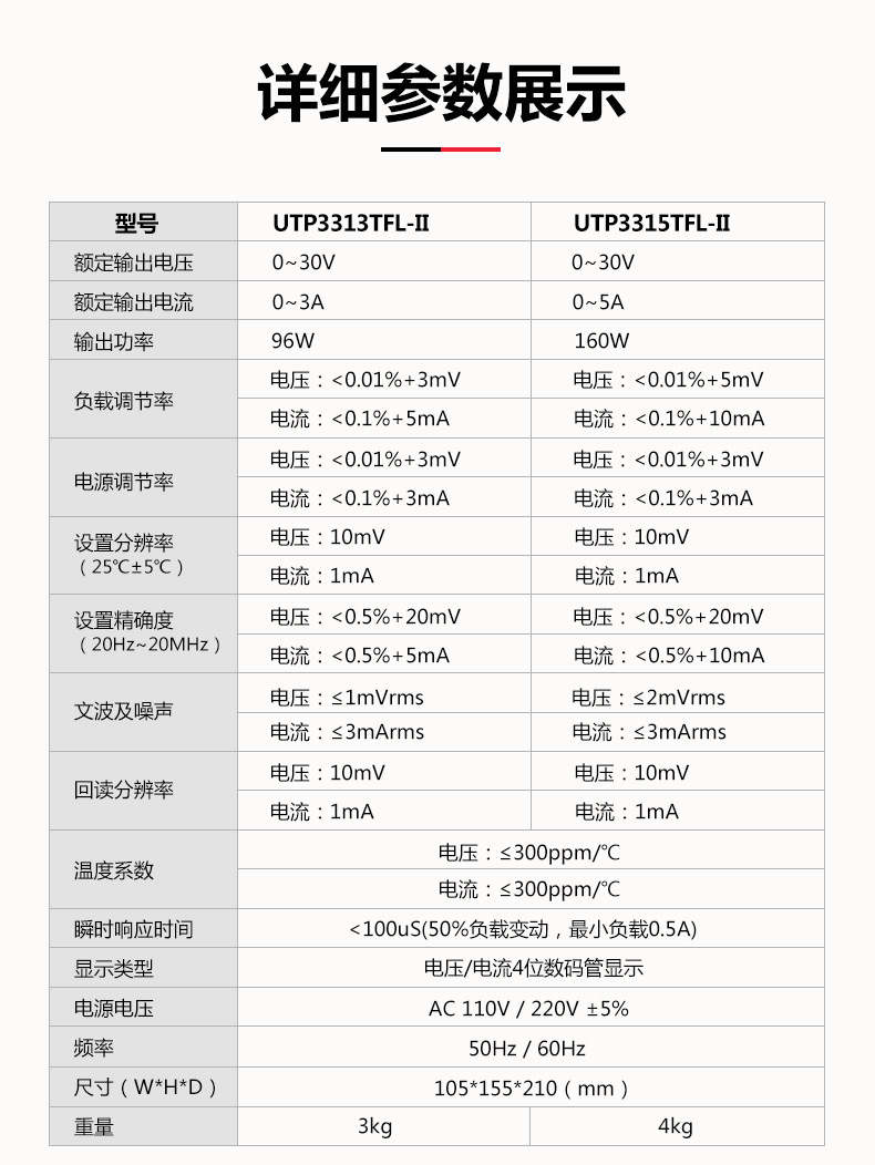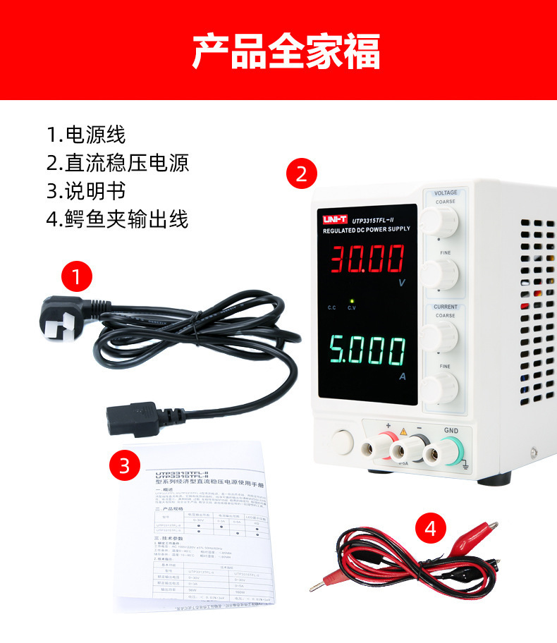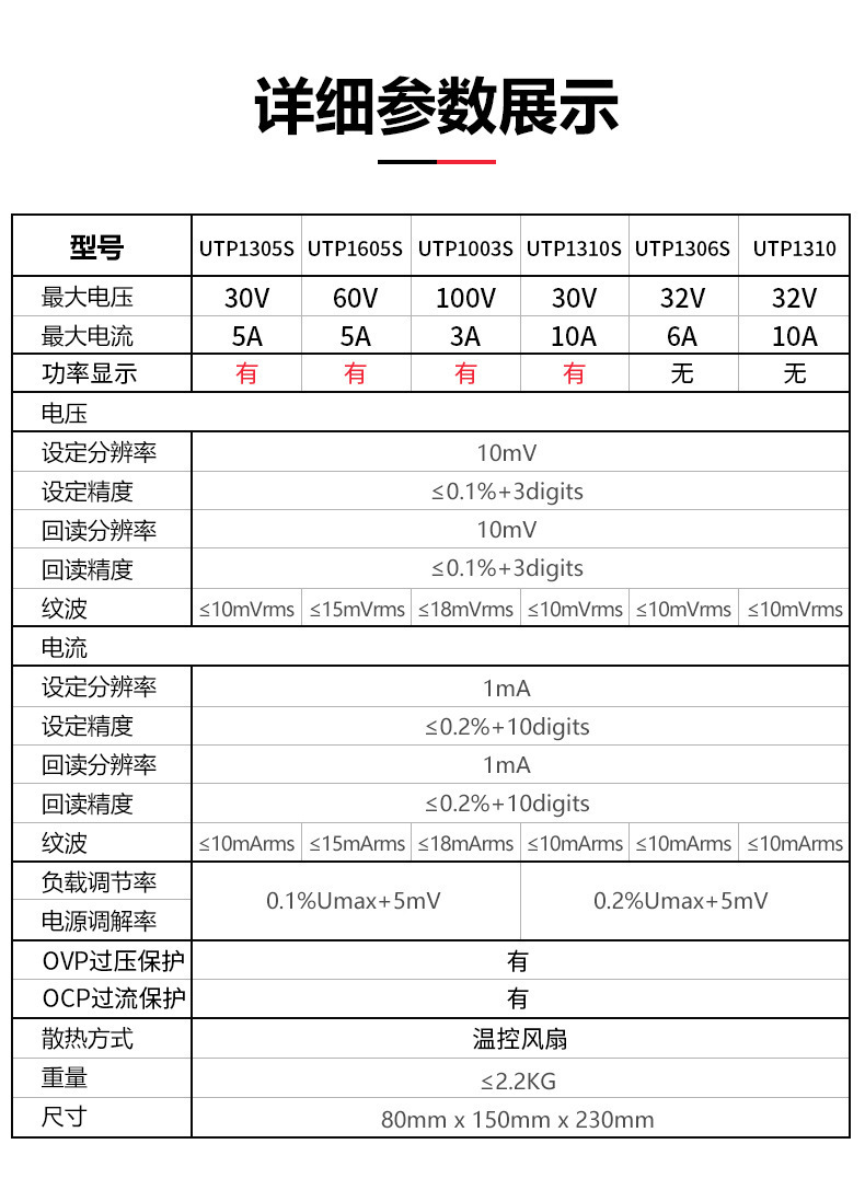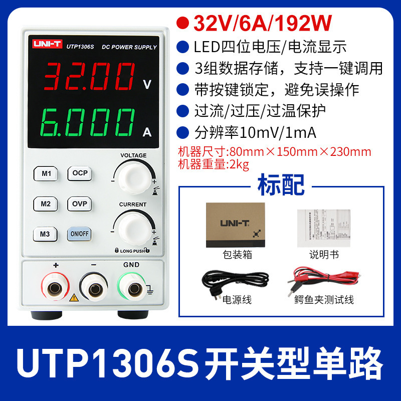 UTP1306S (одноканальный) тип переключателя 32V6A192W; UTP1605S (одноканальный) Тип переключателя 60V5A300W с индикатором мощности; UTP1003S (одноканальный) переключатель 100 В3 А300 Вт с индикатором мощности; UTP1310 (одноканальный) тип переключателя 32 В10 А320 Вт; UTP3315TFL-II (одноканальный) линейный источник питания 30 В5 А150 Вт; UTP3305-II (двухканальный) линейный источник питания 30 В5 А315 Вт; UDP3303CC (двойные каналы) Программируемый линейный источник питания 30V3A219W; UTP23010 (двухканальный) трехпозиционный дисплей 30 В/10 А; UTP16020 (одноканальный) 60 В/20 А четырехслотовый дисплей; UTP120055(Один канал): 200 В/5 А четырехслотовый дисплей; UDP6720 (одноканальный) 60 В, 5 А, 100 Вт, программируемый широкий диапазон выходного сигнала; UDP6721 (одноканальный) 60 В, 8 А, 180 Вт, программируемый широкий диапазон выхода; UDP6730 (одноканальный) 40 В 30 А360 Вт, программируемый широкий диапазон выходного сигнала; UDP6731 (одноканальный) 80 В 15 А360 Вт программируемый широкий диапазон выходного сигнала