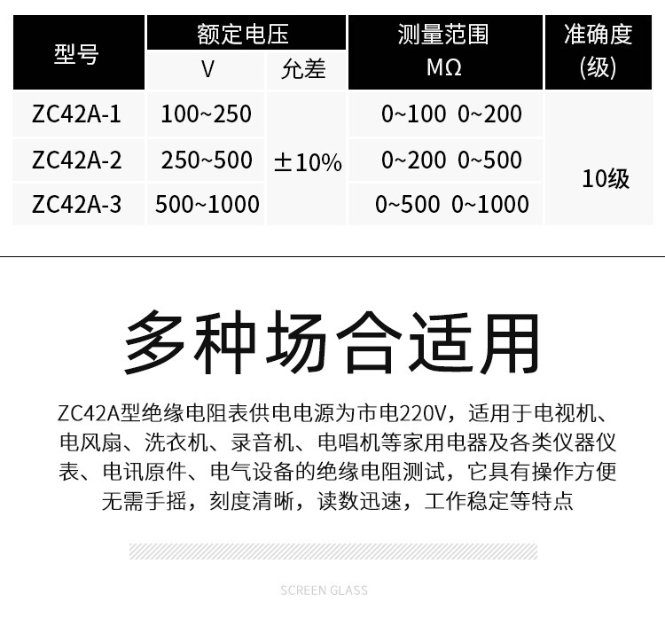 ZC42A-1(100V~250V); ZC42A-2(250V~500V); ZC42A-3(500V~1000V)