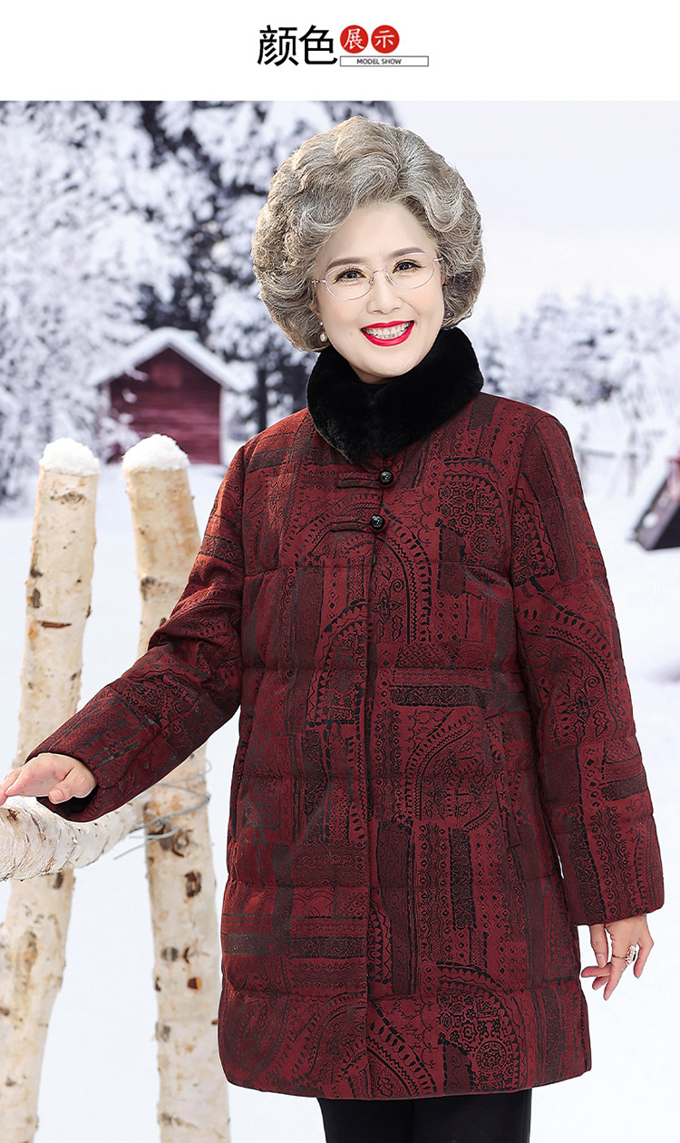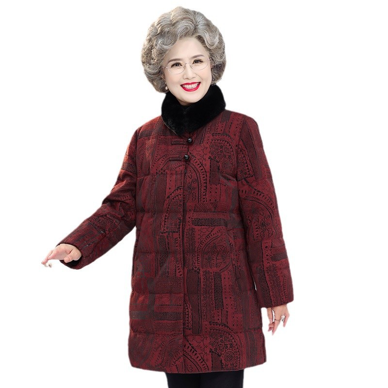 Пожилой пуховик женский средний и длинный зимний костюм мама утолщает теплая кожаная куртка бабка белая утка