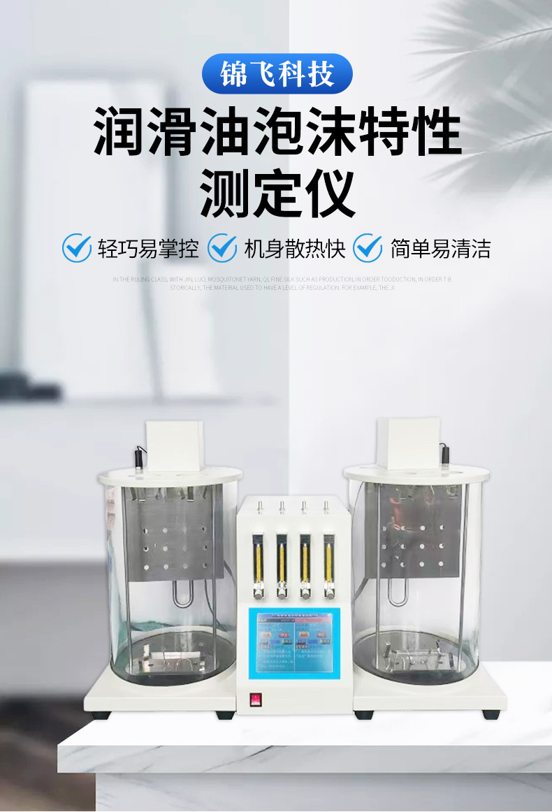 Он используется для измерения склонности и стабильности пены, образующей масло, в таких масляных, как топливо, смазочное масло, трансмиссионное масло и гидравлическое масло. Его можно использовать для оценки склонности и стабильности смазочной пены, образующей смазочное масло.