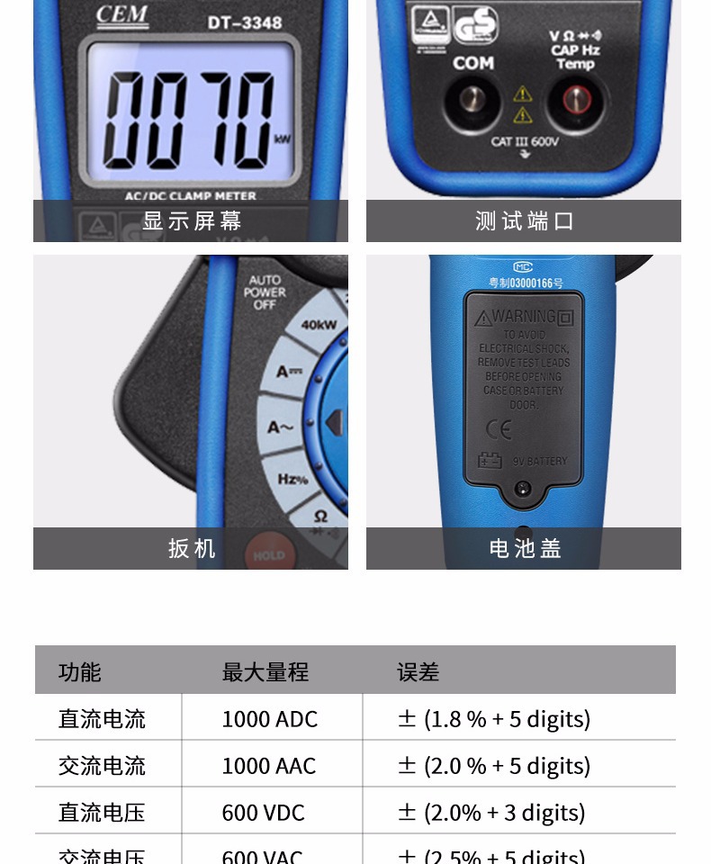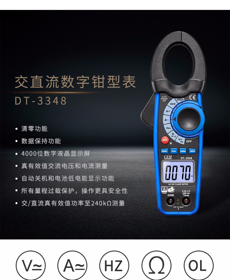 CEM Huasheng Chang Фабрика Прямые продажи 1000A True эффективное значение мощности цифровой измеритель зажима DT-3348