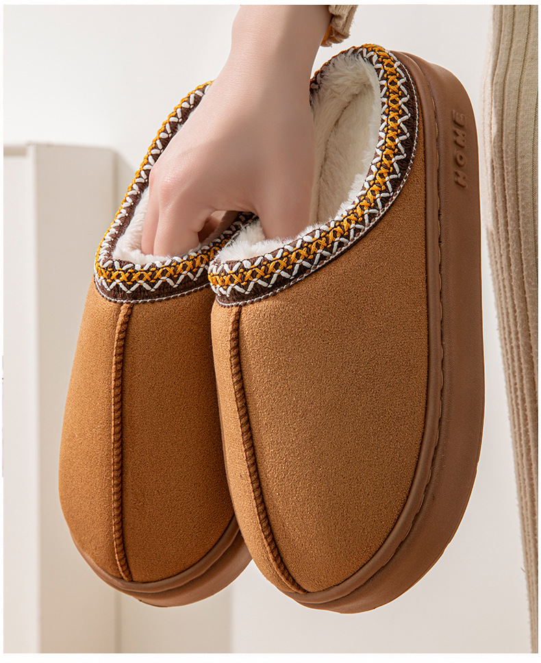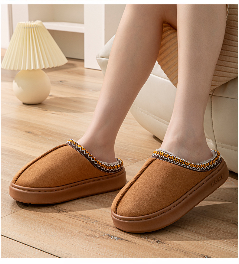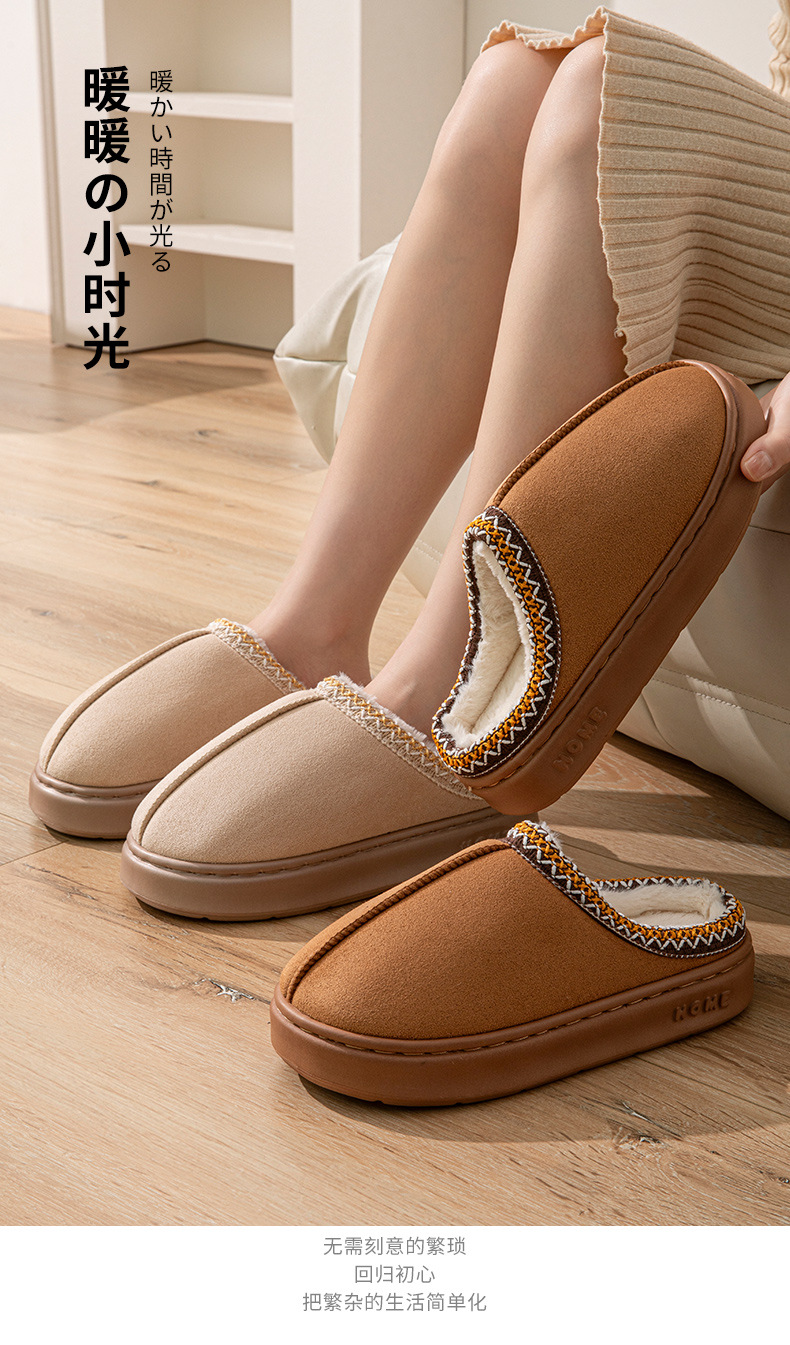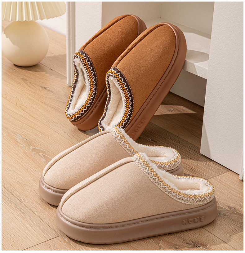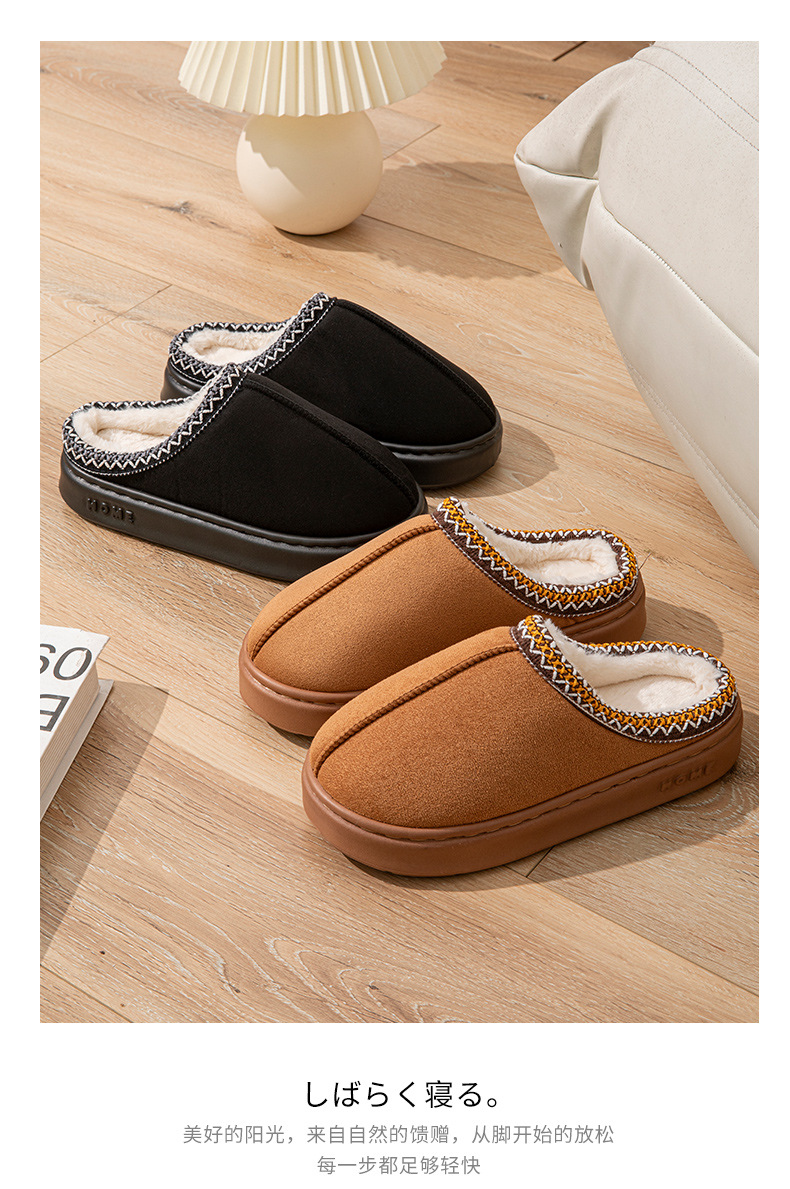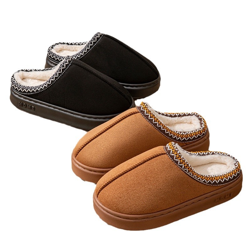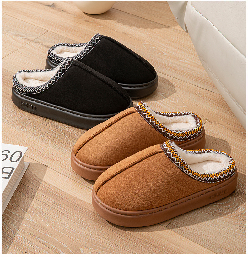 Кровянистый национальный стиль замшевая утолщение внутреннего и наружного пола дома EVA мужчин и женщин осенью и зимой теплые тапочки
